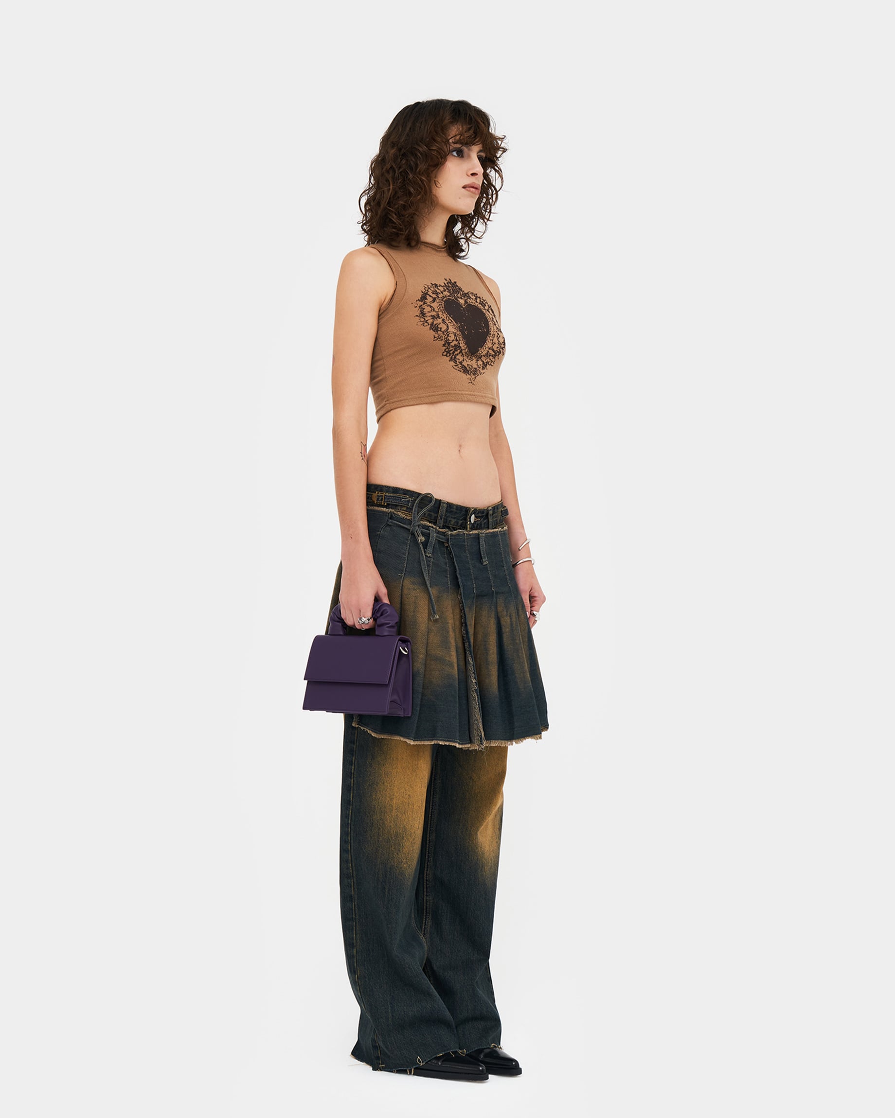 - Muna – прелестная квадратная сумка насыщенного цвета баклажан;