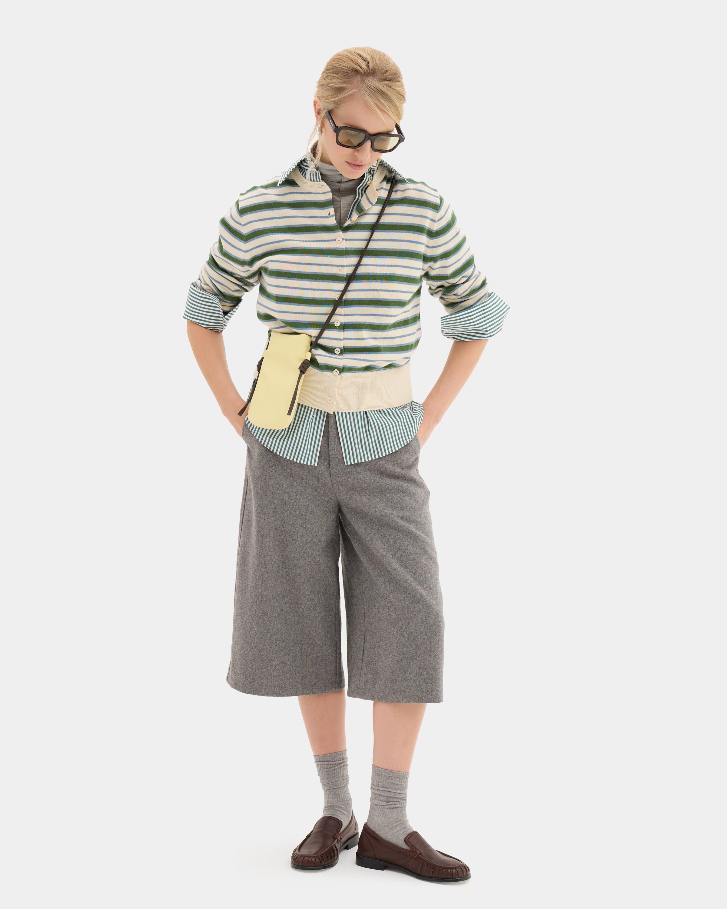 Одним из ярких примеров такого аксессуара стала модель Taffi. Жесткий каркас, правильная квадратная форма и неожиданный ремень кросс-боди обеспечивают ей достаточную вместительность даже при небольших размерах, а выбор оттенка – возможность угодить практически всем представителям сильного пола.