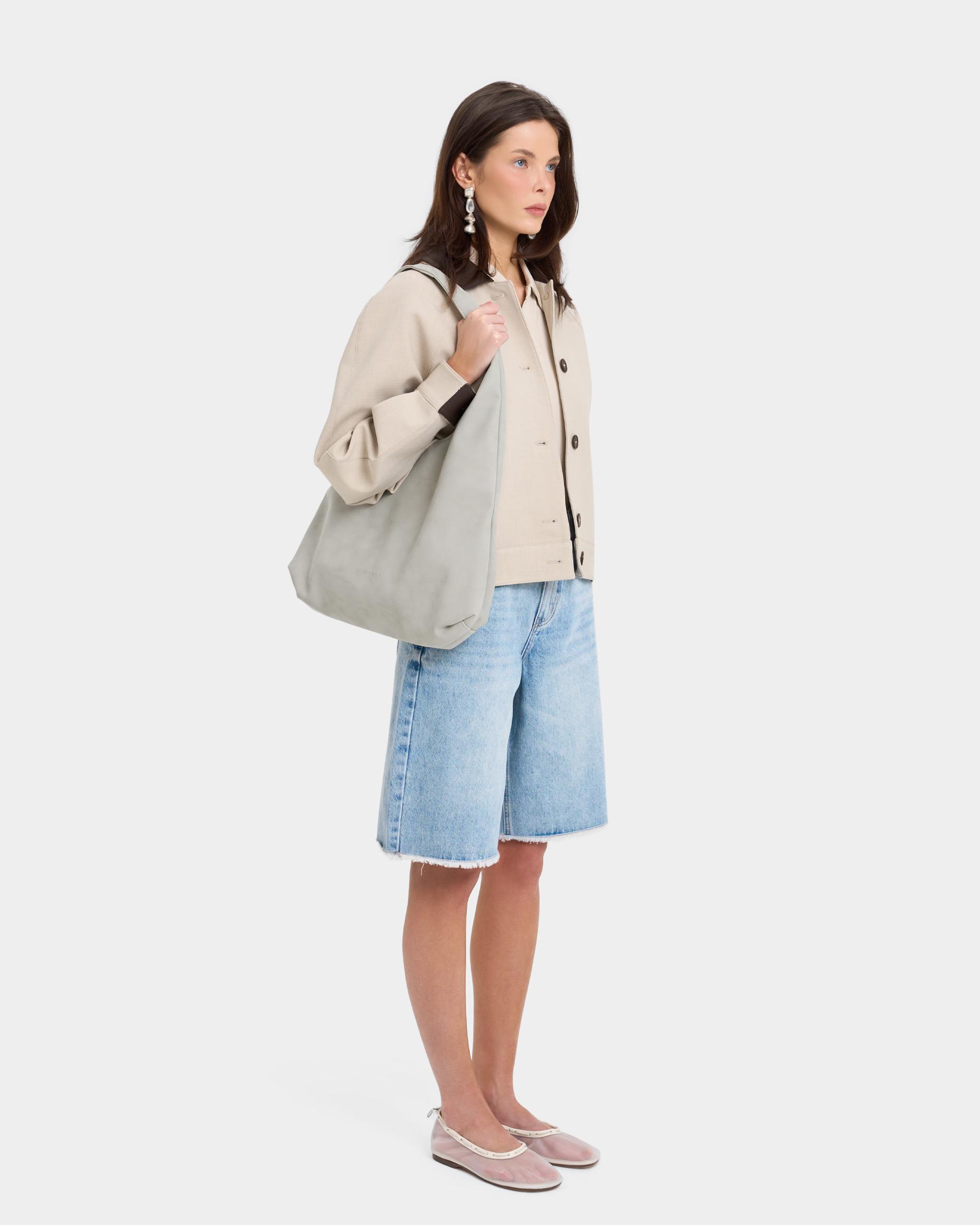 - Porta – классическая сумка-трапеция в графитовом светлом оттенке;