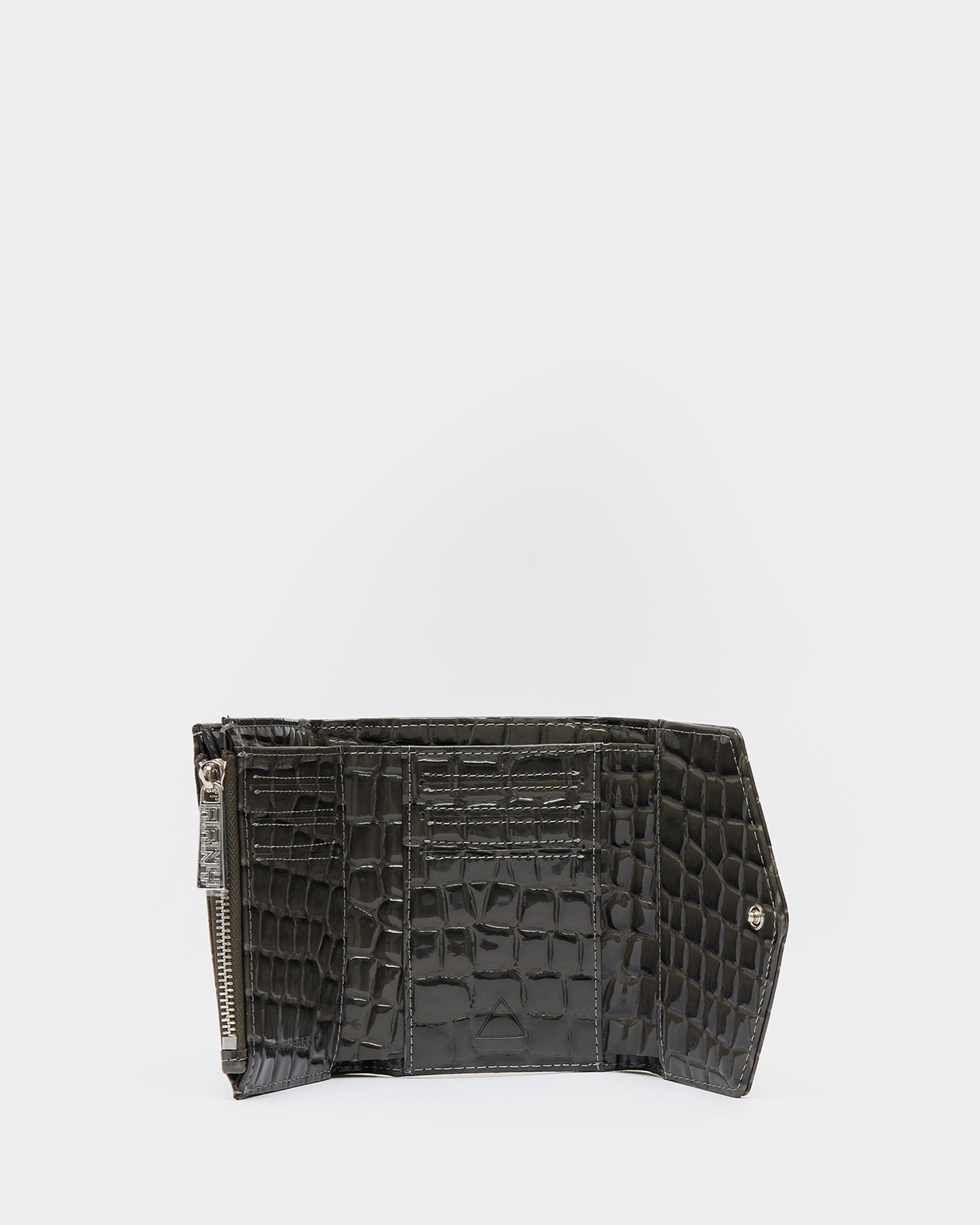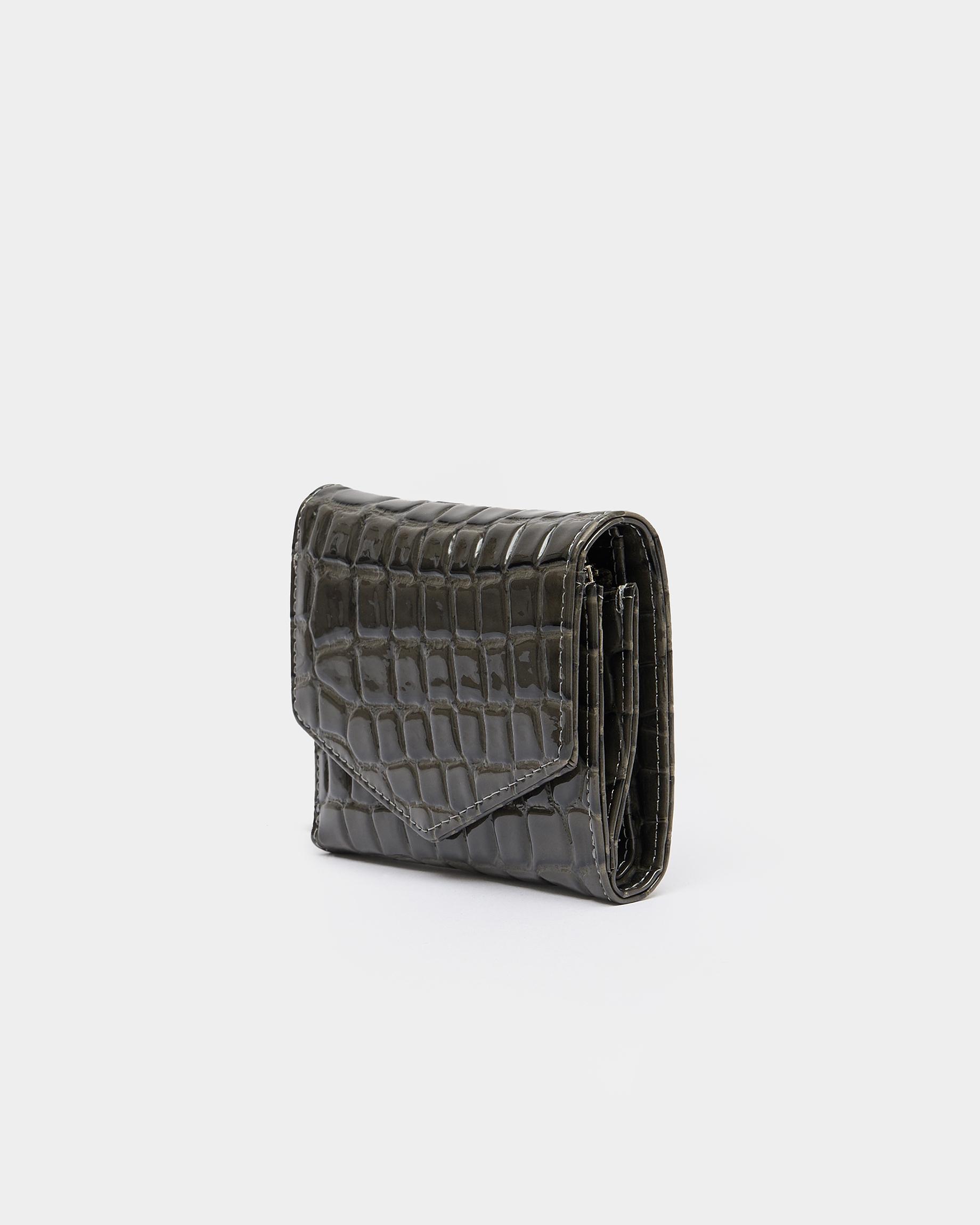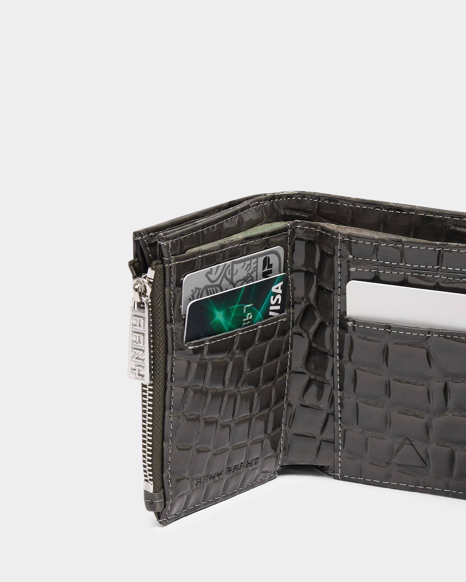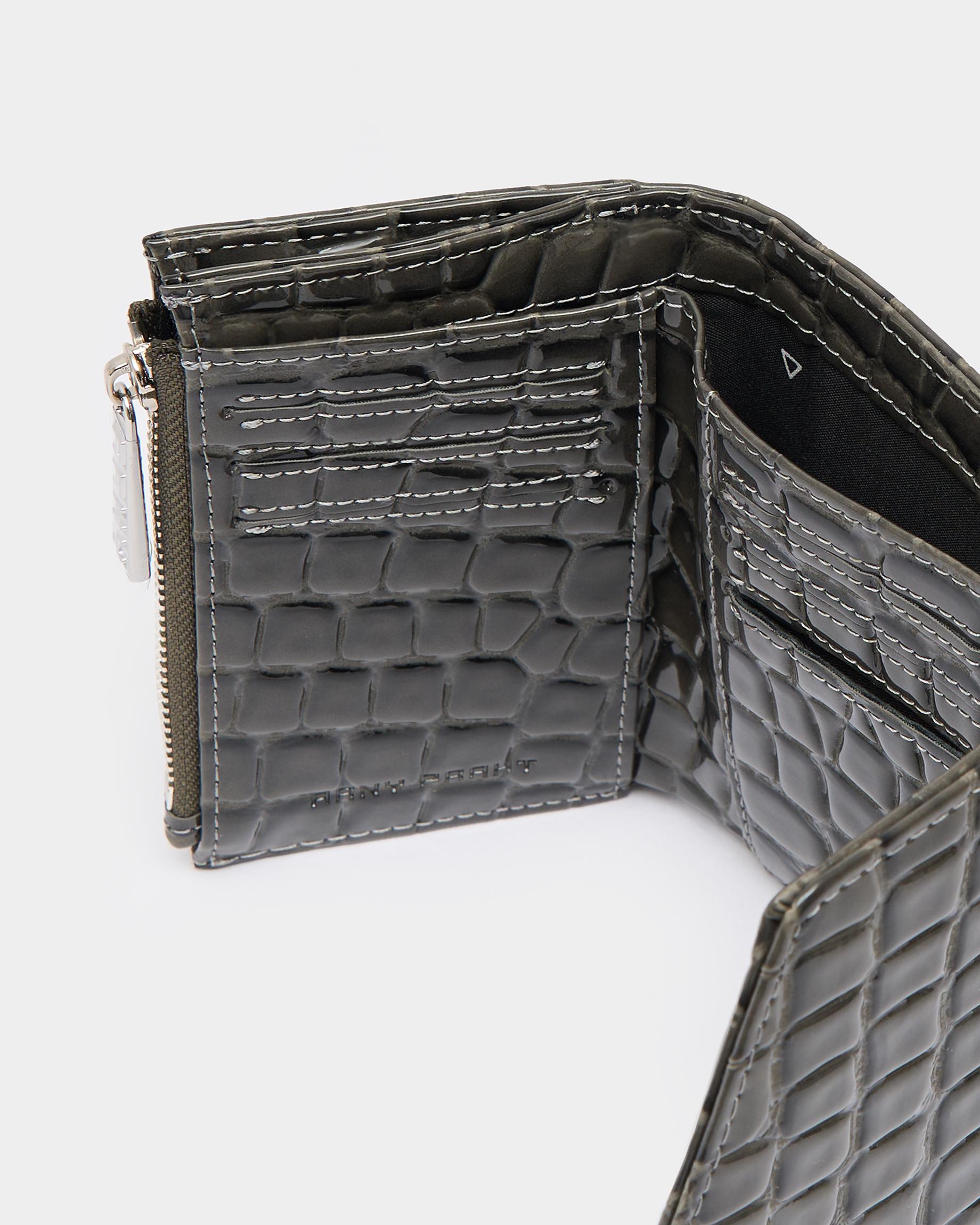 Небольшой кошелек для купюр, карт и монет в цвете серый крокодил
