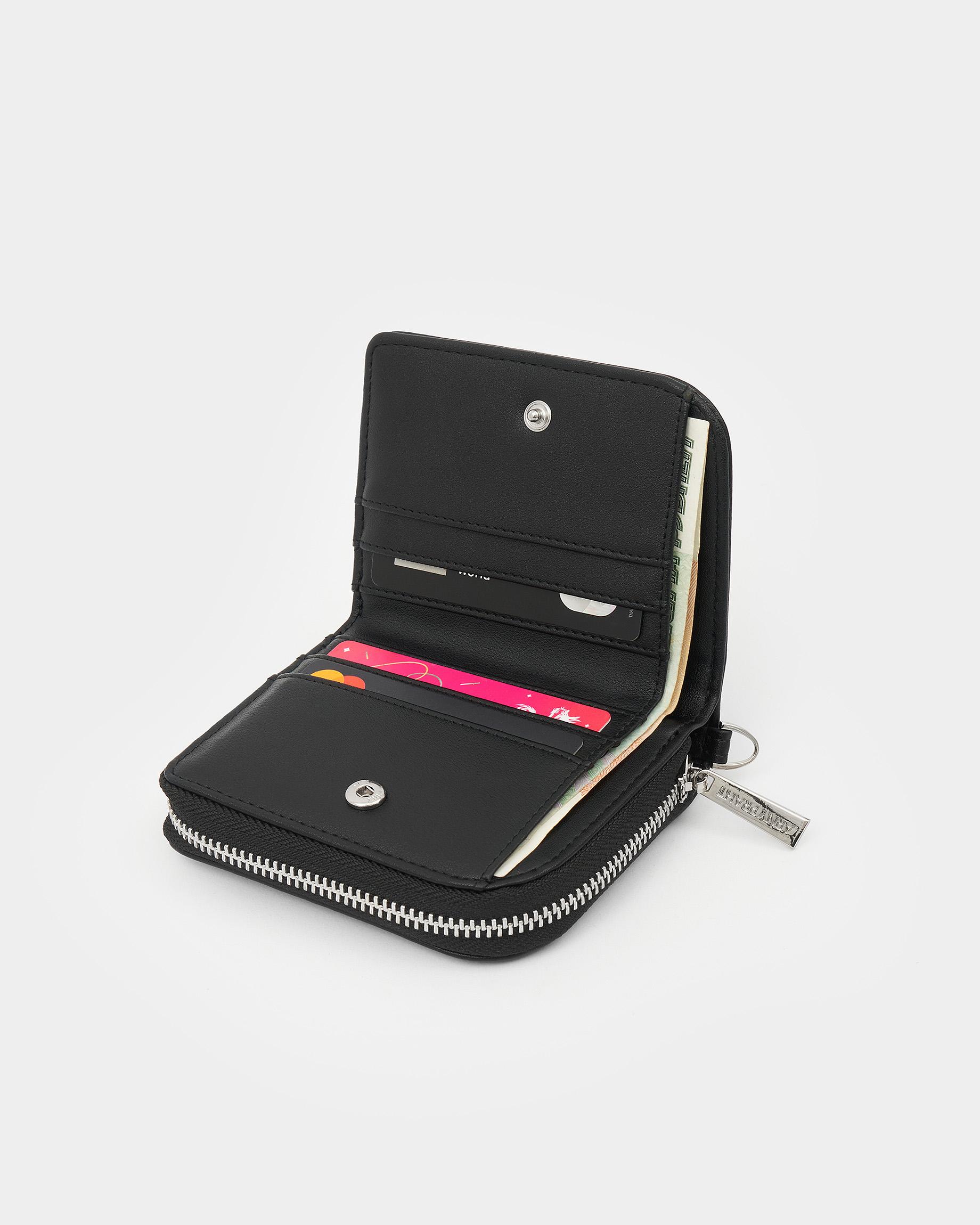 Небольшой складной кошелек для купюр и карт и монет в черном цвете