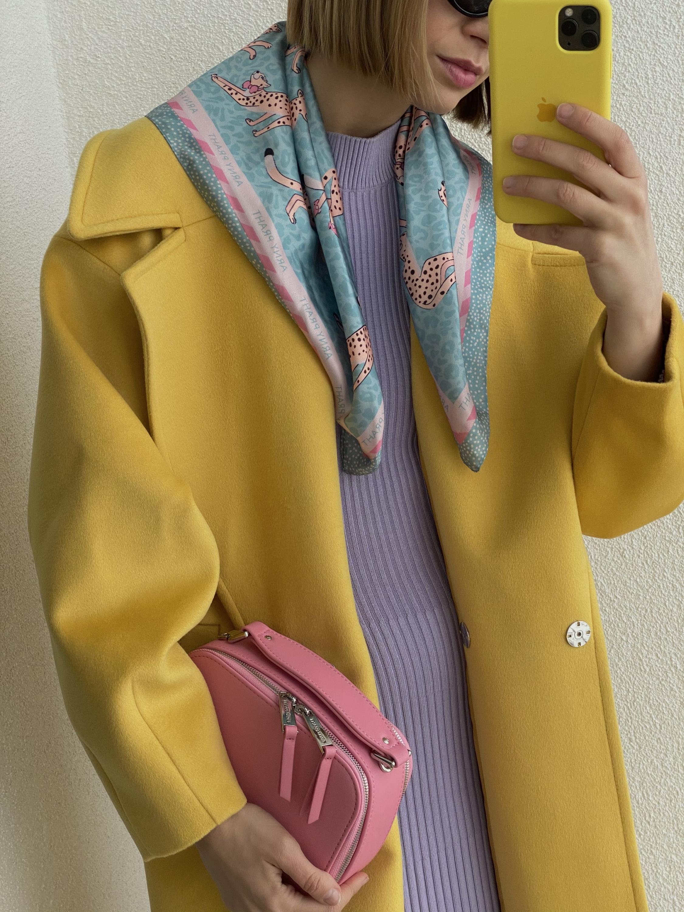 Платок отличный, думала носить на голове, но оказался мал, поэтому он теперь красуется на сумке и радует меня каждый раз, когда я на него смотрю :)