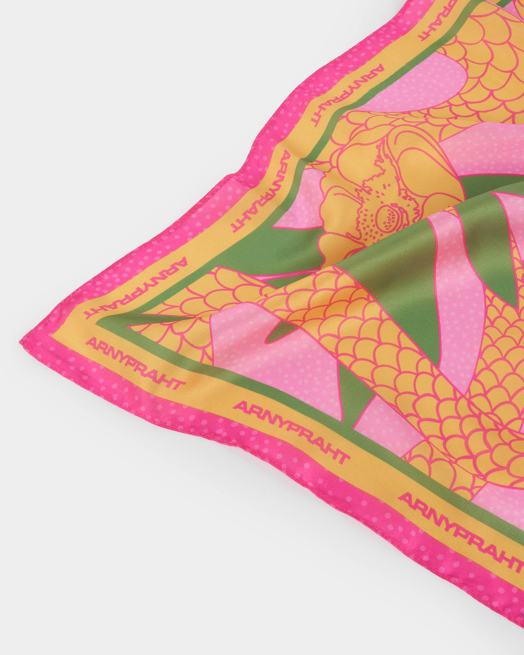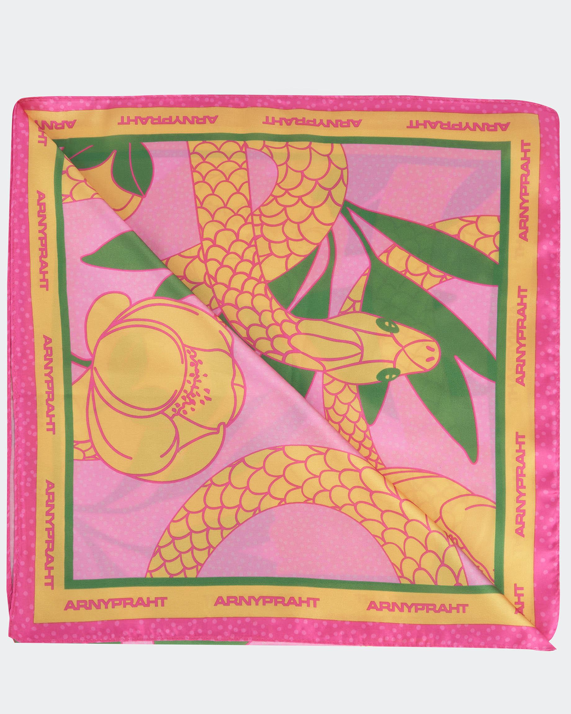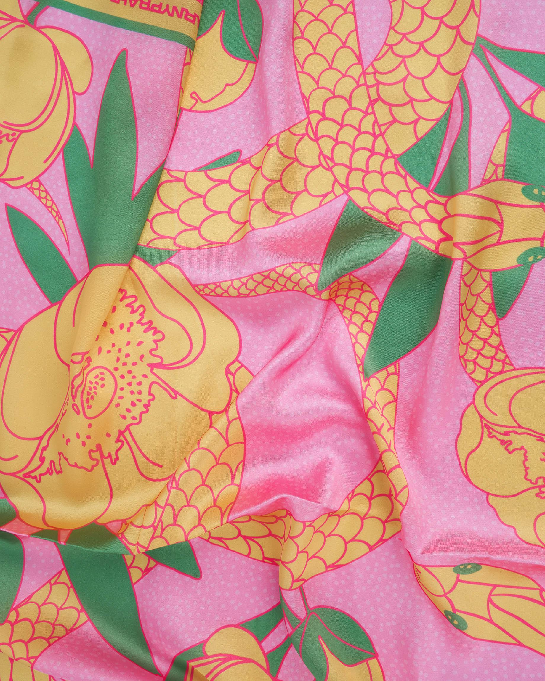 Большой розовый платок "Пион и питон"