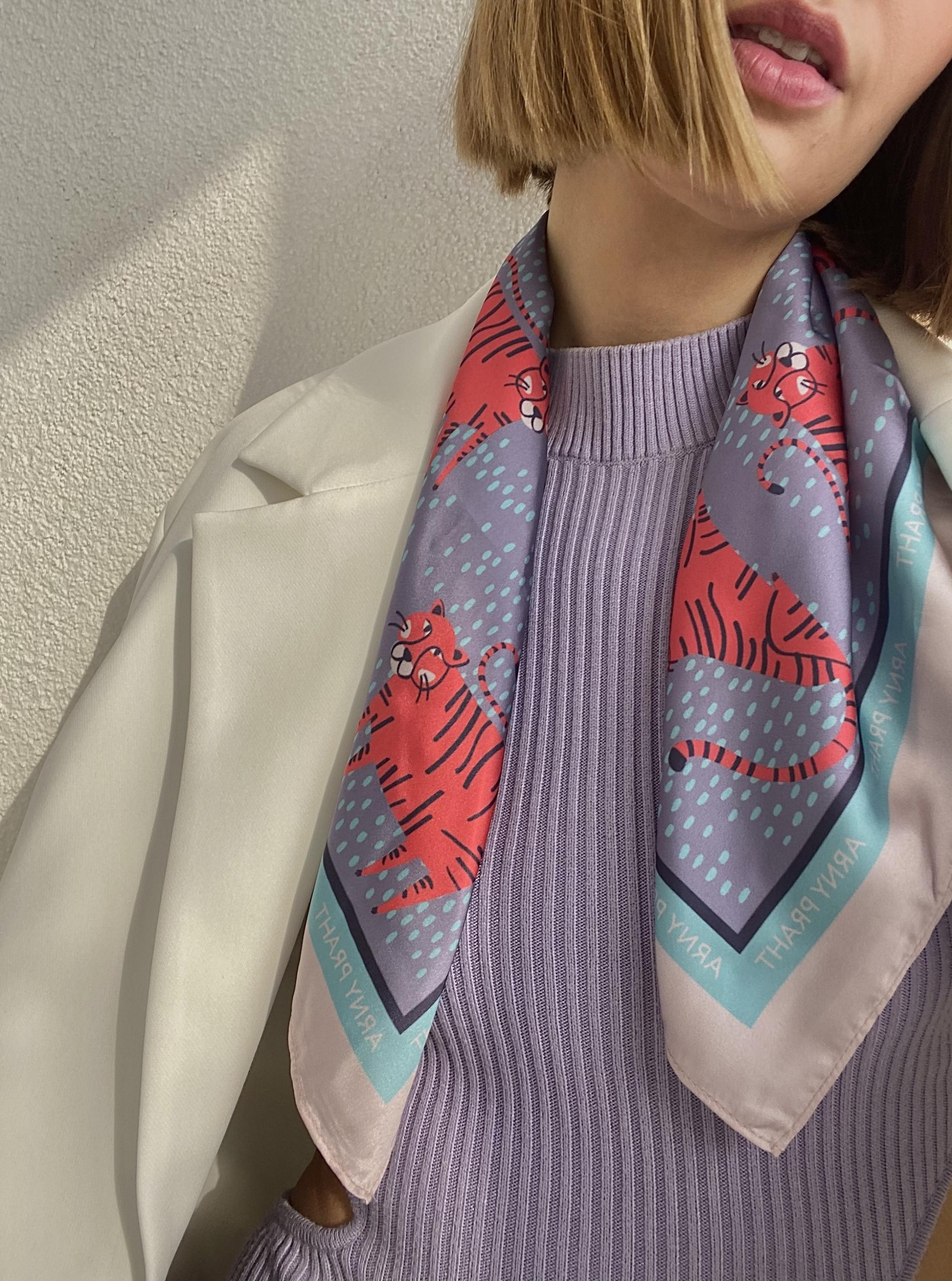Платок отличный, думала носить на голове, но оказался мал, поэтому он теперь красуется на сумке и радует меня каждый раз, когда я на него смотрю :)