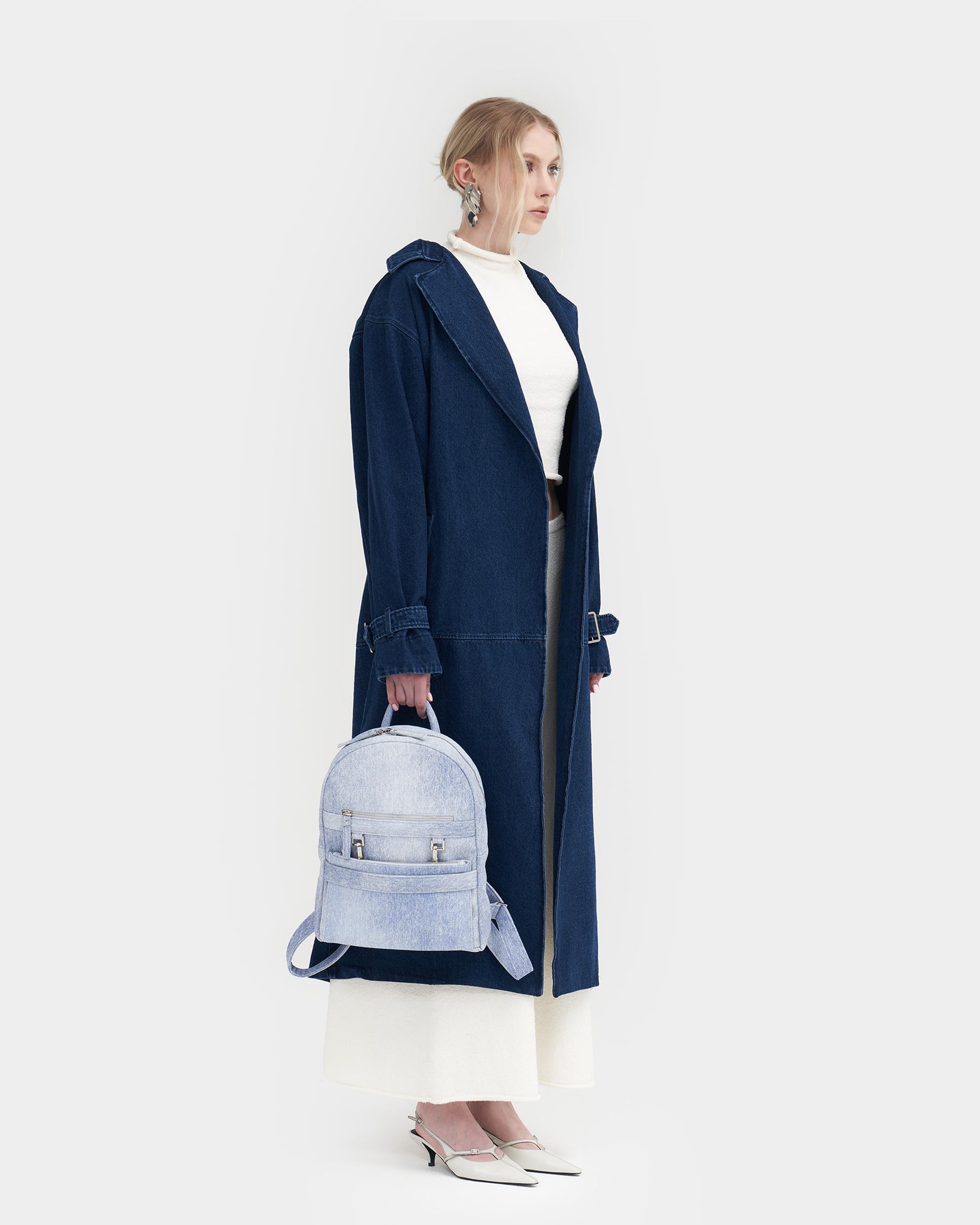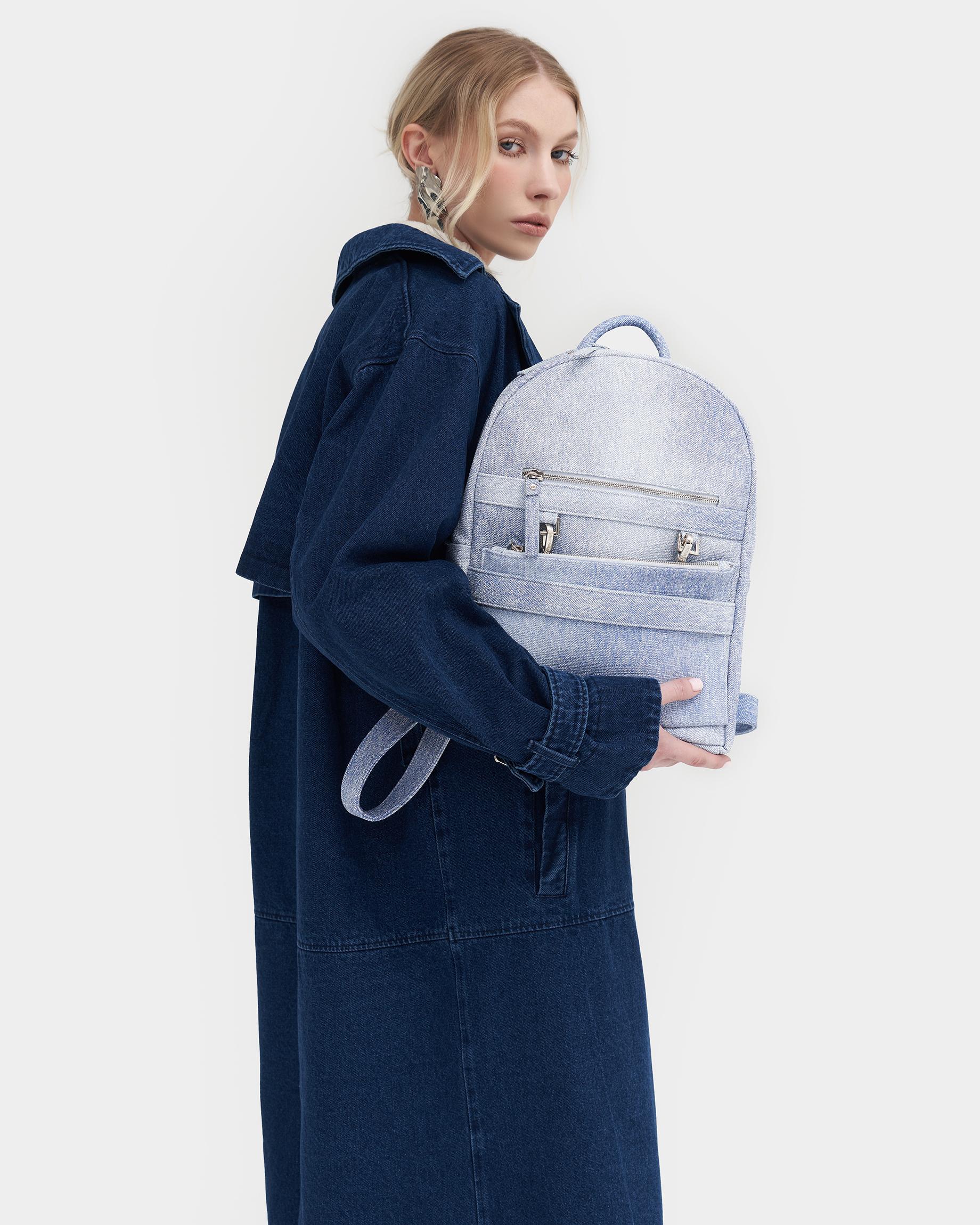 Городской рюкзак с отделением для ноутбука 13″ и отстегивающимся карманом-клатчем в цвете потертый деним