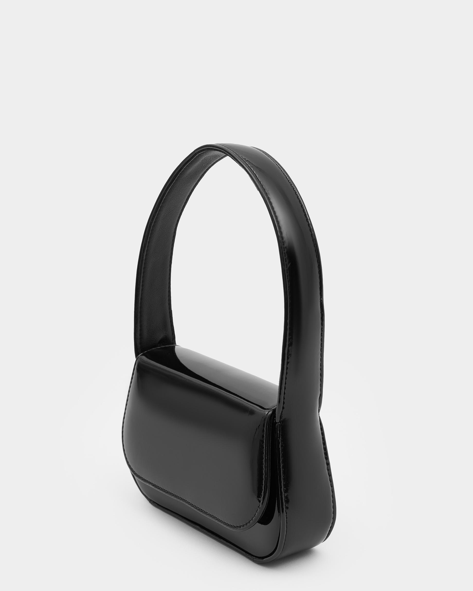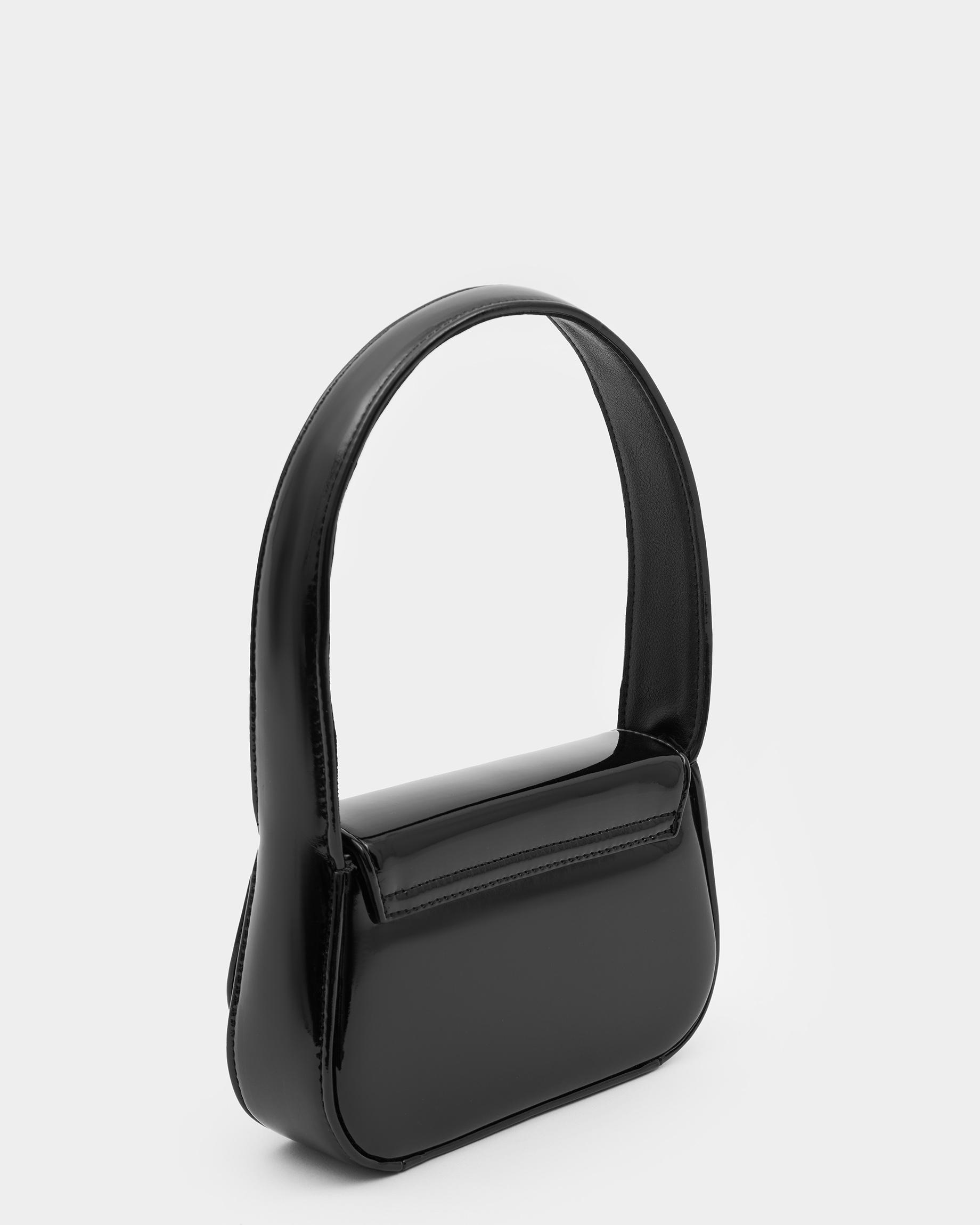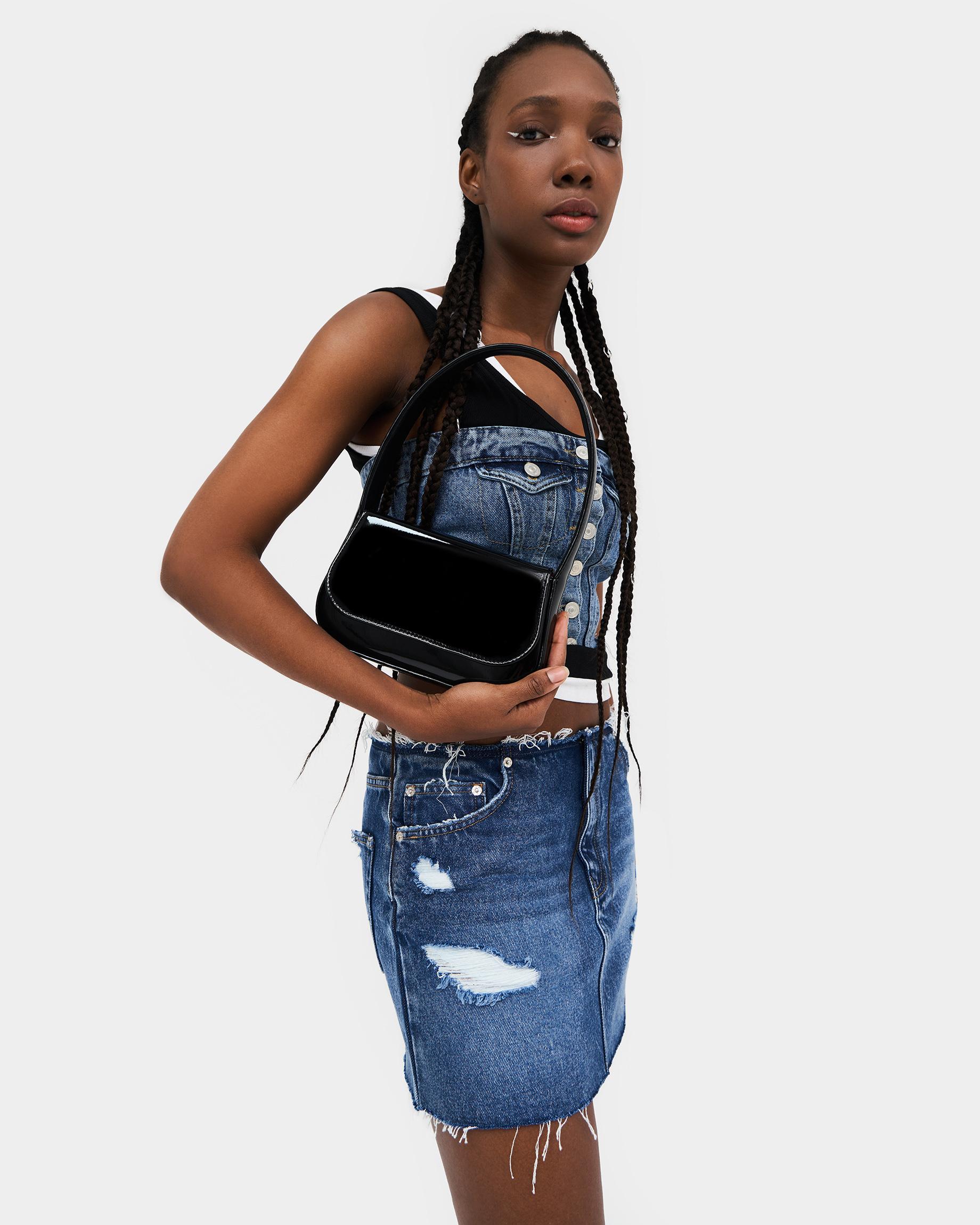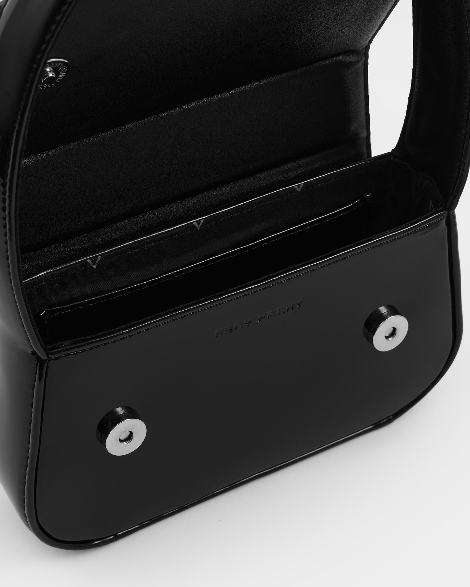 Сумка-клатч в цвете черный лак с широким ремнем