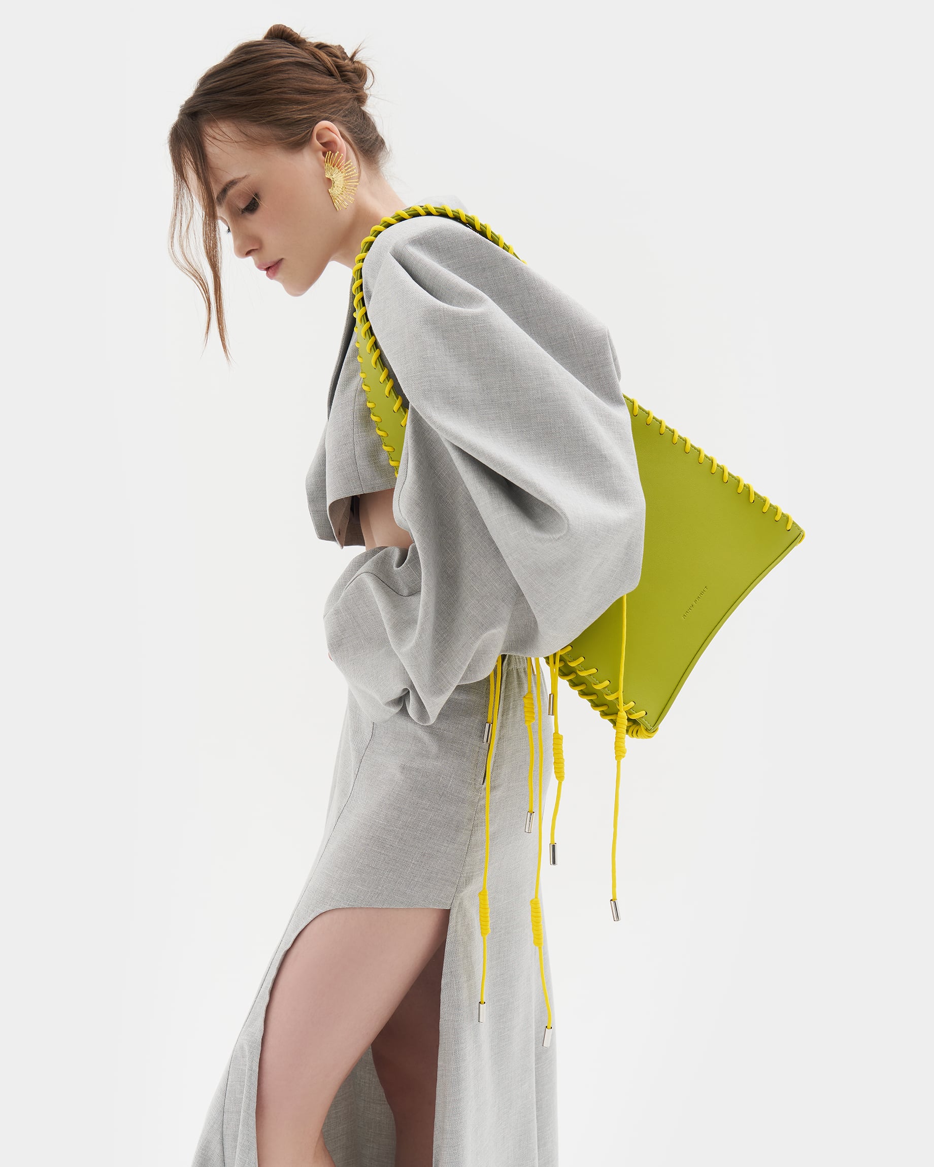 Каркасная сумка с ремнем через плечо и декоративной шнуровкой в цвете пальма