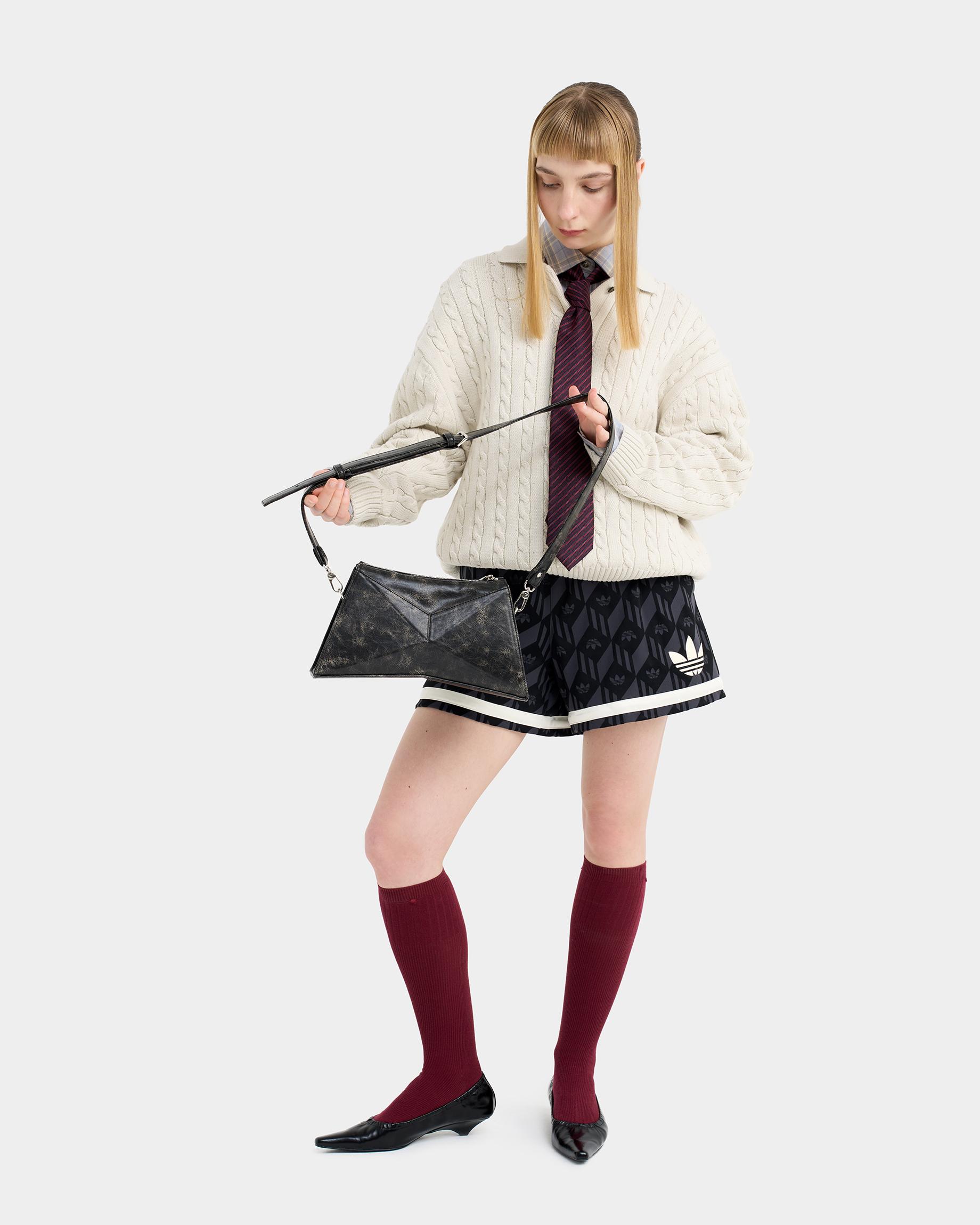 Каркасная сумка-багет геометричной формы в цвете каштан кракле