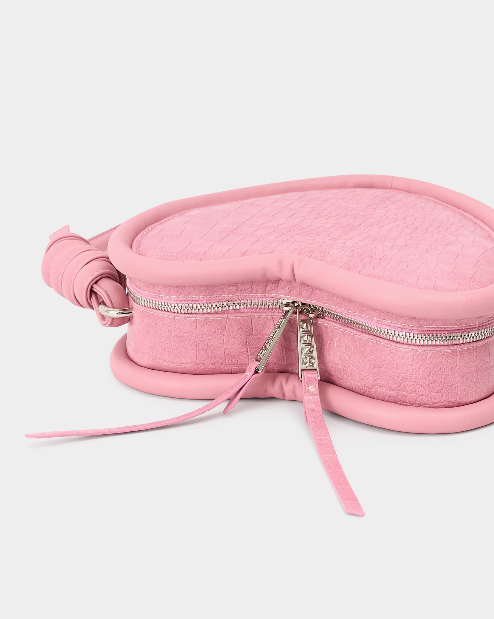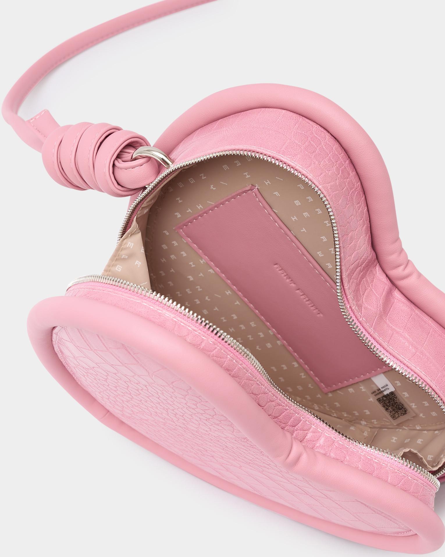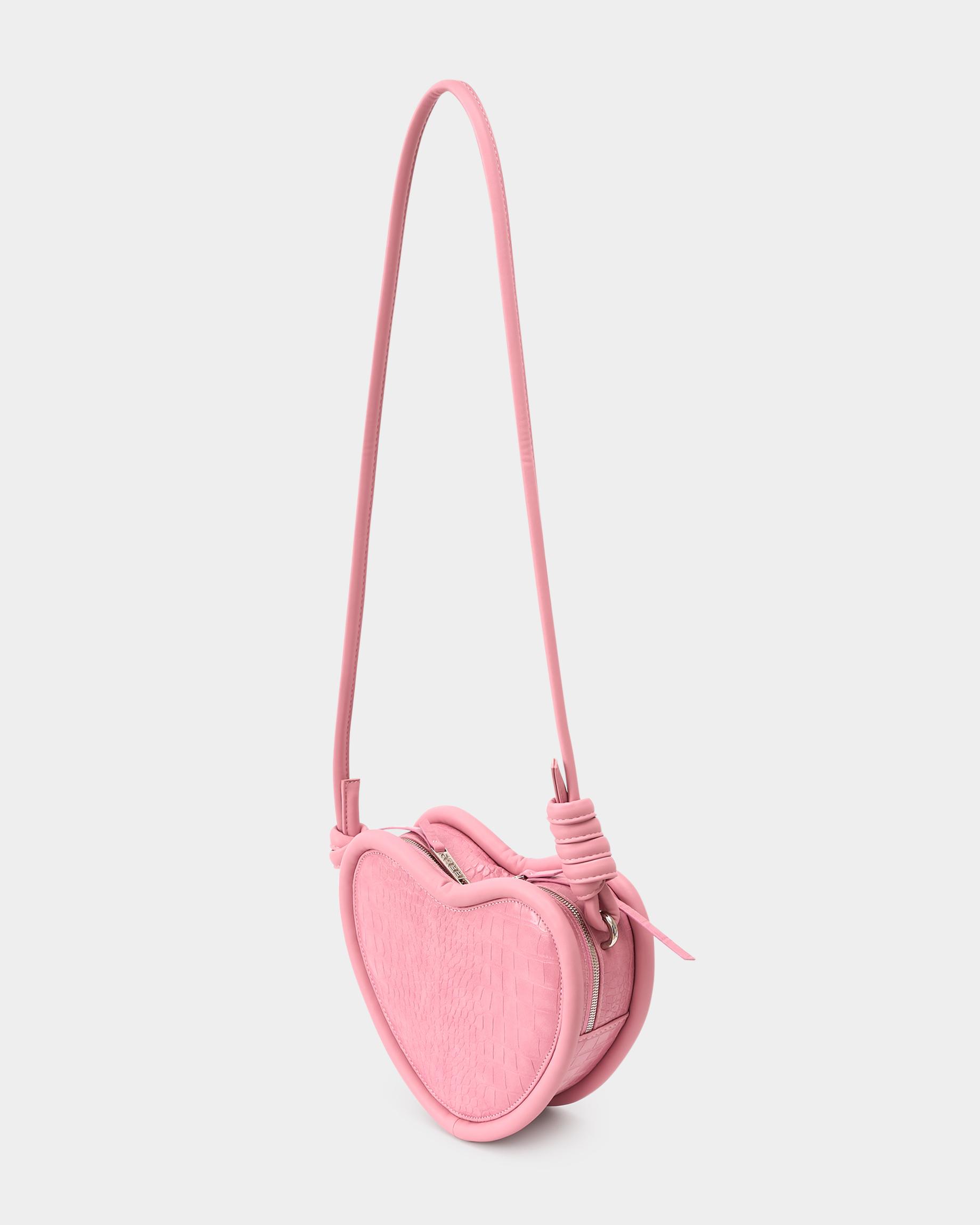 Каркасная сумка в форме сердца с тонким ремнем в виде жгута в цвете розовый крокодил