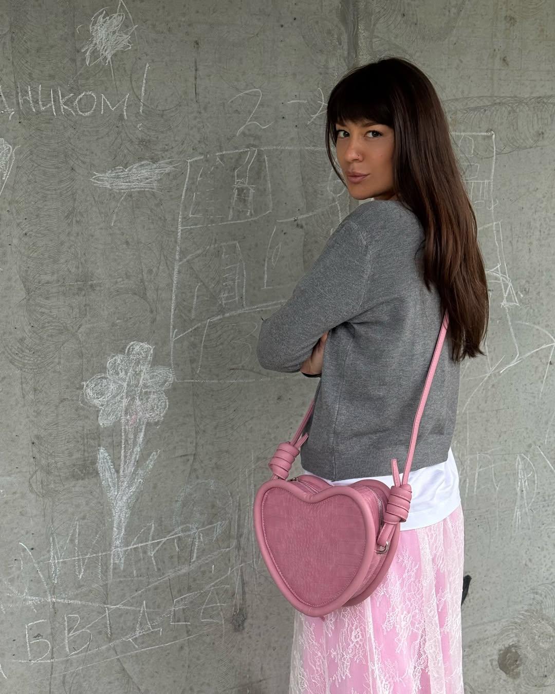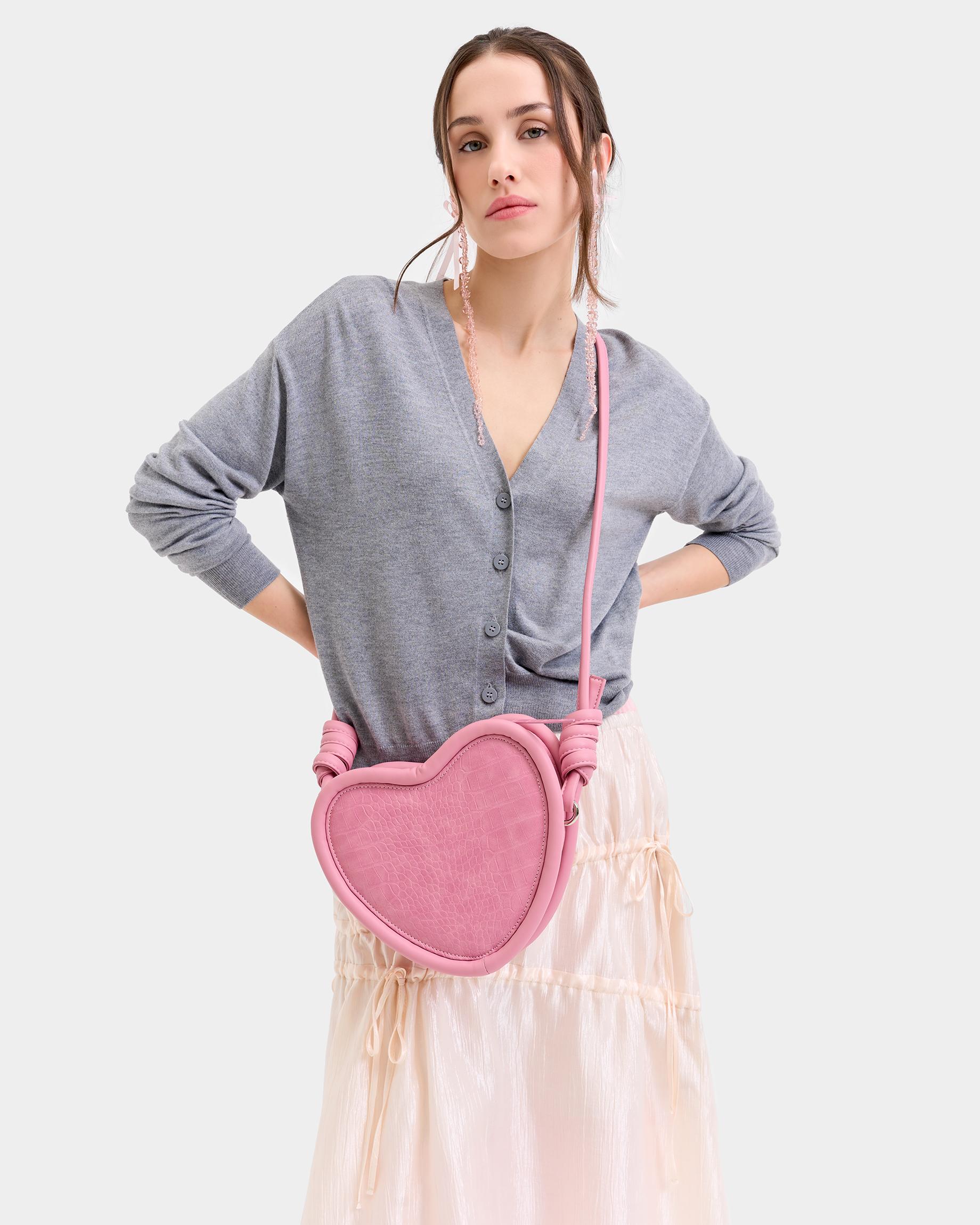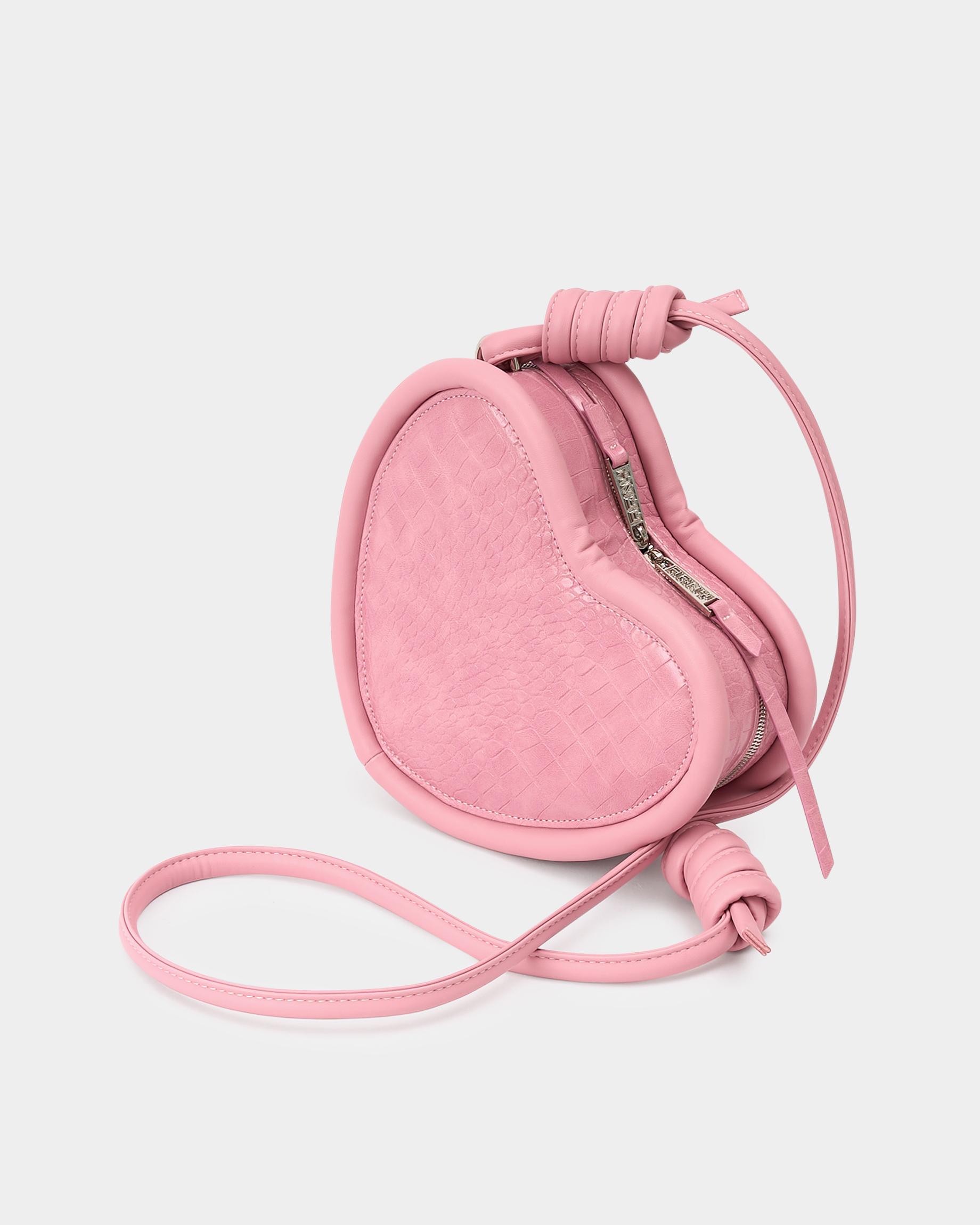 Каркасная сумка в форме сердца с тонким ремнем в виде жгута в цвете розовый крокодил