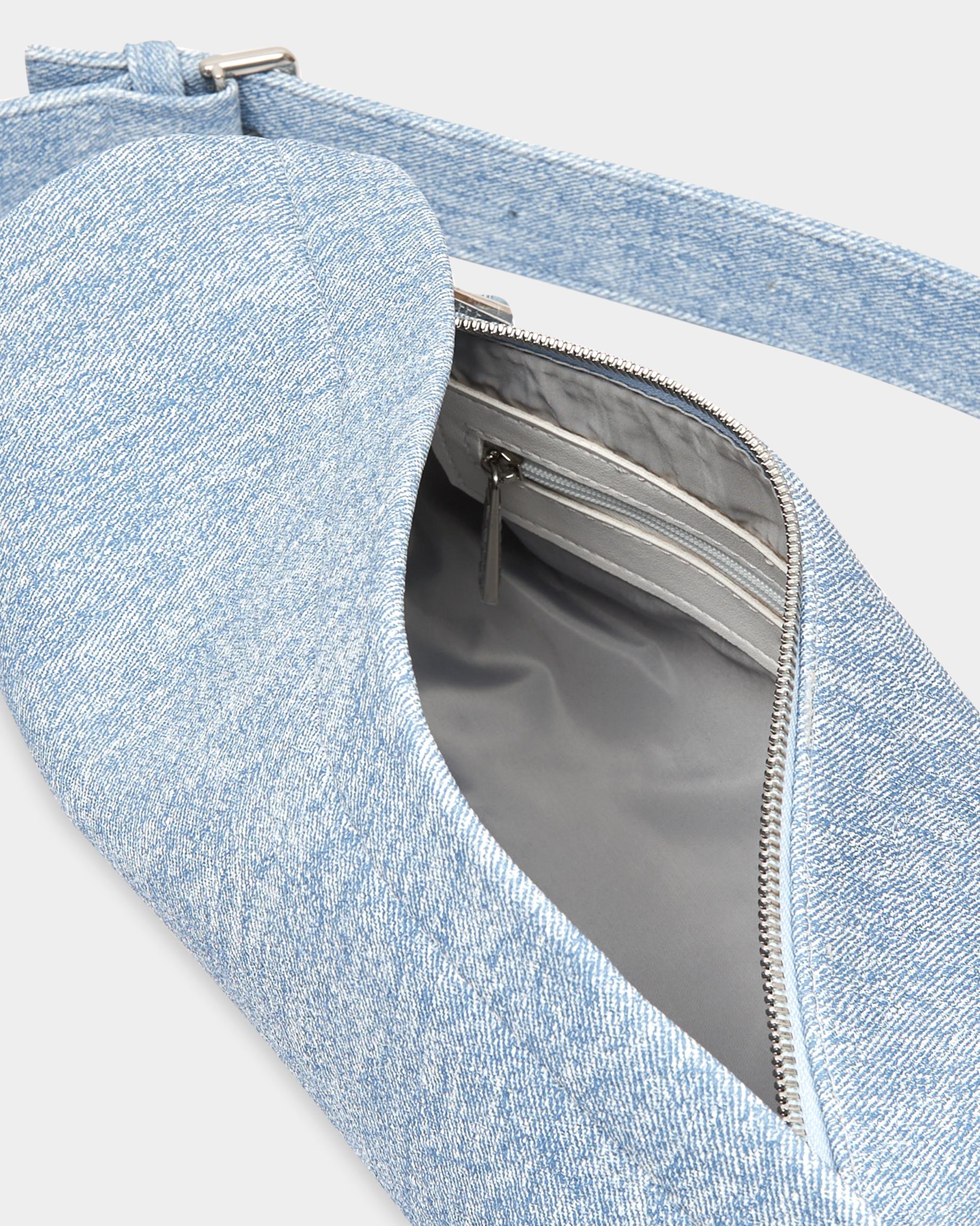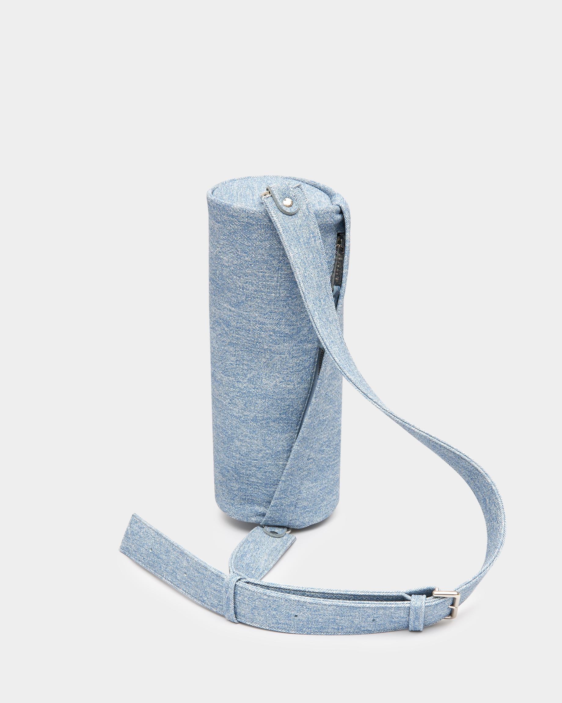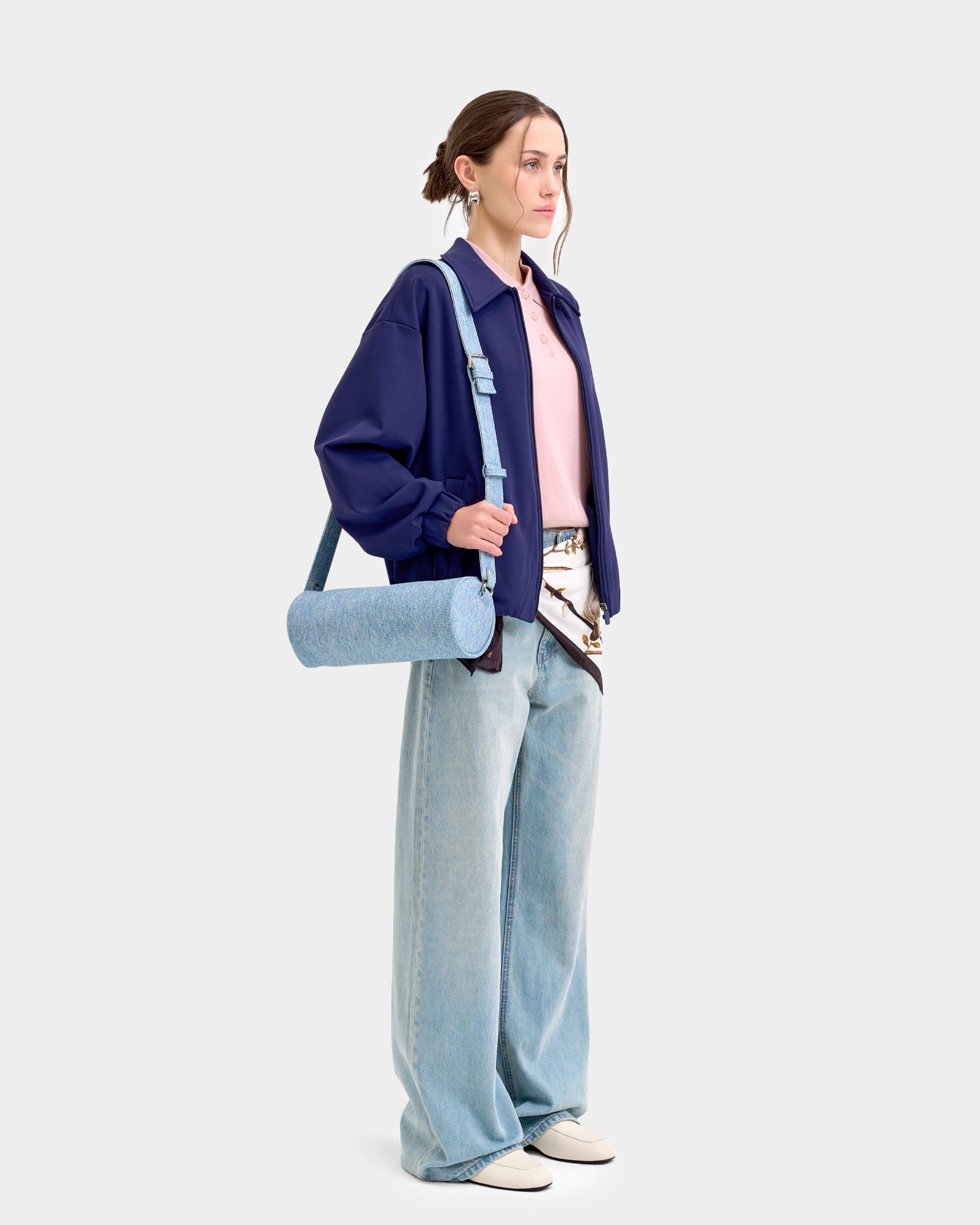 Небольшая мягкая сумка-цилиндр DRUM в цвете голубой деним с ассиметричной молнией