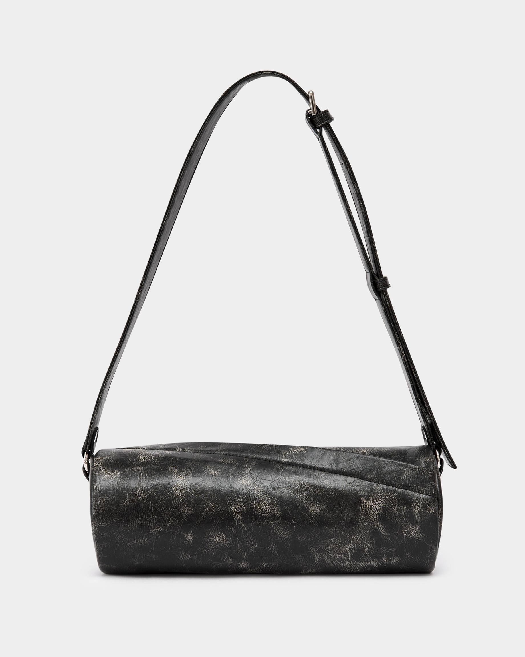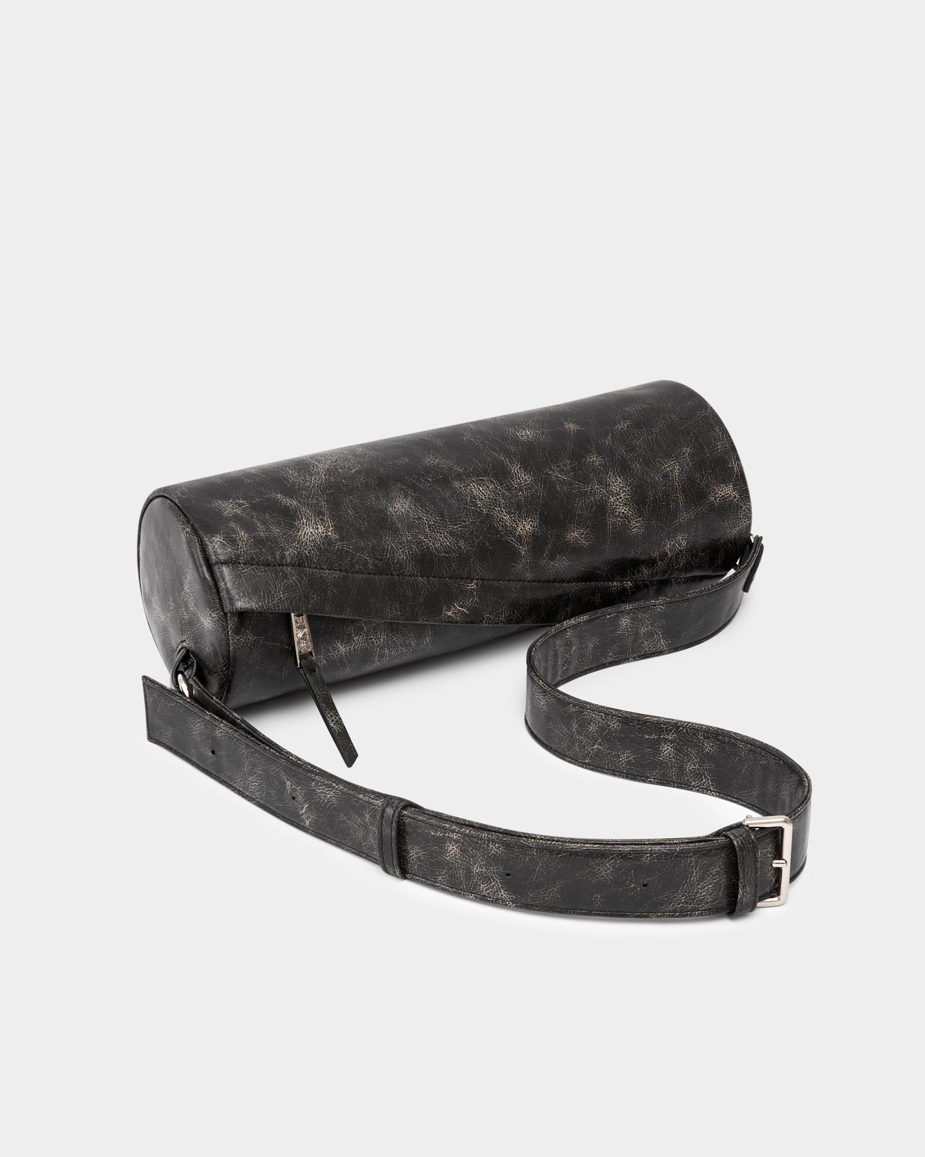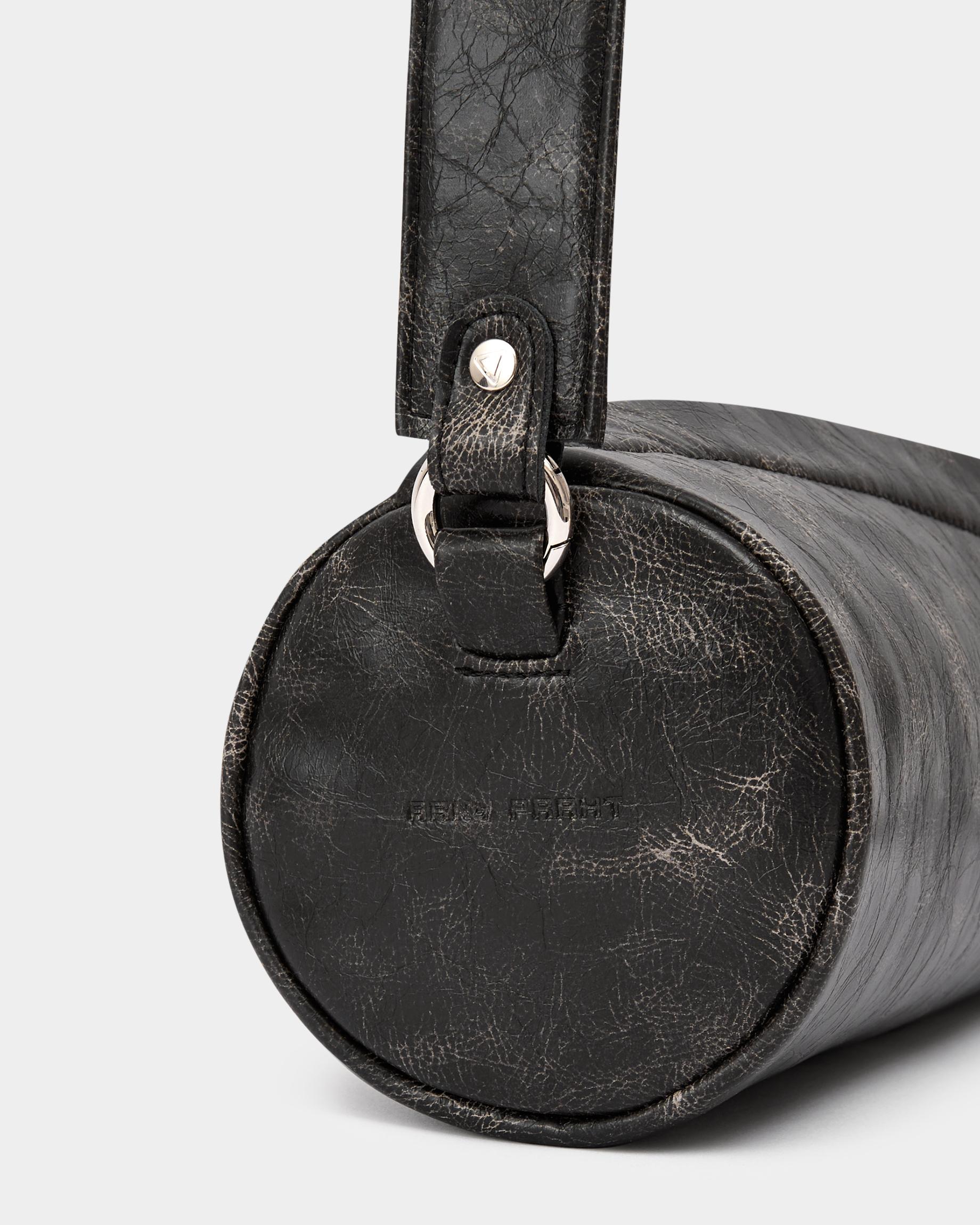 Небольшая мягкая сумка-цилиндр DRUM из экокожи с ассиметричной молнией в цвете каштан кракле
