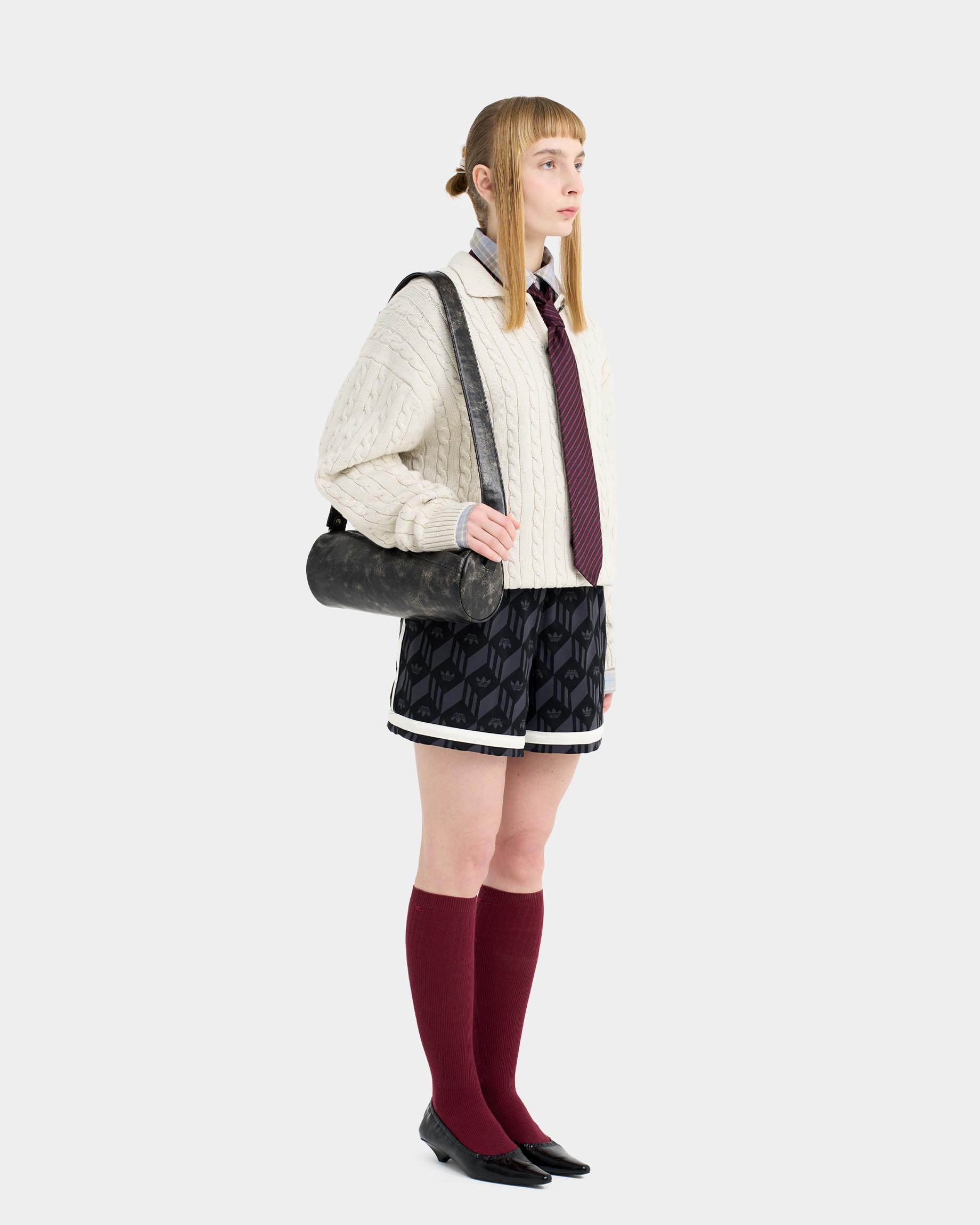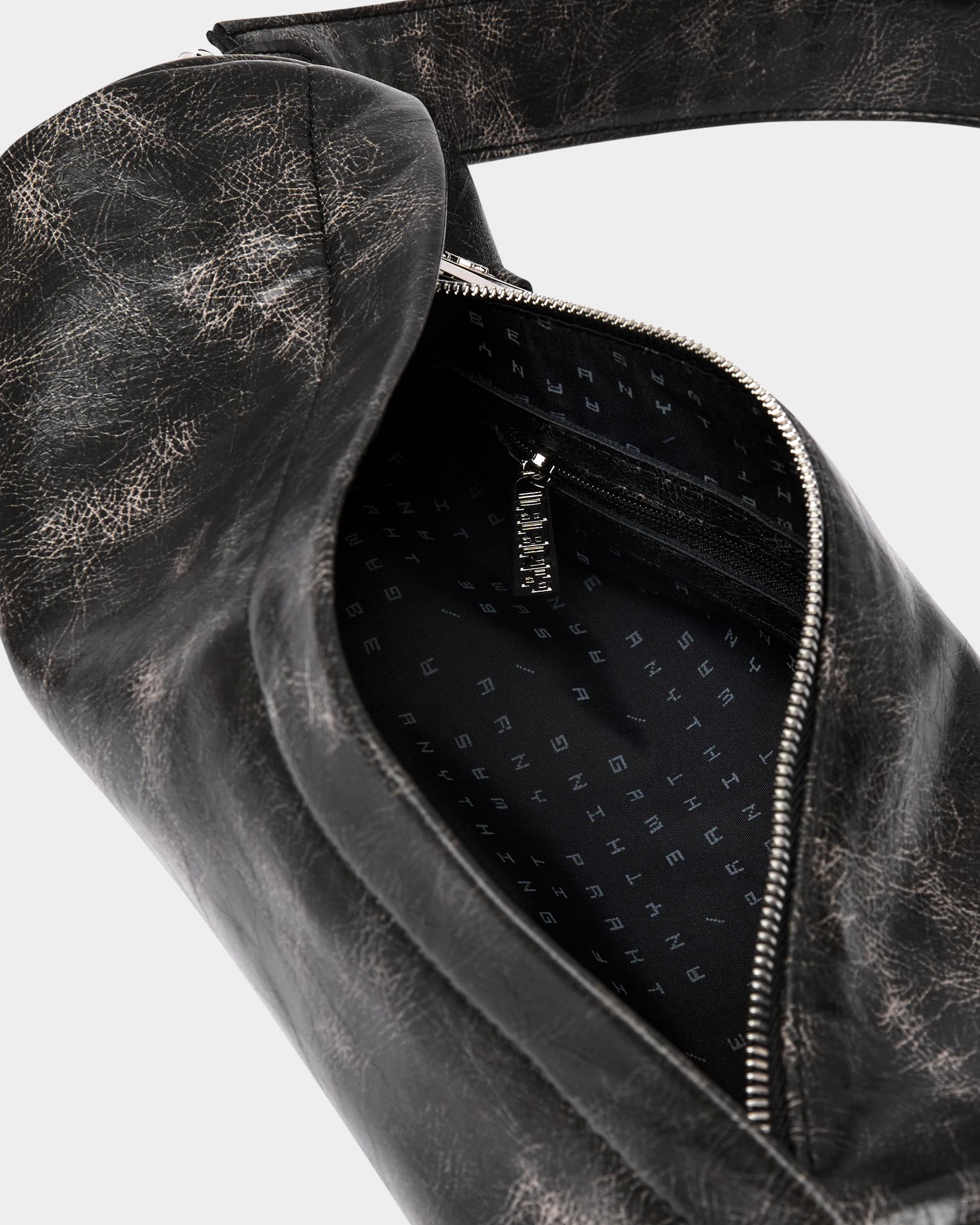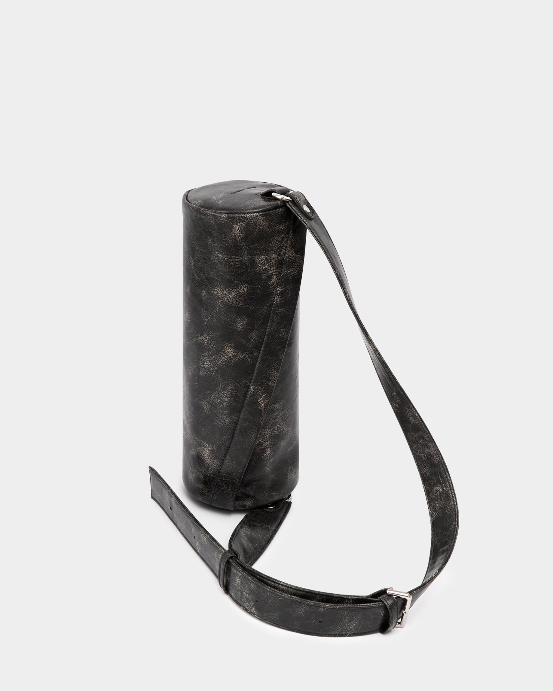 Небольшая мягкая сумка-цилиндр DRUM из экокожи с ассиметричной молнией в цвете каштан кракле