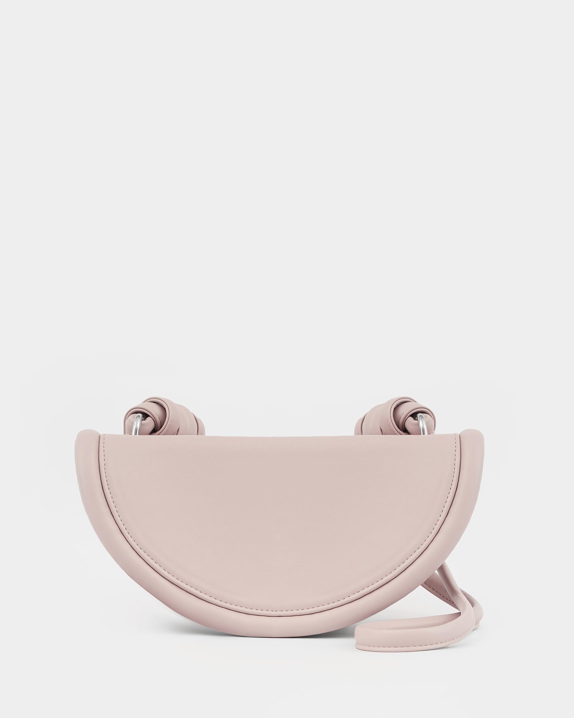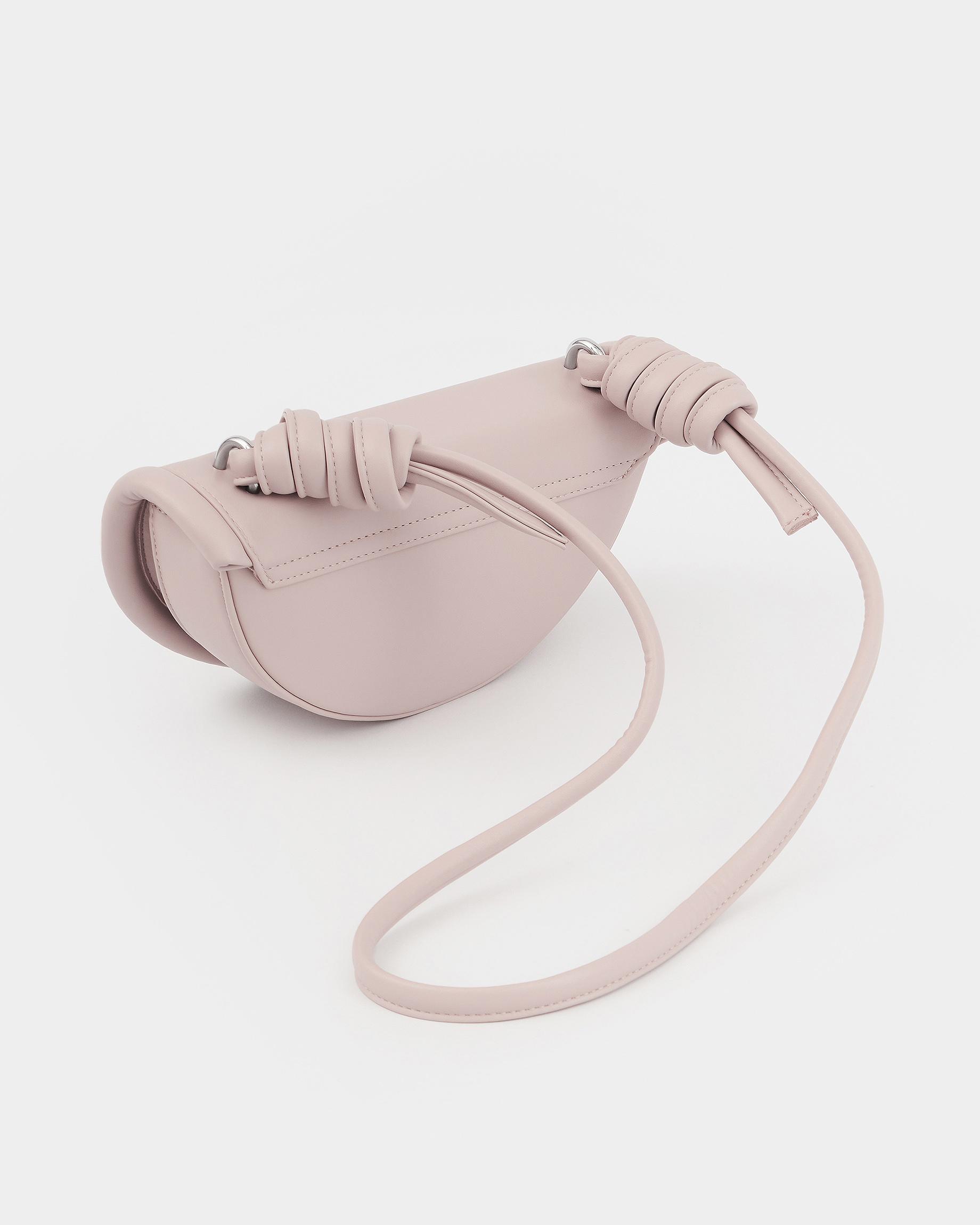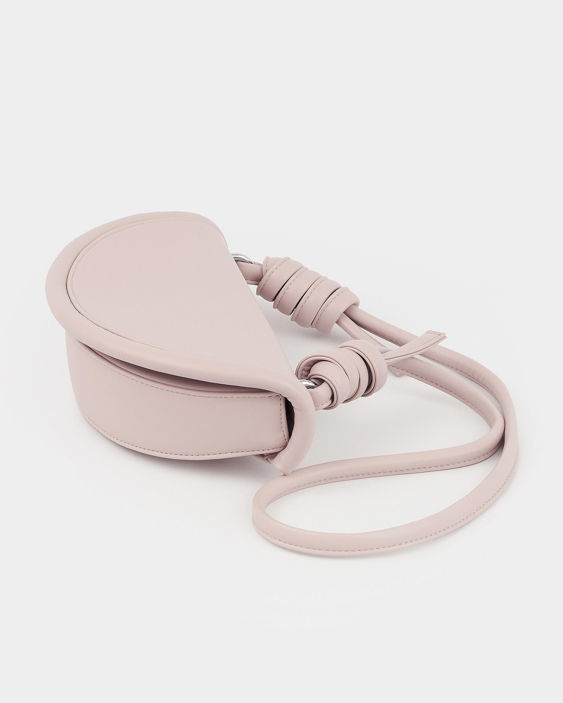 Полукруглая каркасная сумка с объемным кантом и ремнем в виде жгута в цвете нюд