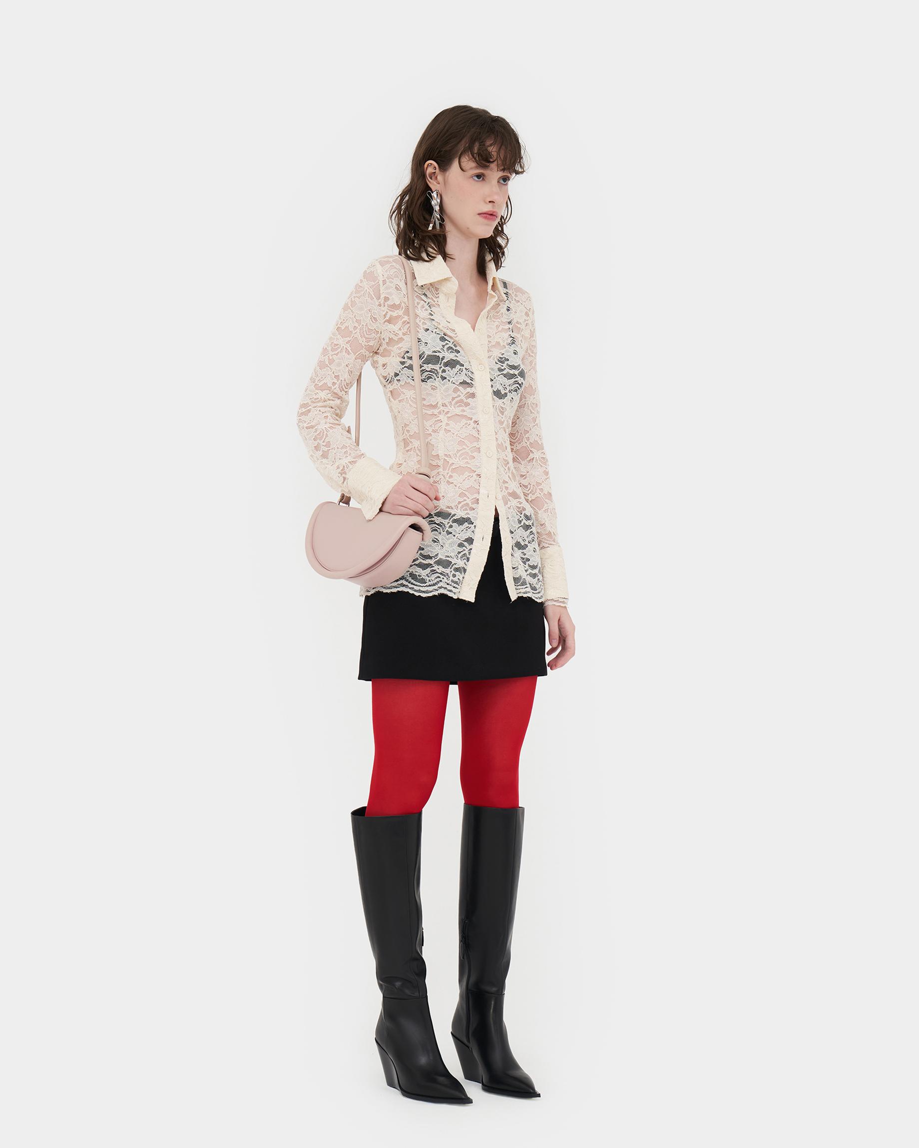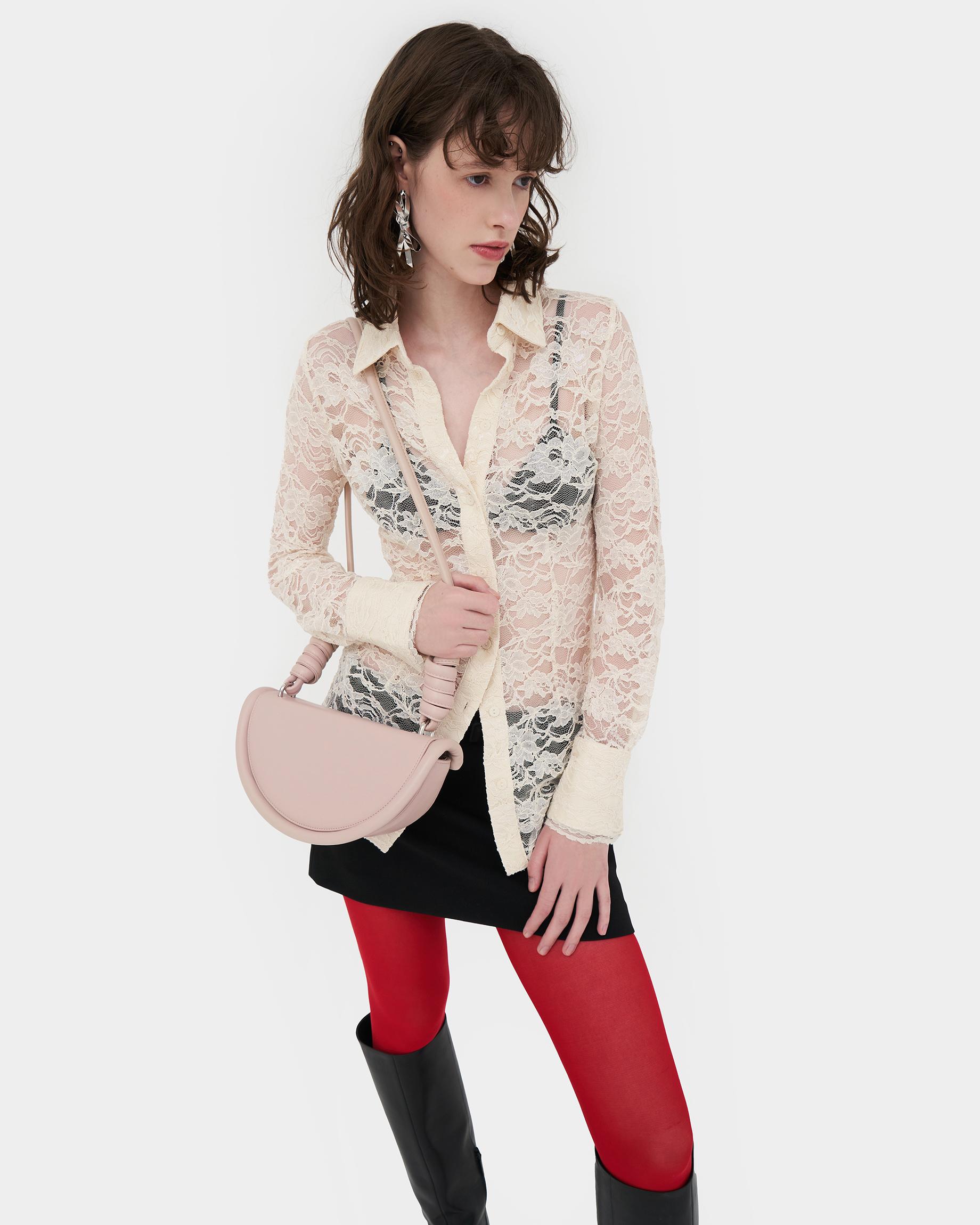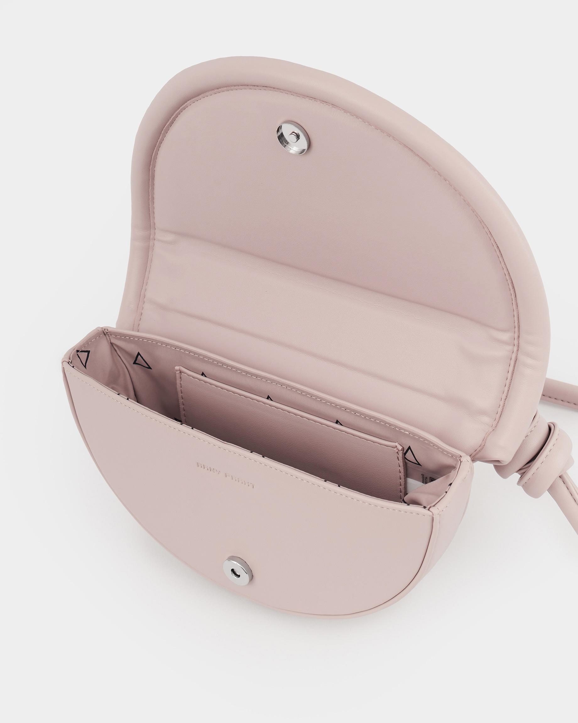 Полукруглая каркасная сумка с объемным кантом и ремнем в виде жгута в цвете нюд