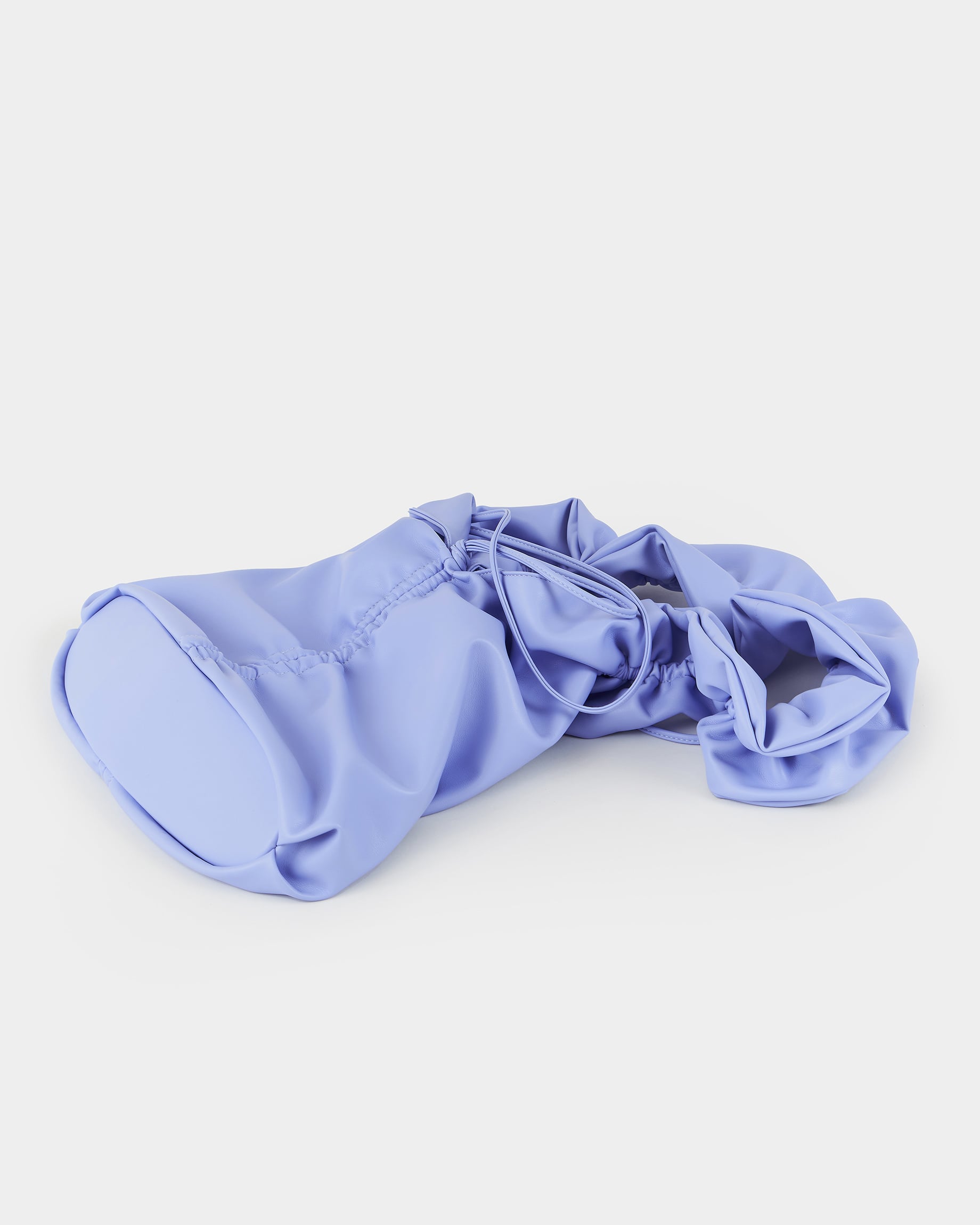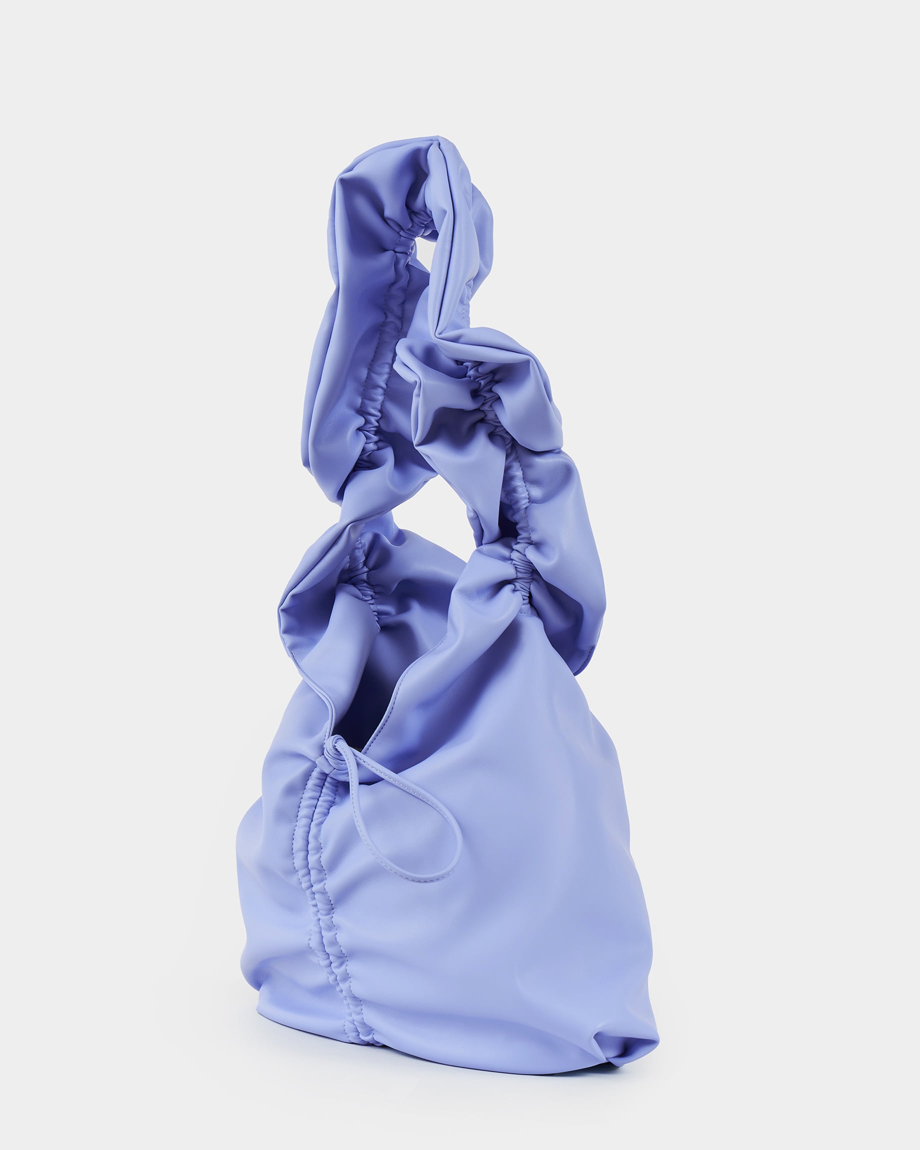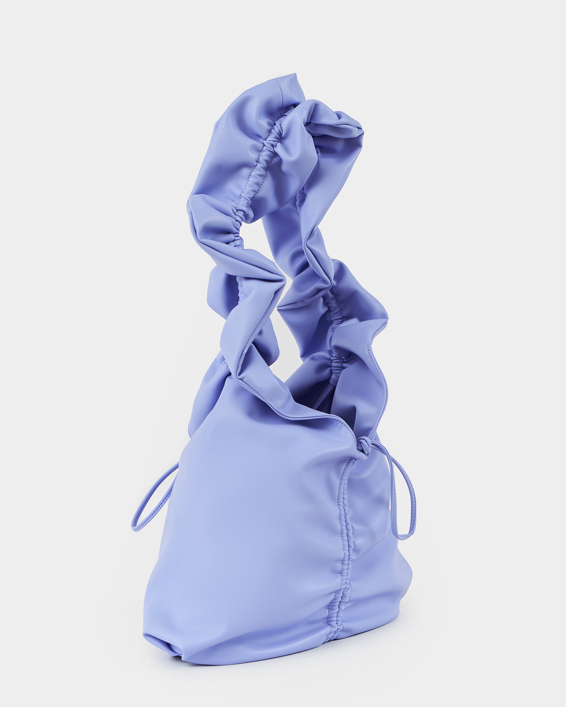 Мягкая женская сумка-шоппер среднего размера с ручкой-воланом и сборками в цвете голубая матча