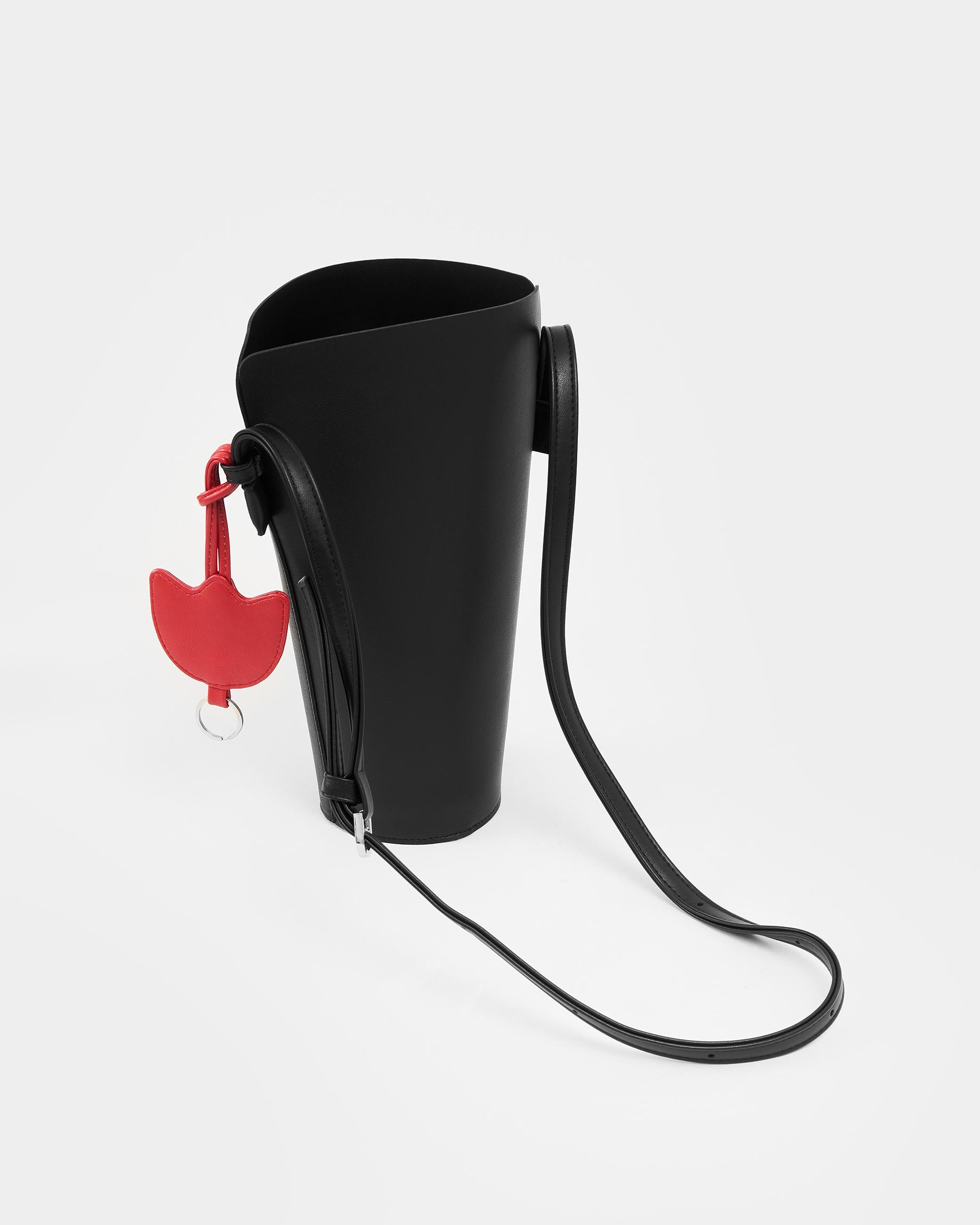 Небольшая мягкая сумка-ведро из двусторонней экокожи с регулируемым ремнем и брелком в комплекте
