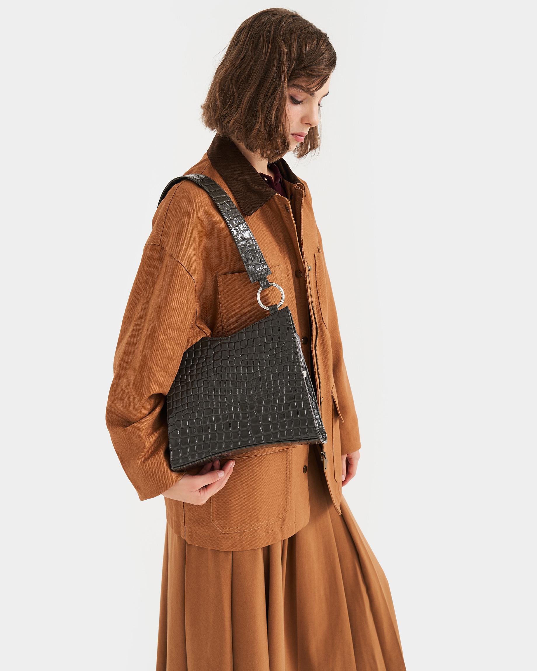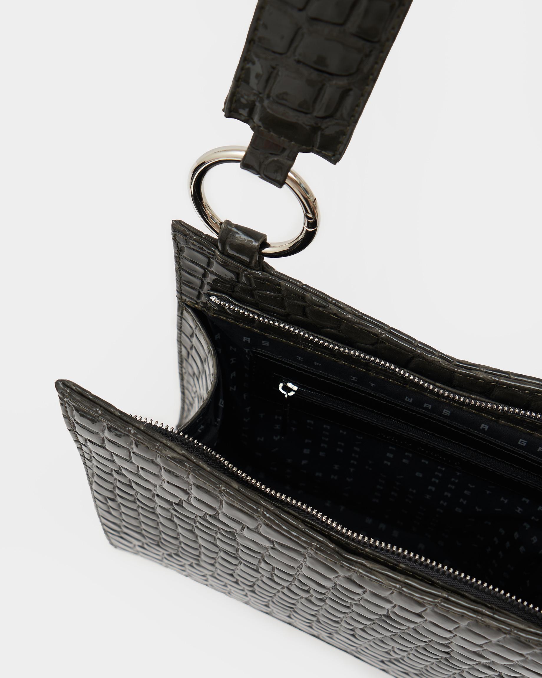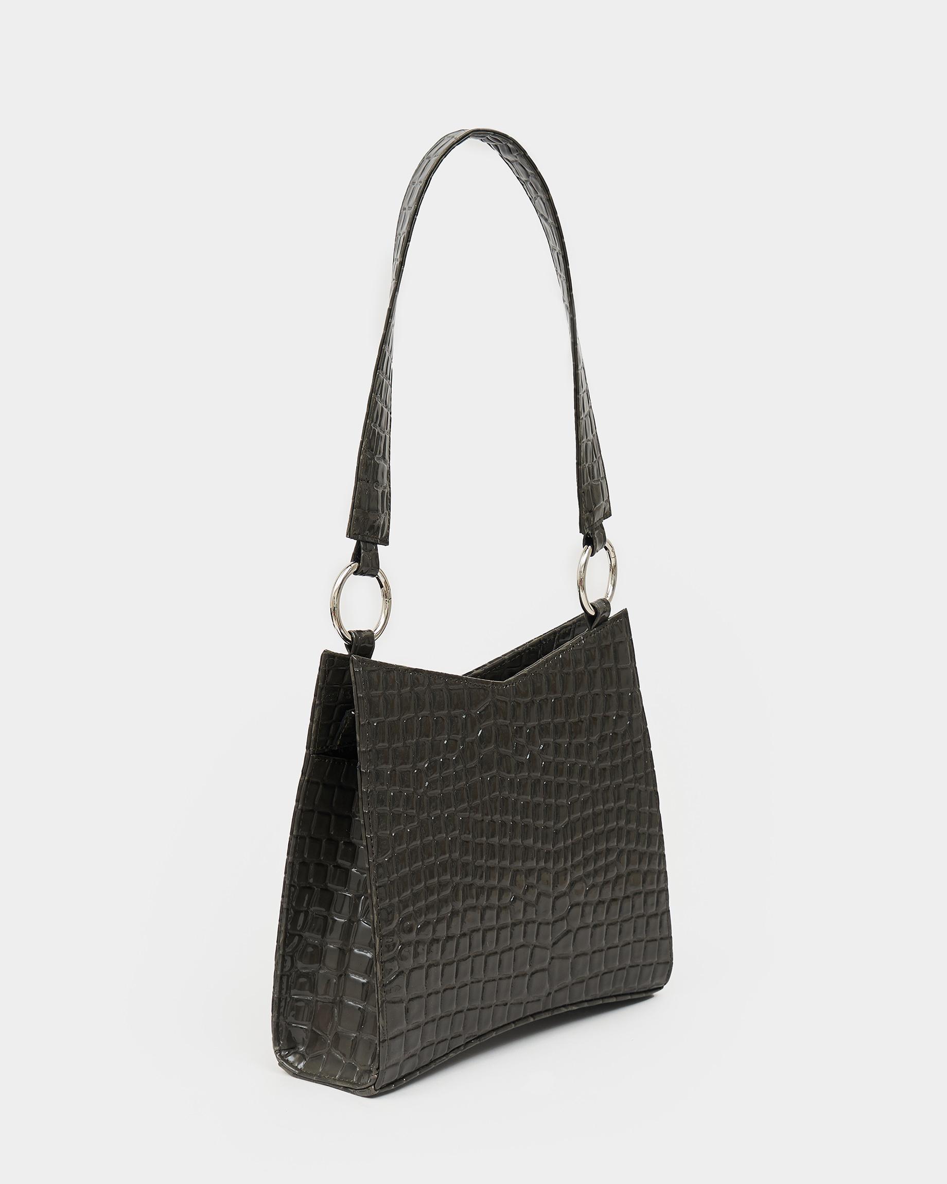 Универсальная каркасная сумка с ремнем через плечо в цвете серый крокодил