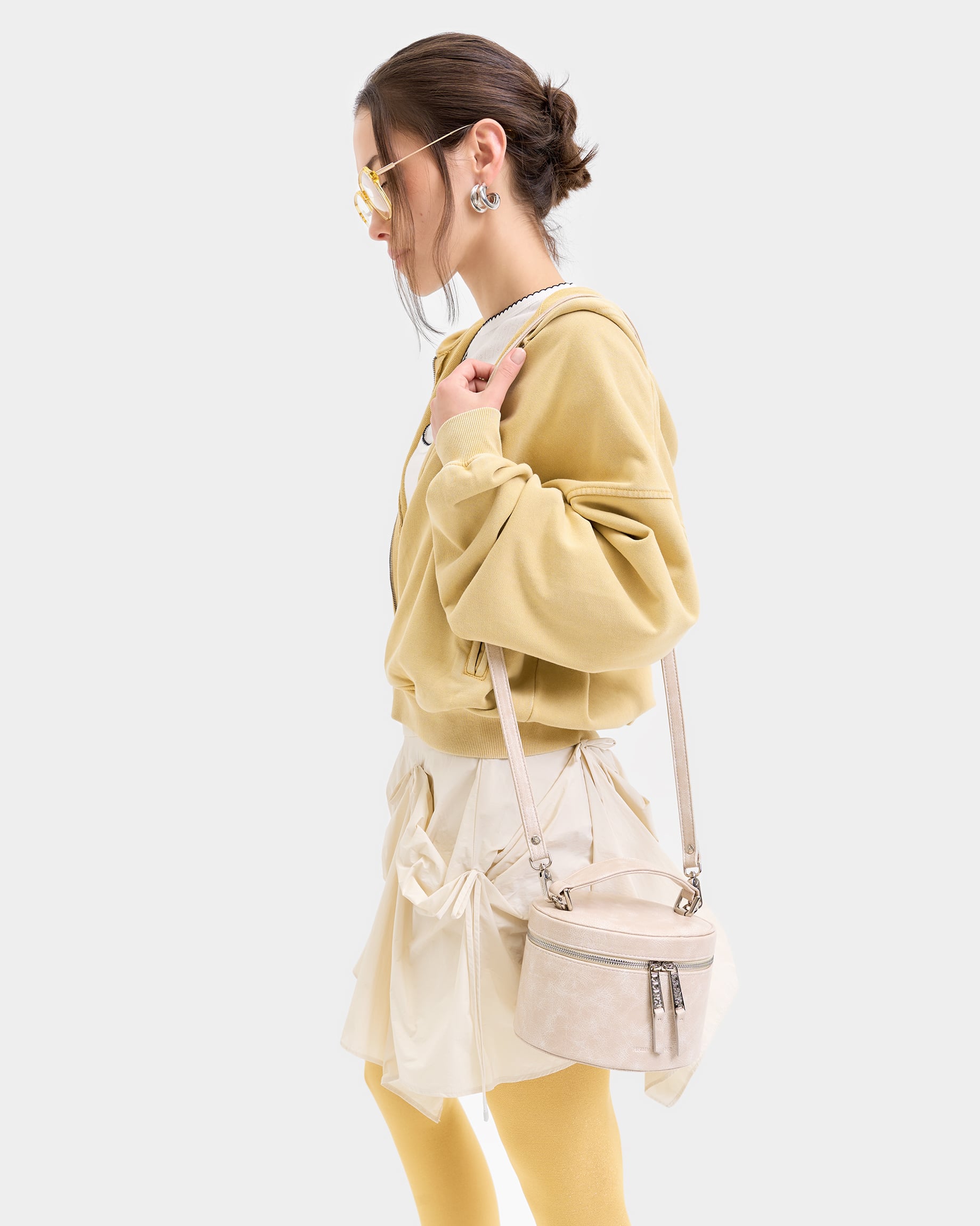 Каркасная сумка-косметичка небольшого размера в цвете кремовый кракле