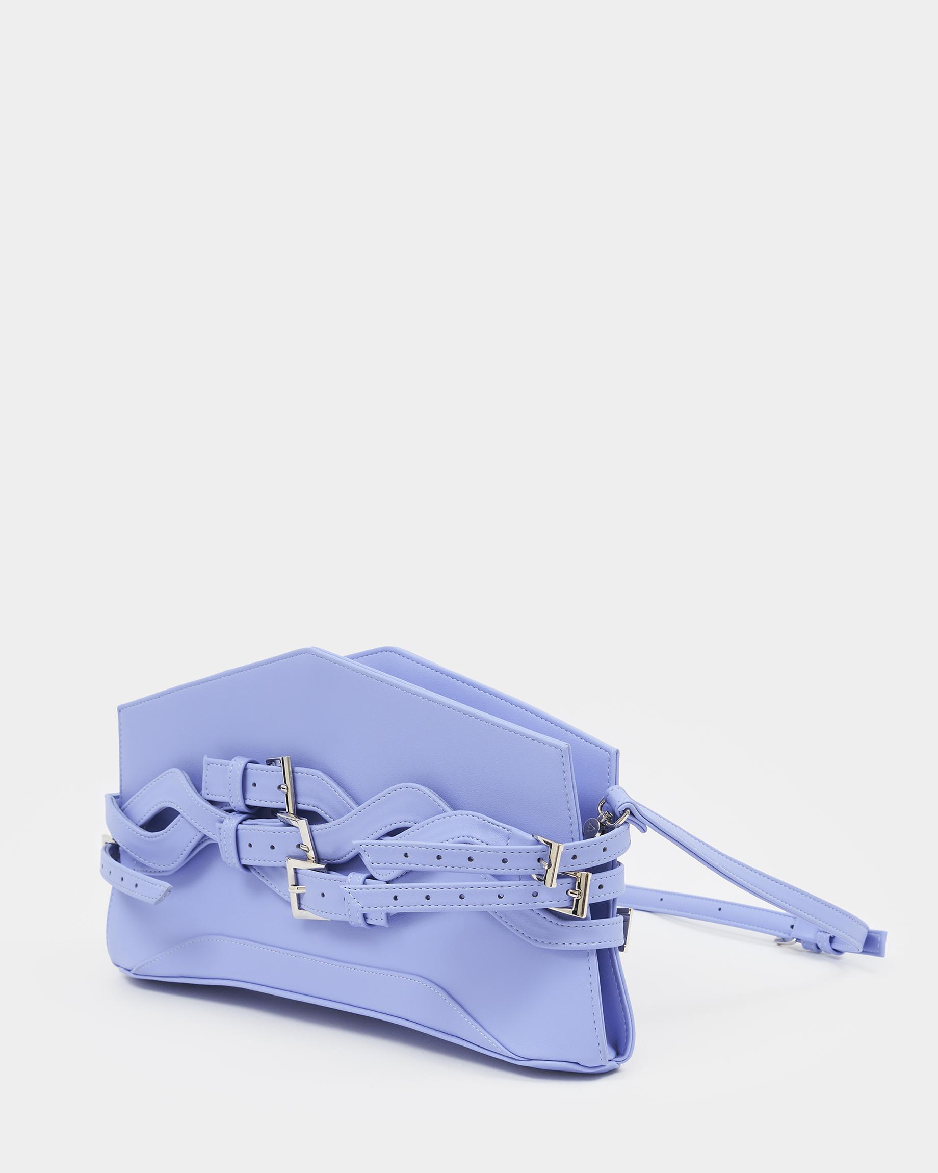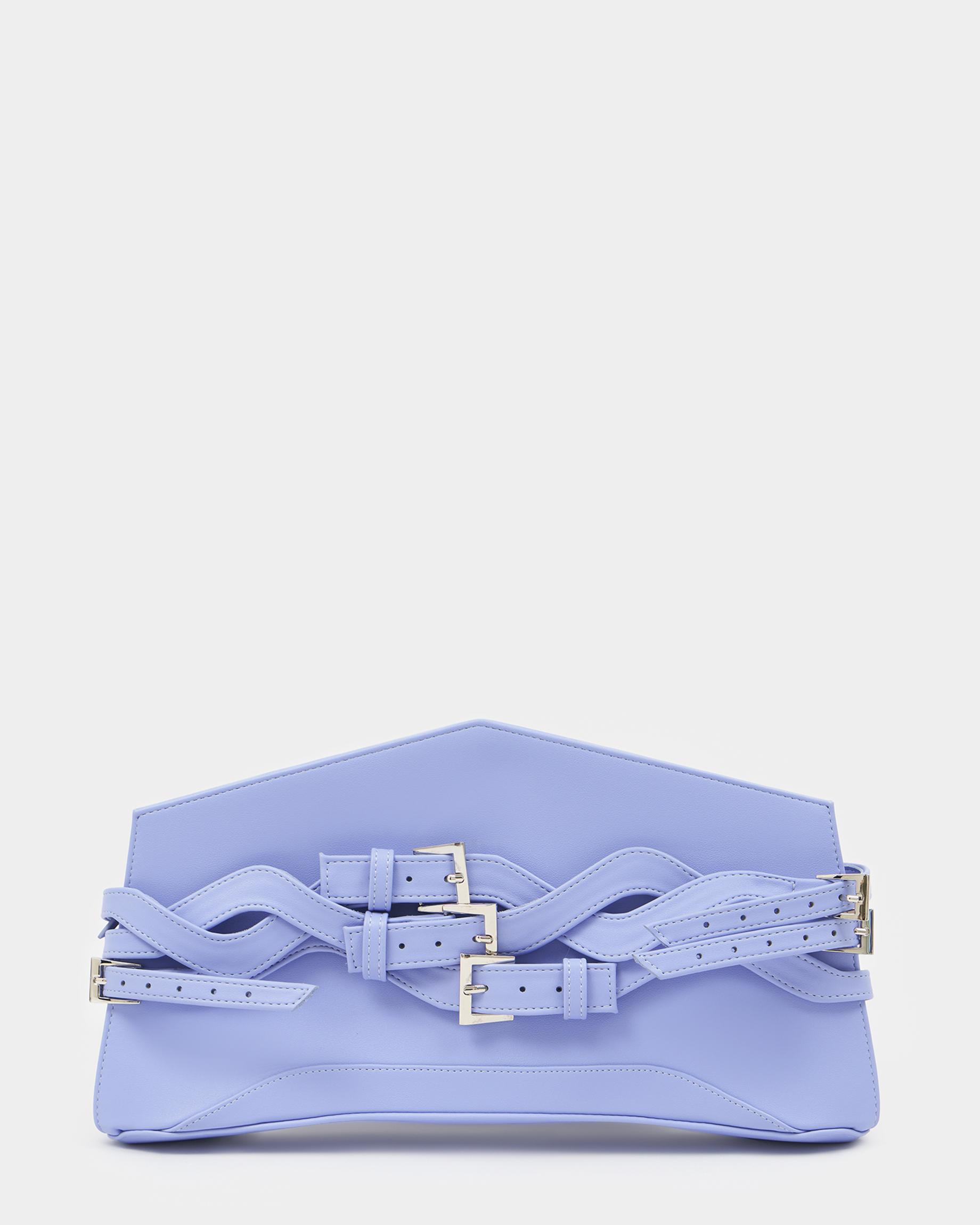 Сумка-клатч вытянутой формы с тонким ремнем и декоративными ремешками на корпусе