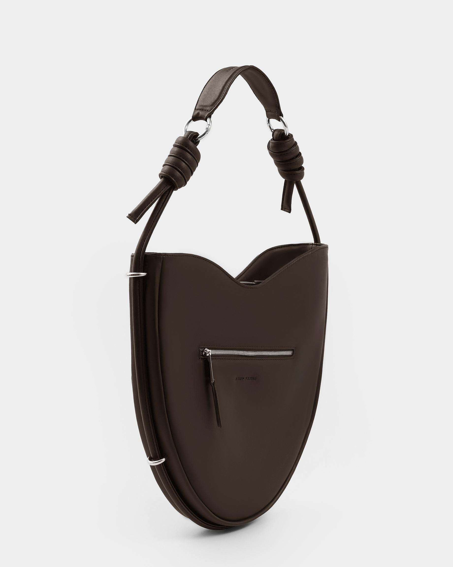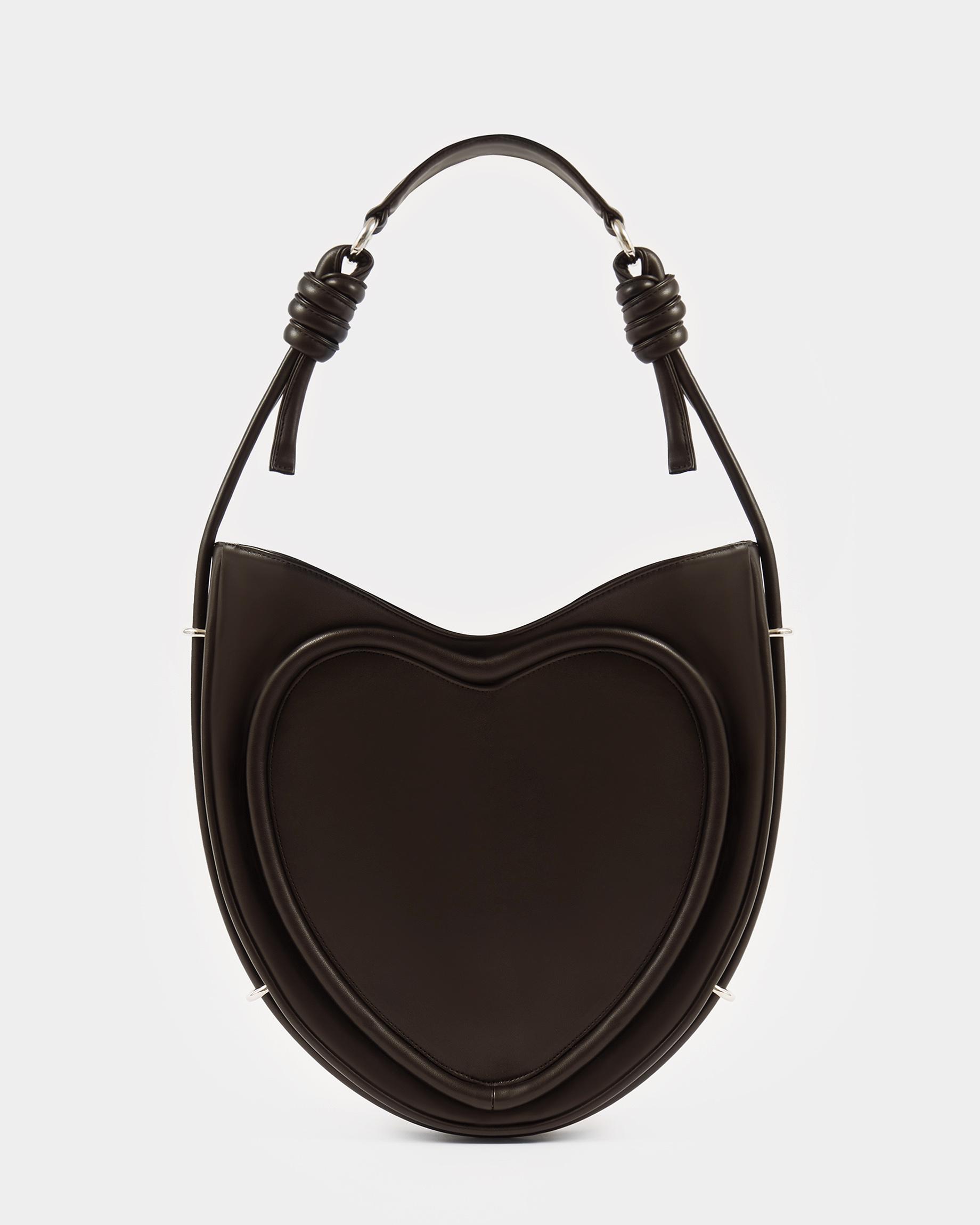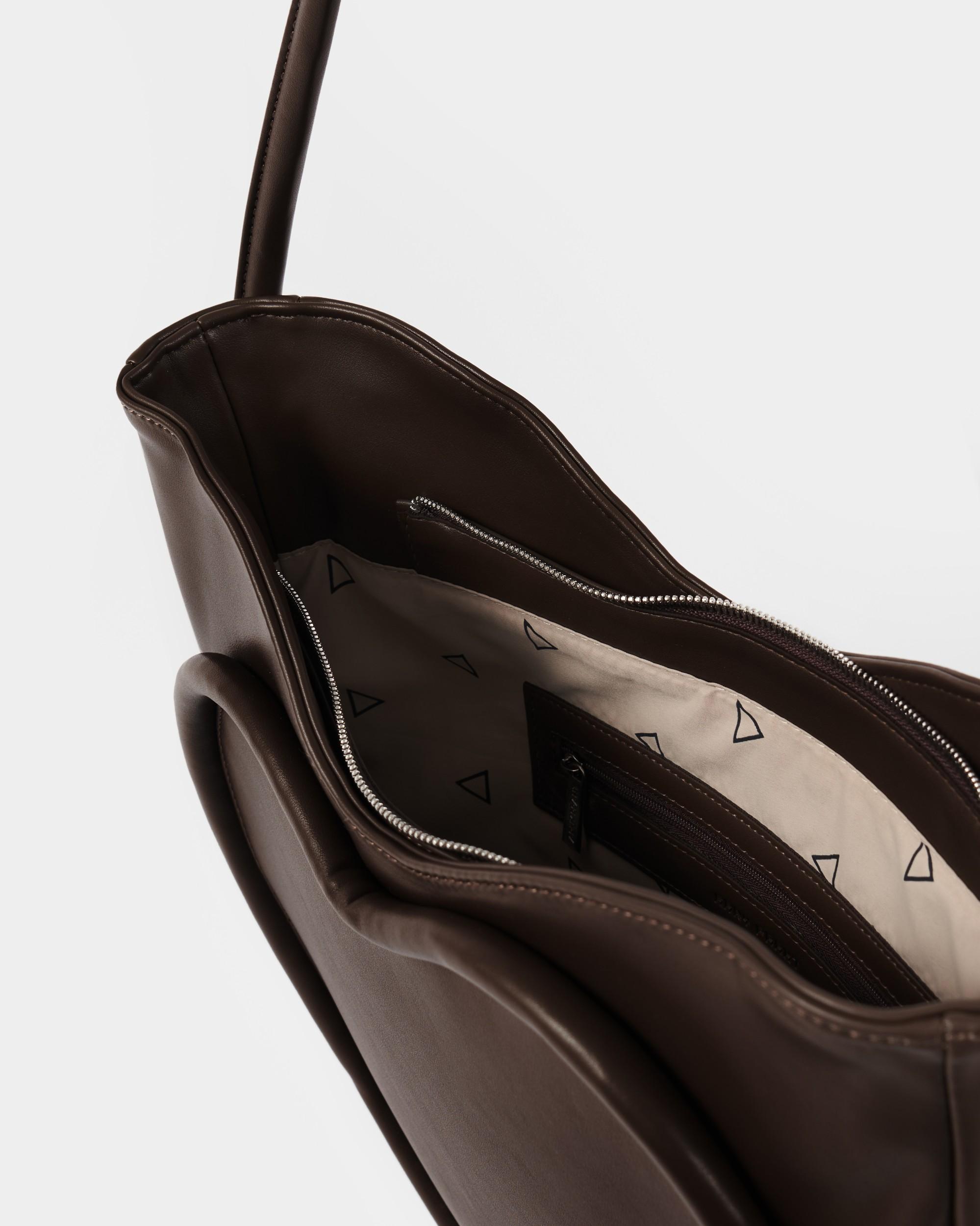 Ассиметричная сумка в форме сердца c объемным кантом и ремнем в виде жгута в цвете горький шоколад
