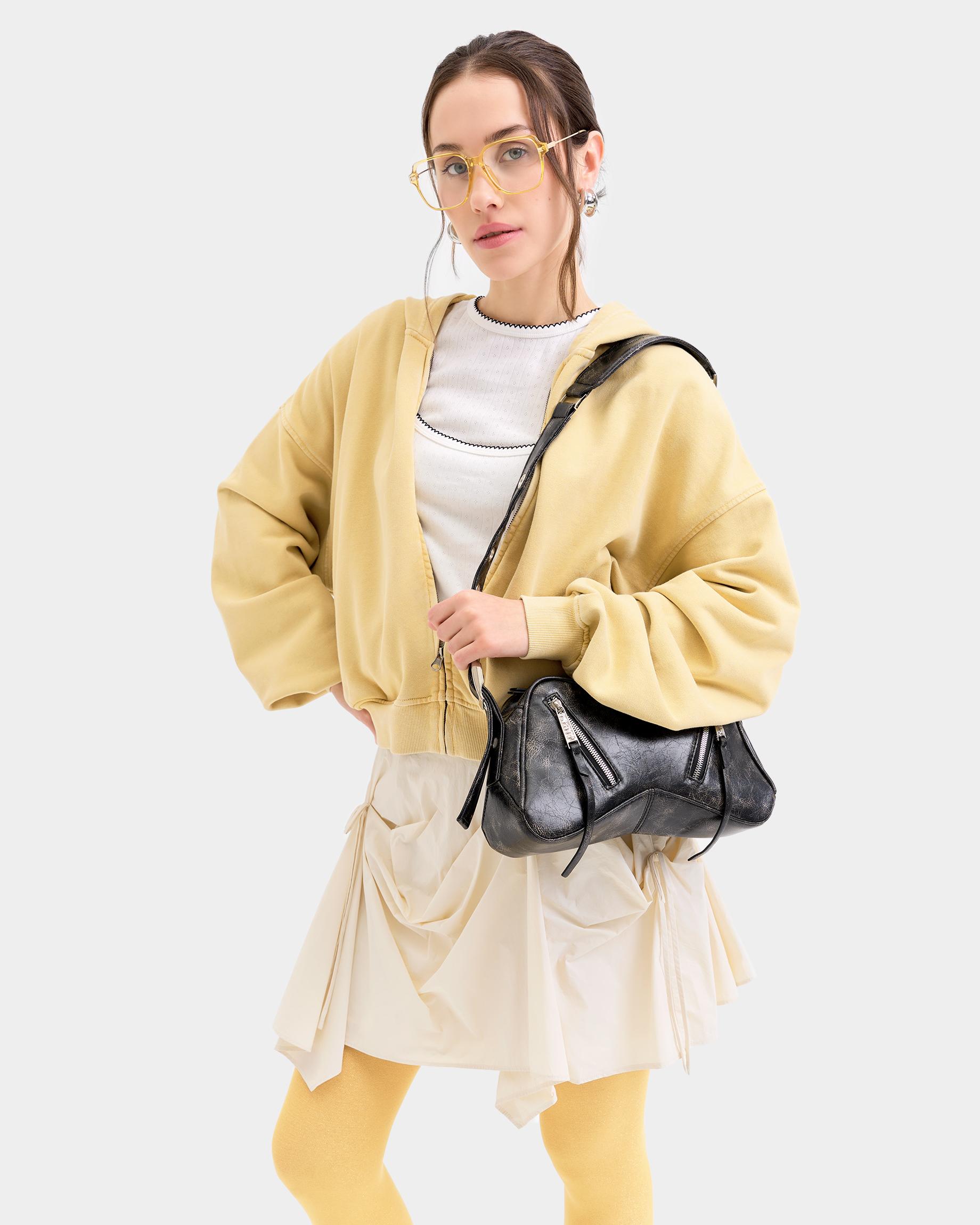 Лира, здравствуйте! Ремень на сумке регулируется по длине, его можно укоротить или удлинить, чтобы носить сумку на плече или кросс-боди.