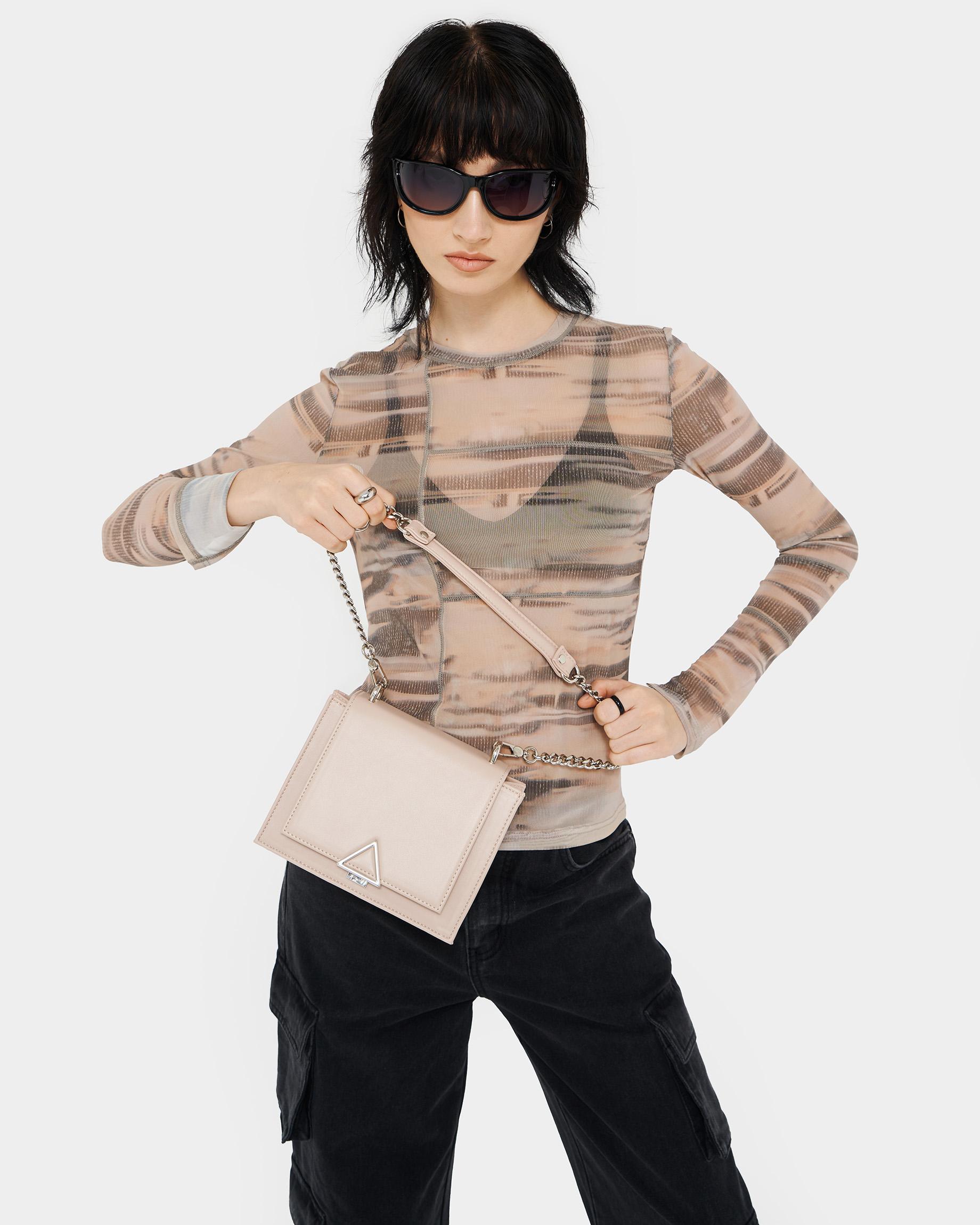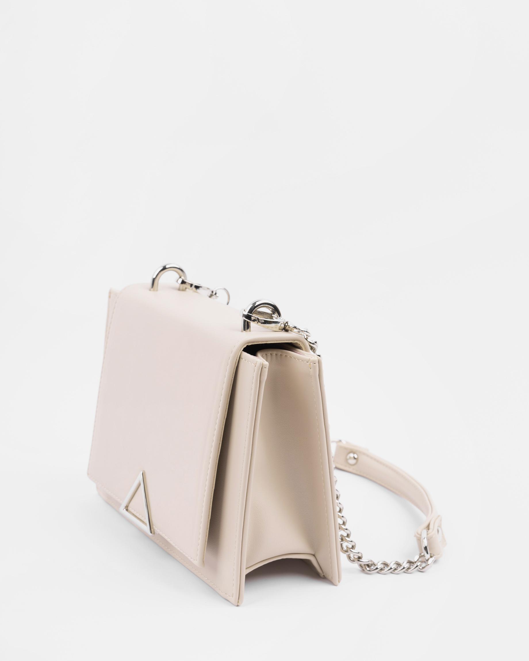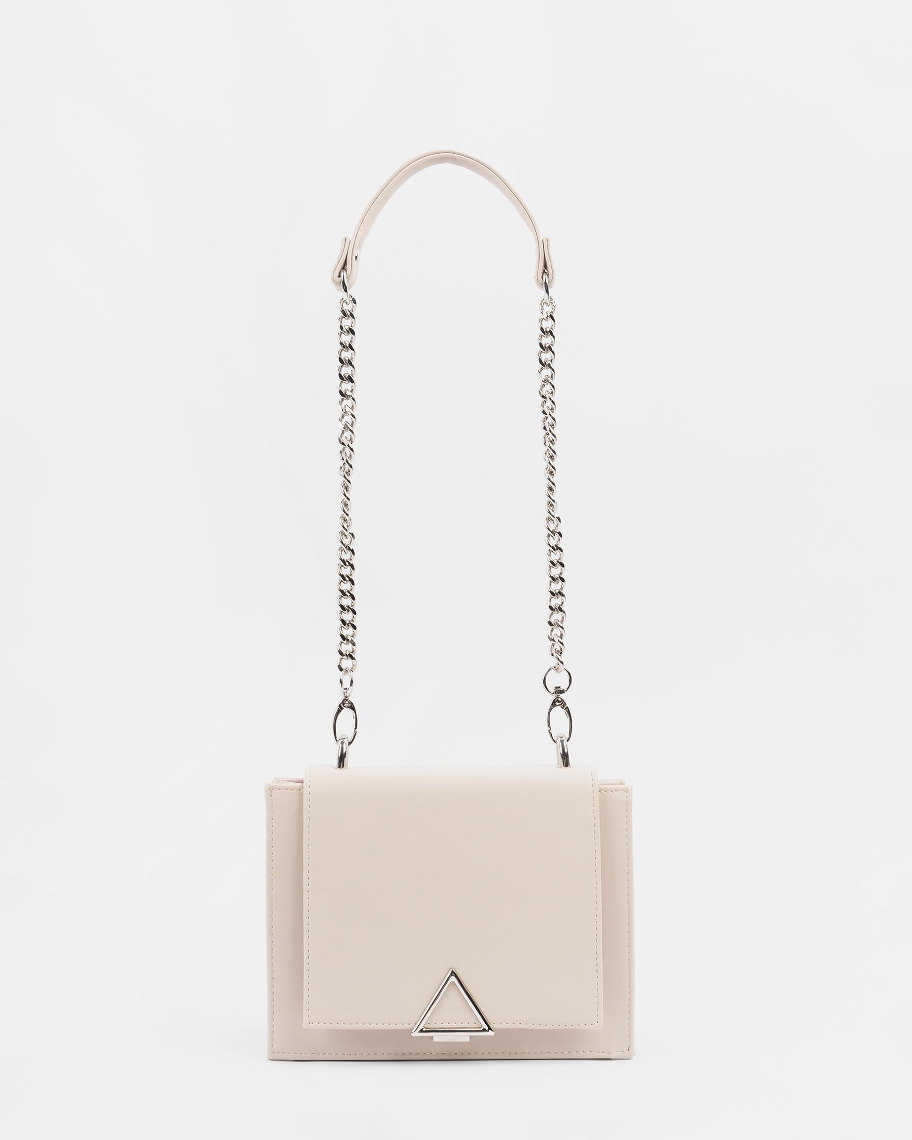 Женская прямоугольная каркасная сумка с ремнем-цепочкой в цвете нюд