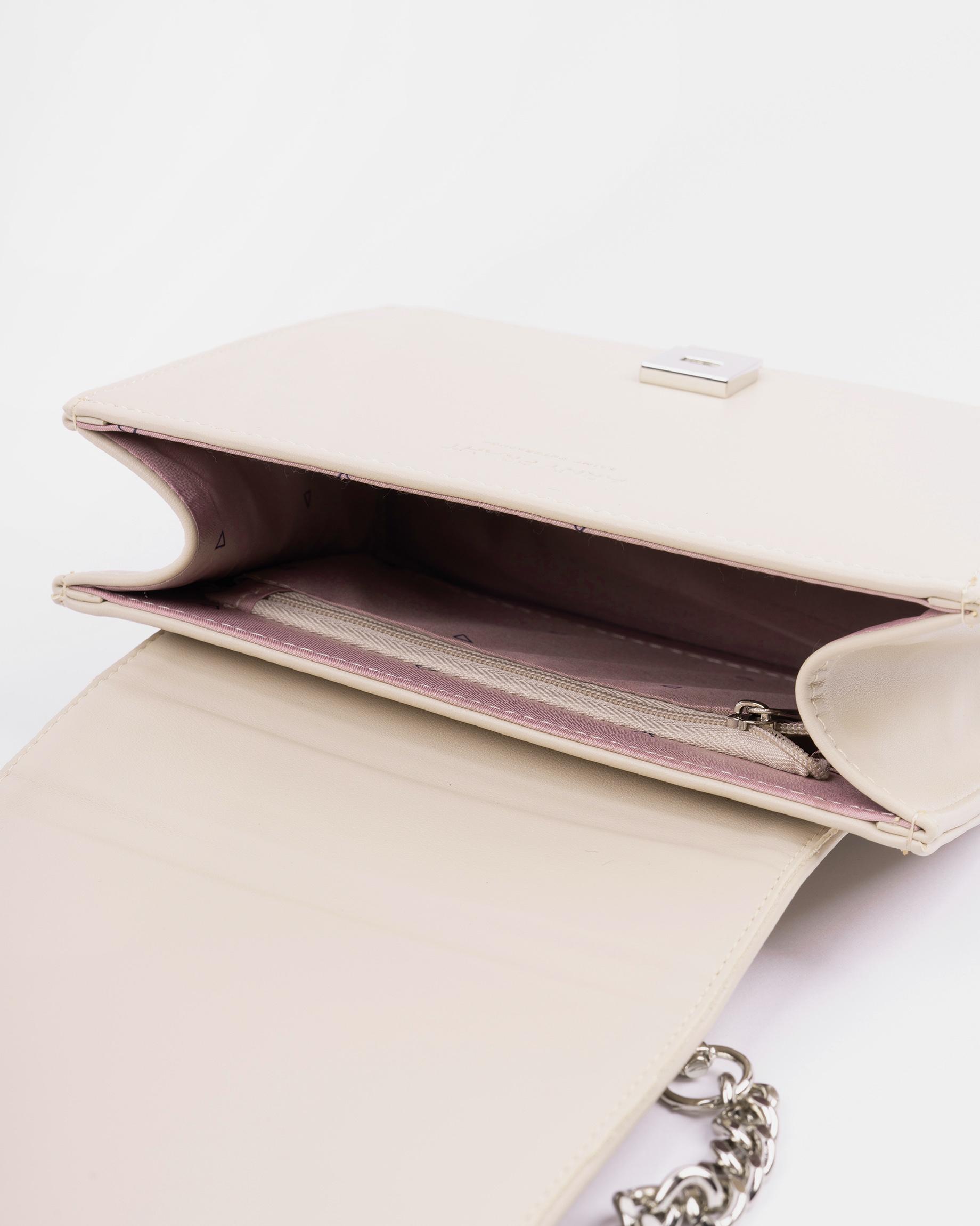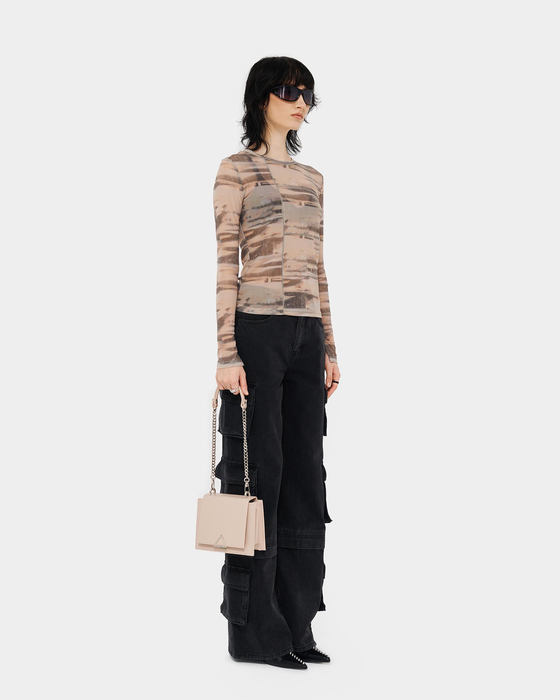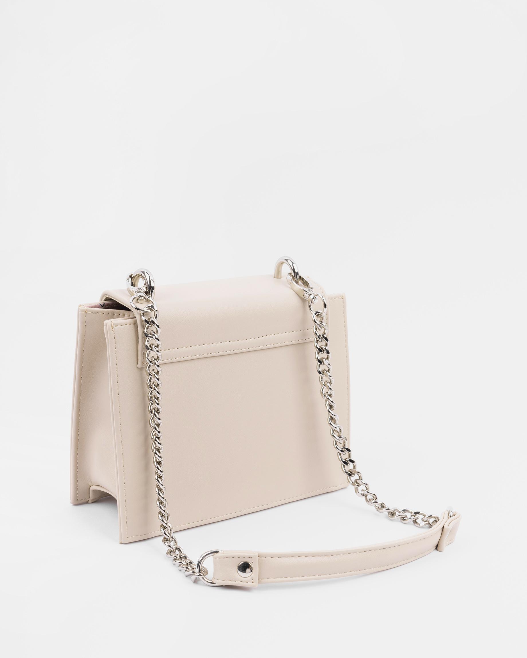 Женская прямоугольная каркасная сумка с ремнем-цепочкой в цвете нюд