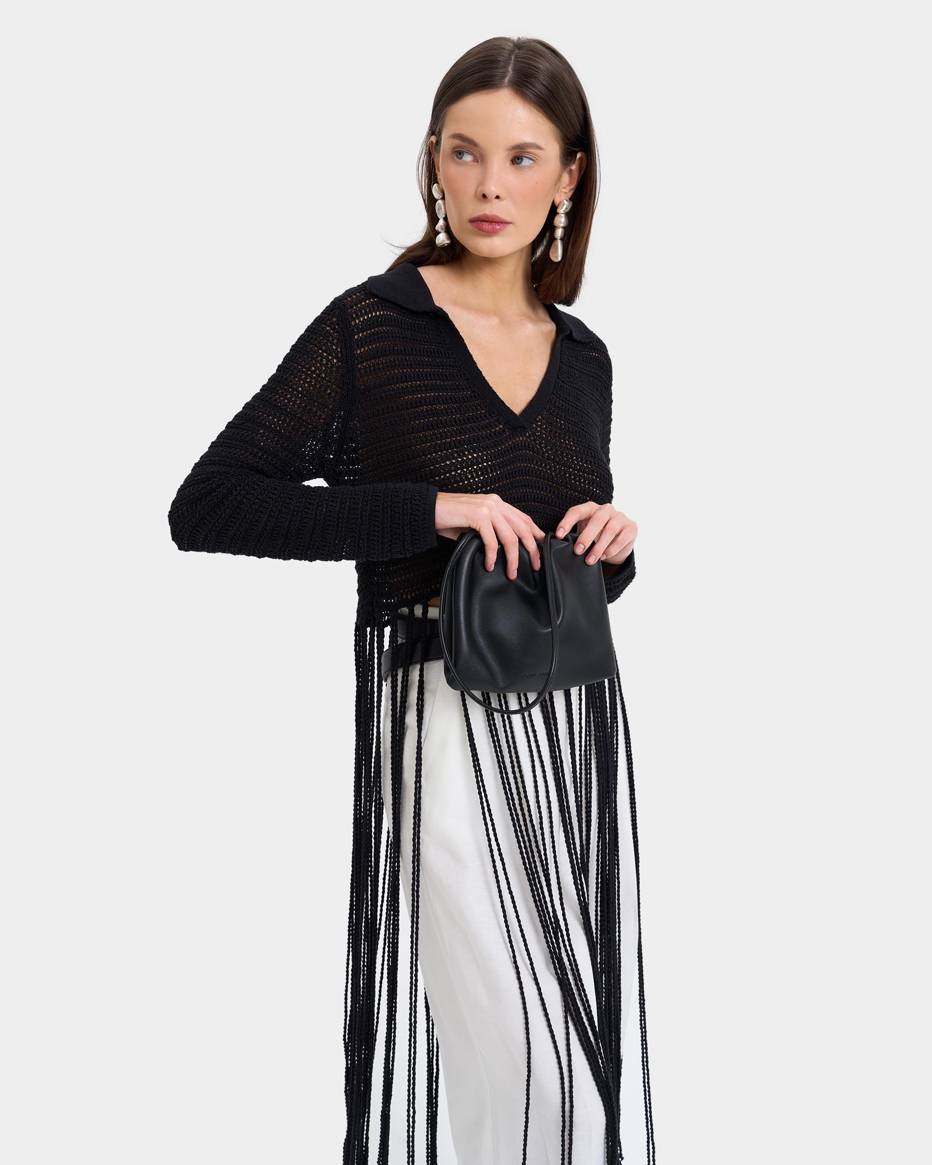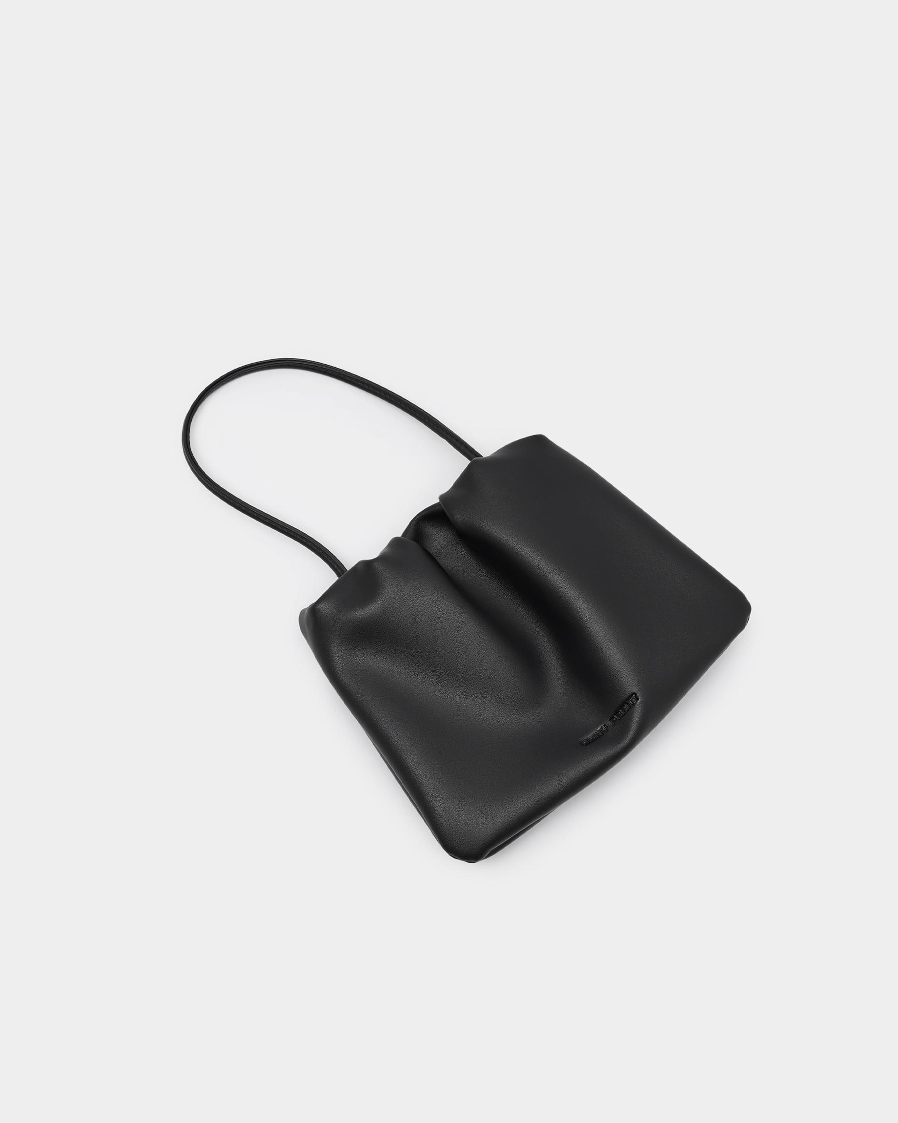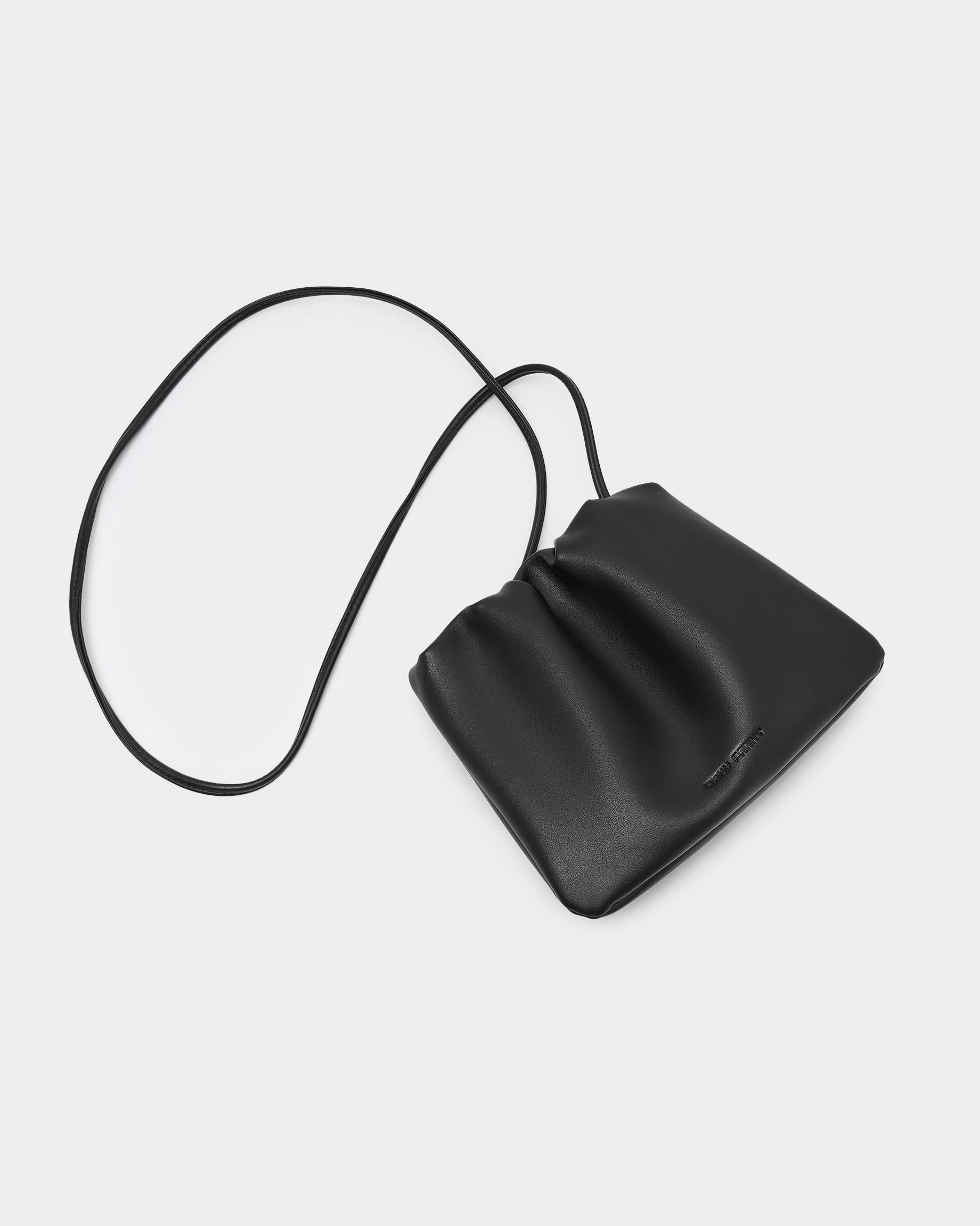 Небольшая мягкая сумка-кисет из экокожи в черном цвете