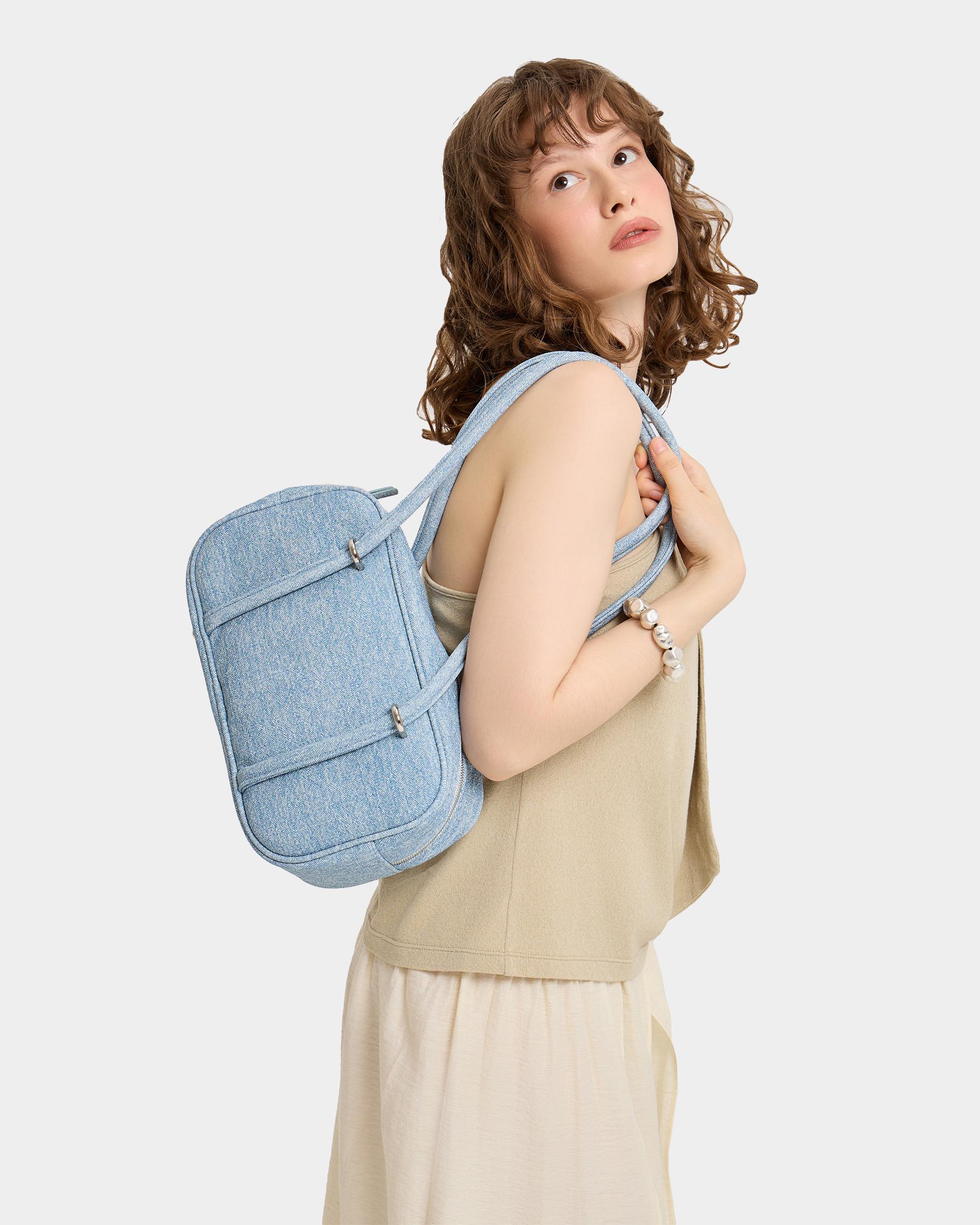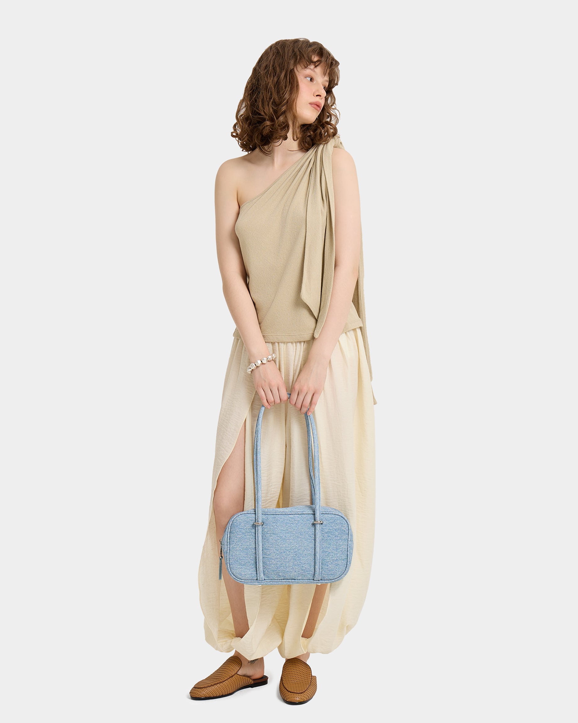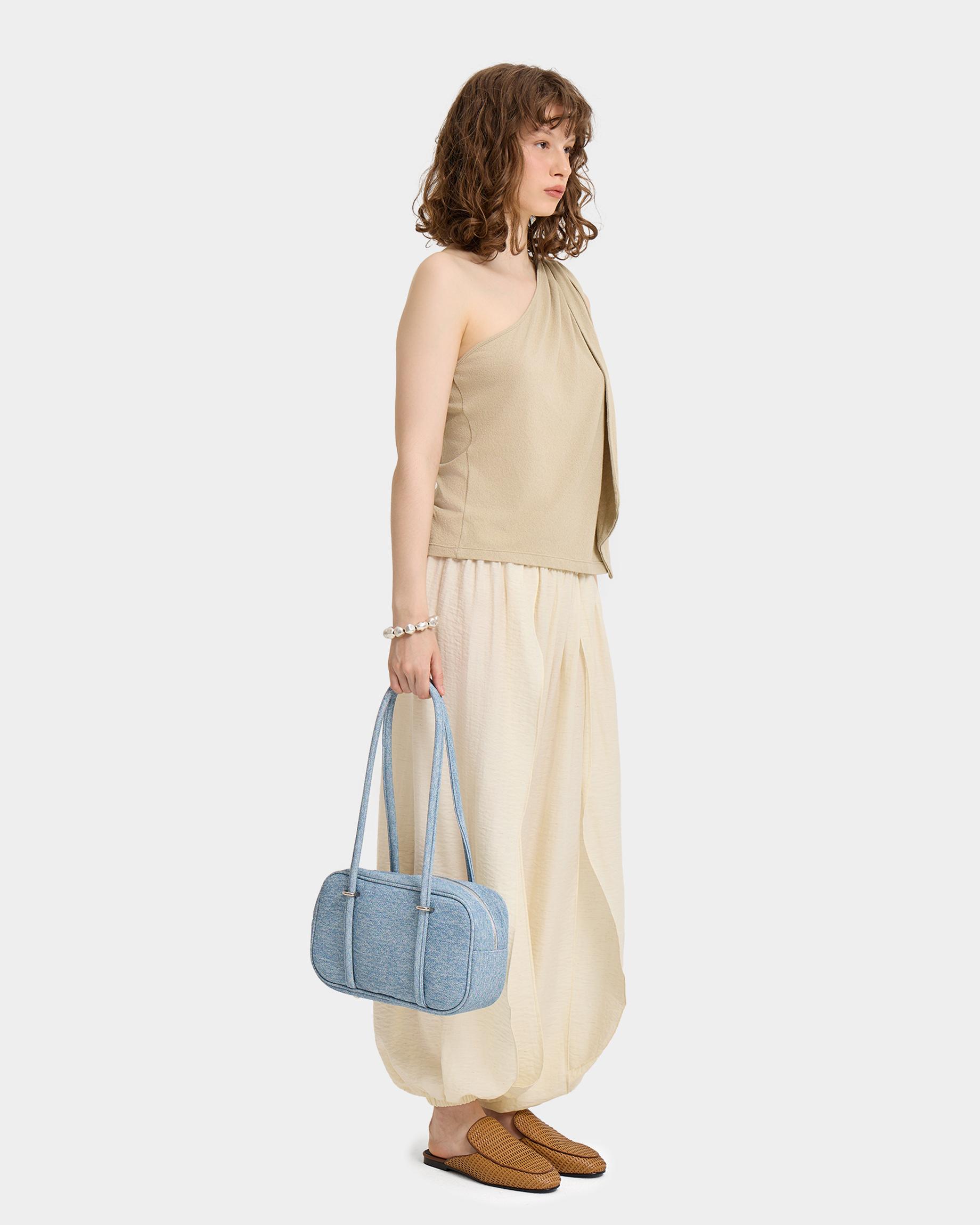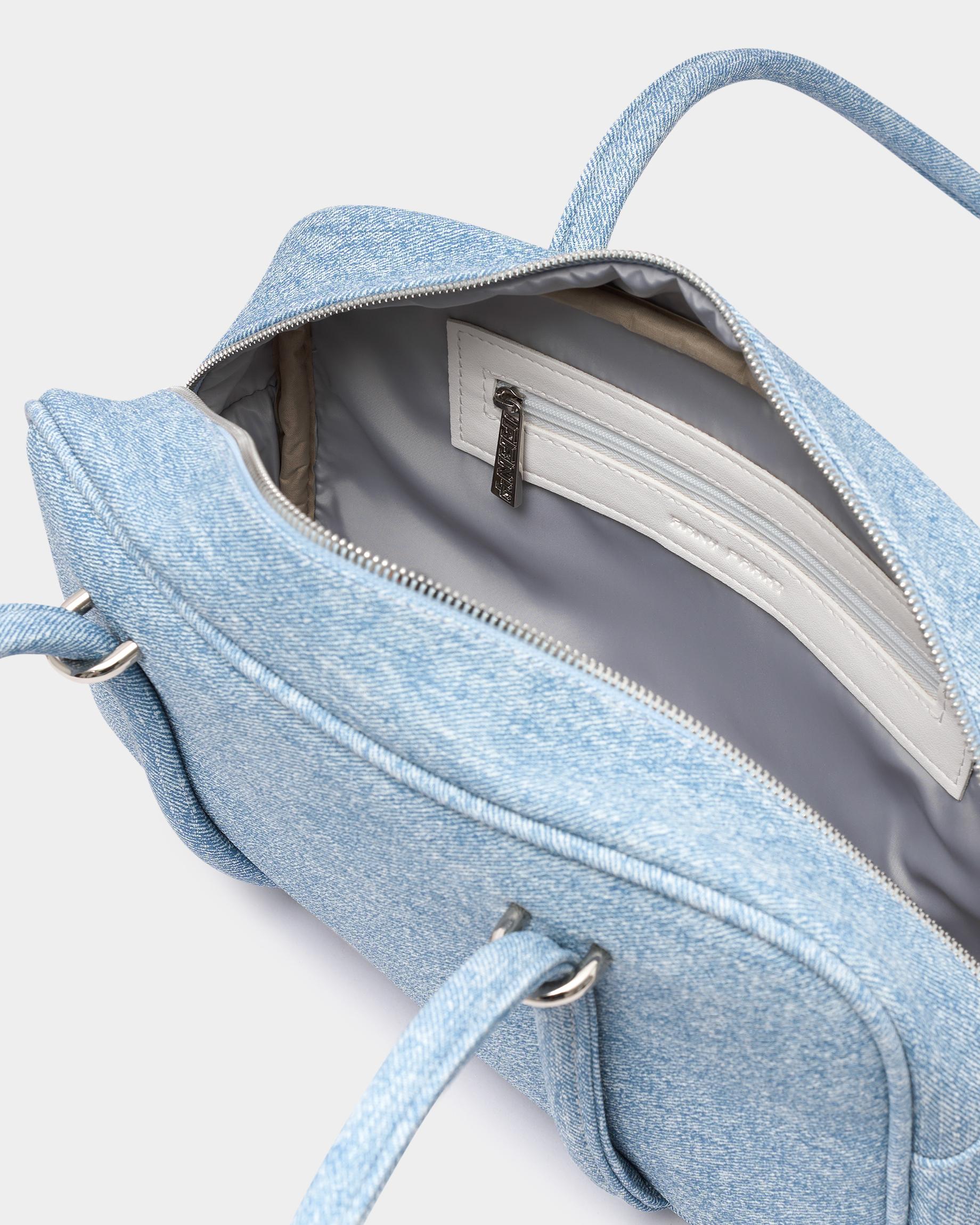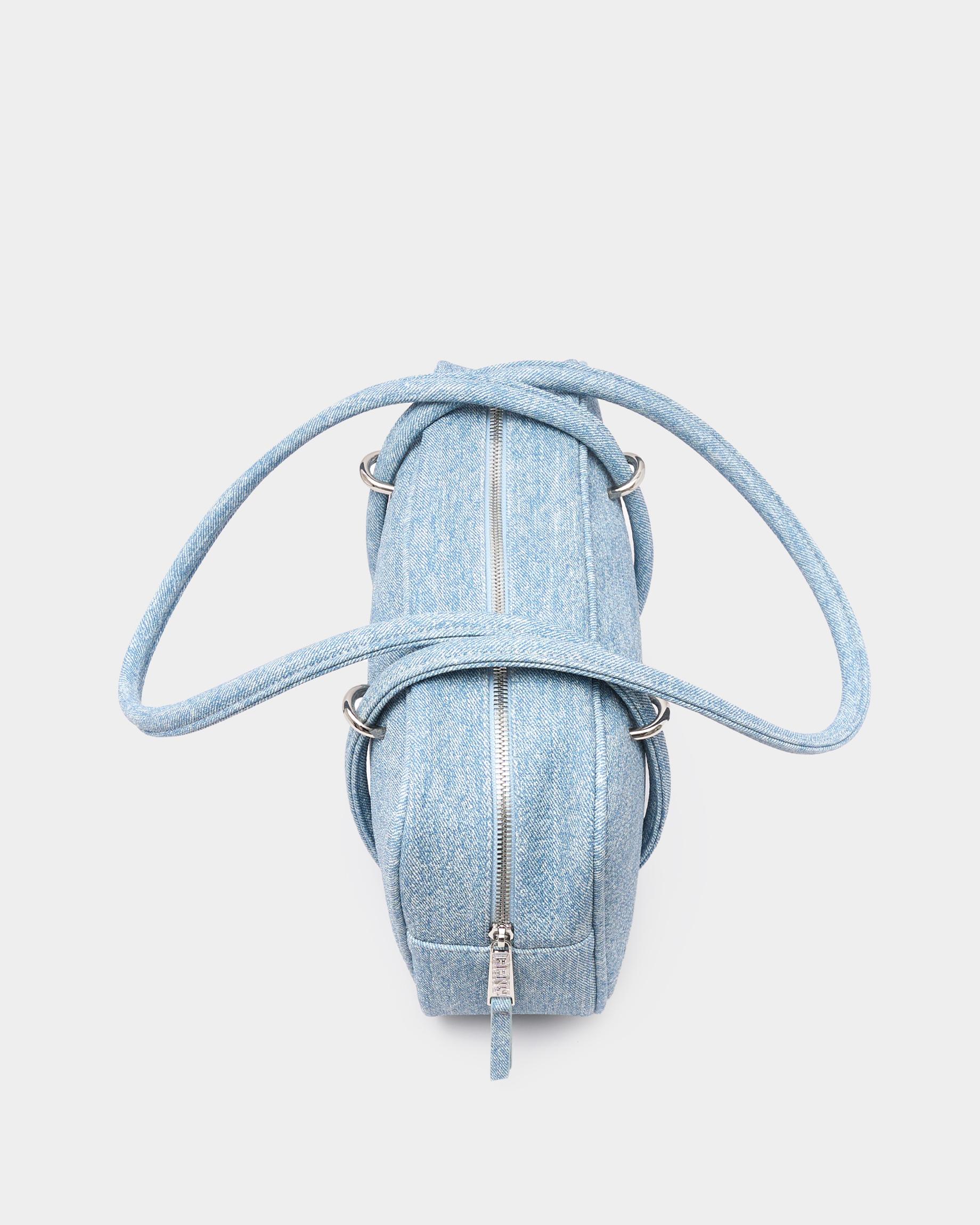 Небольшая сумка-боулер цвета голубой деним с фиксированными ручками