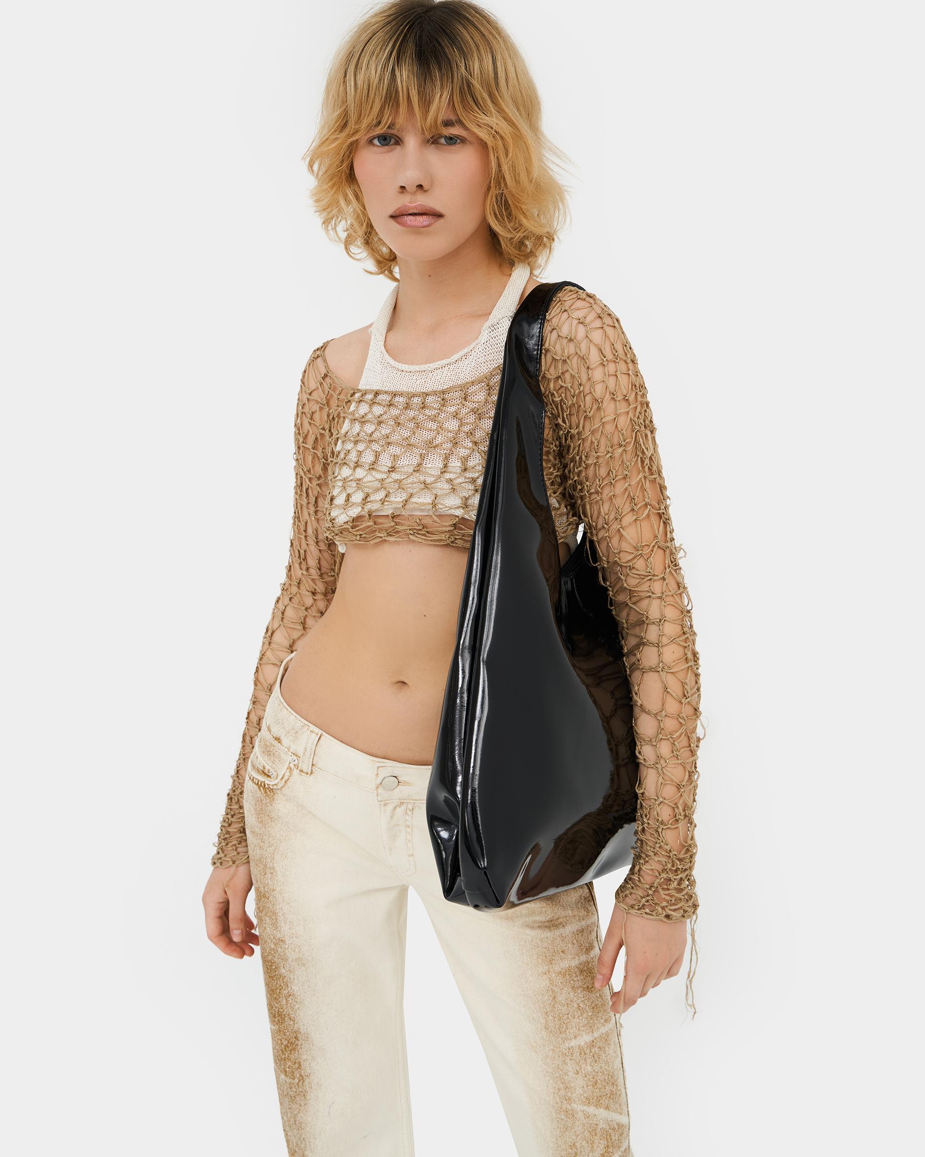 Мягкая женская сумка-шоппер среднего размера из лаковой экокожи