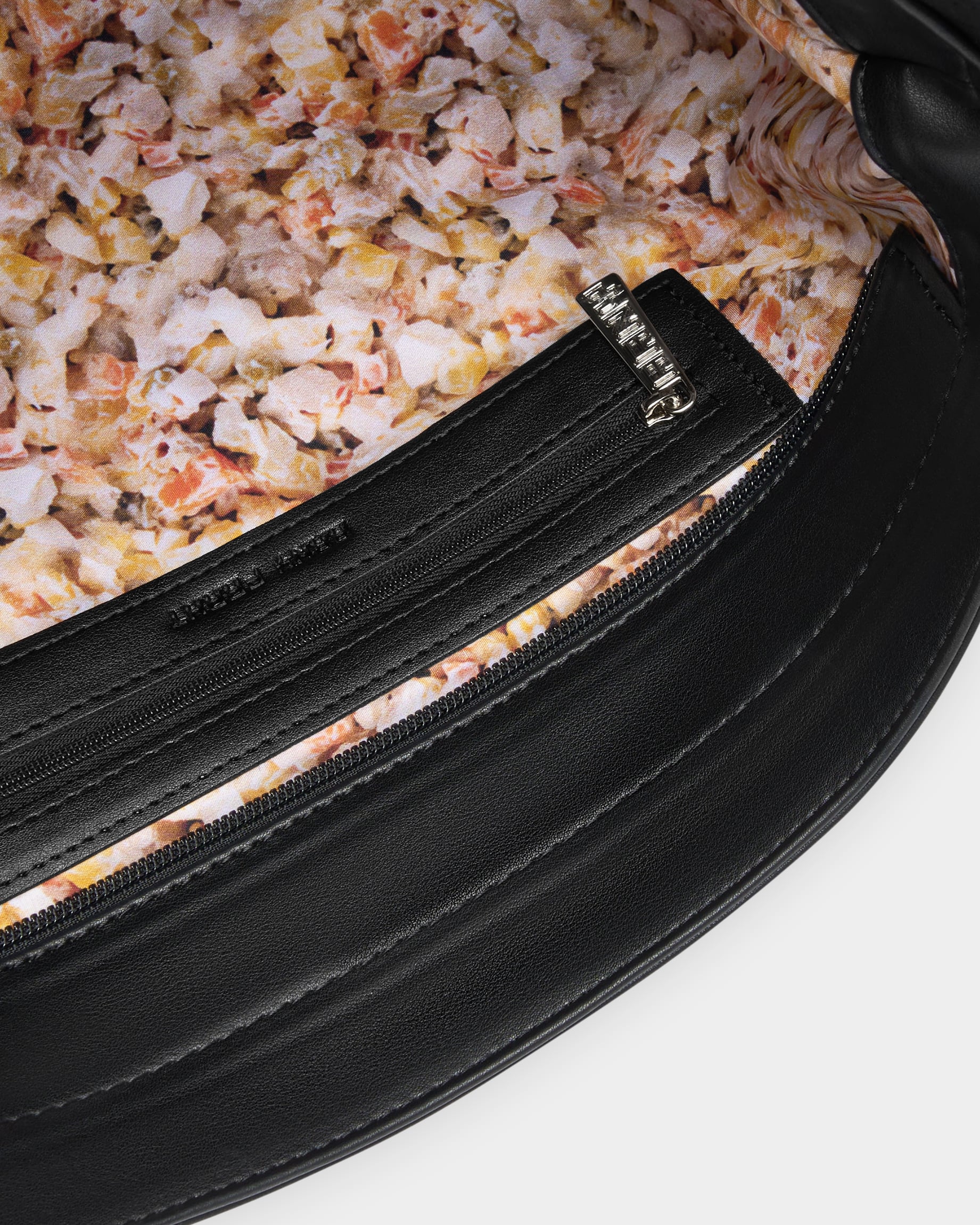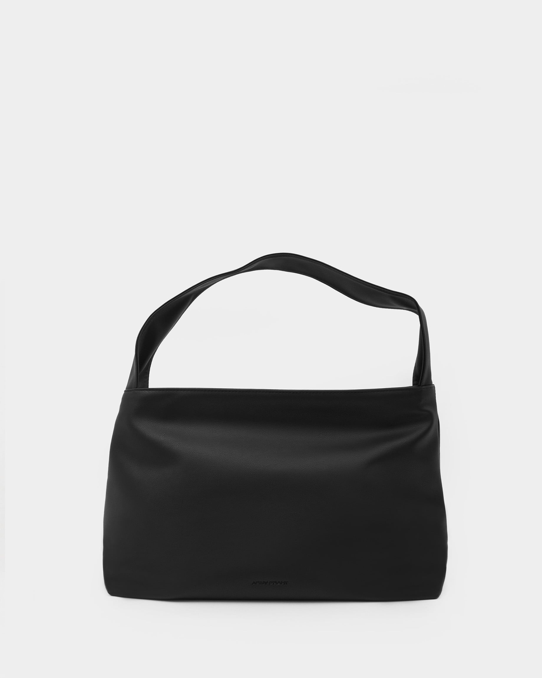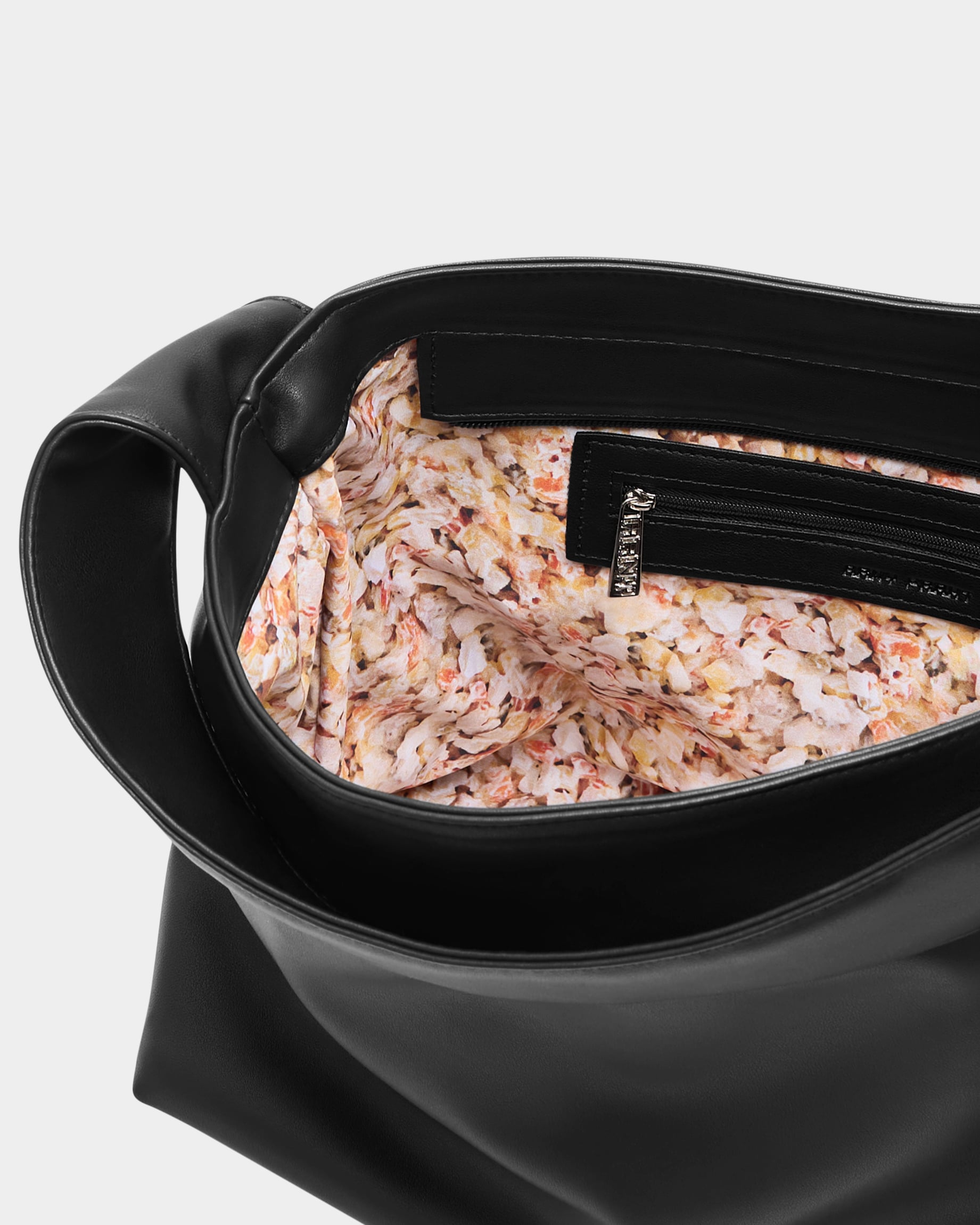 Вместительная прямоугольная женская сумка-мешок черного цвета с цветным подкладом