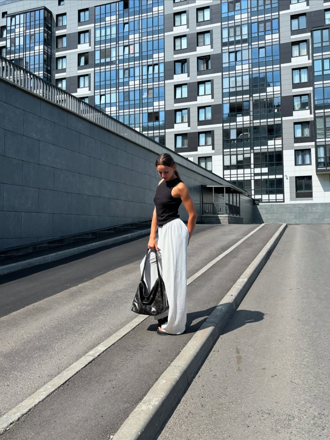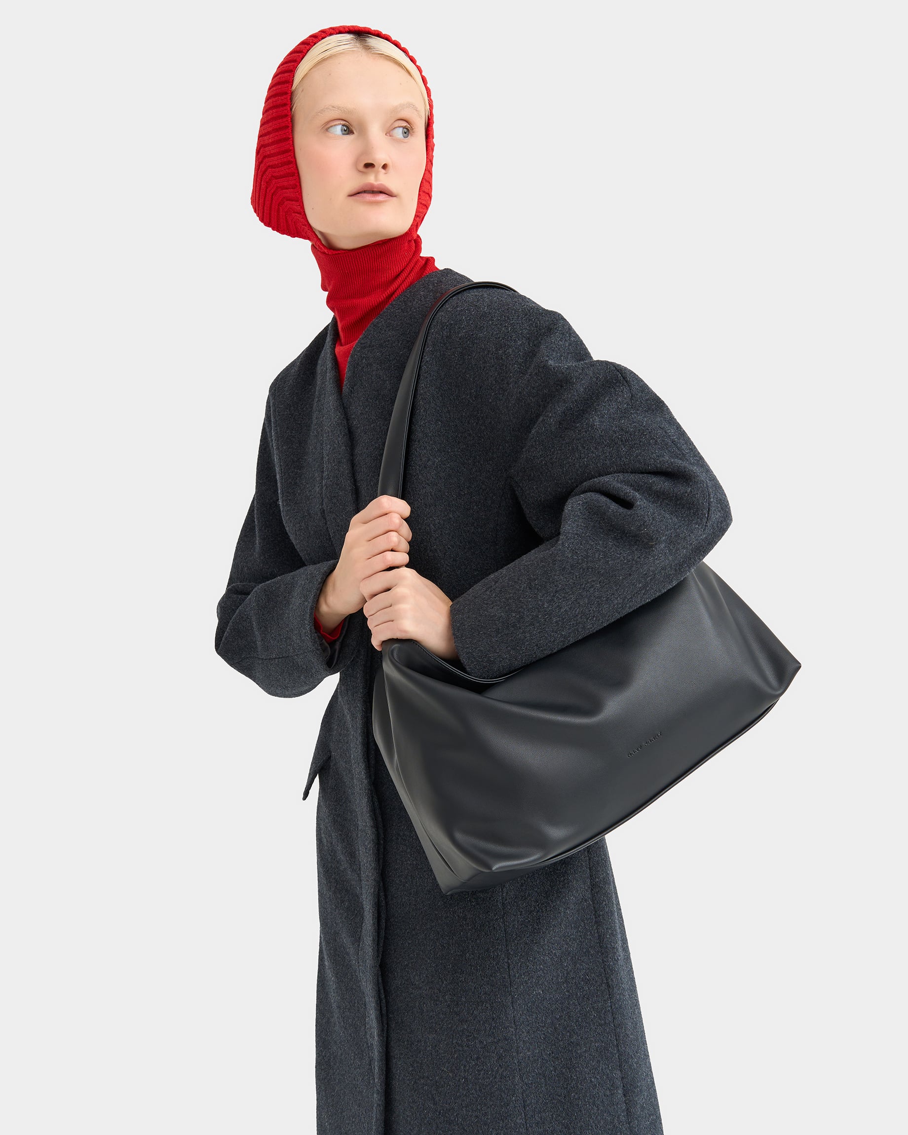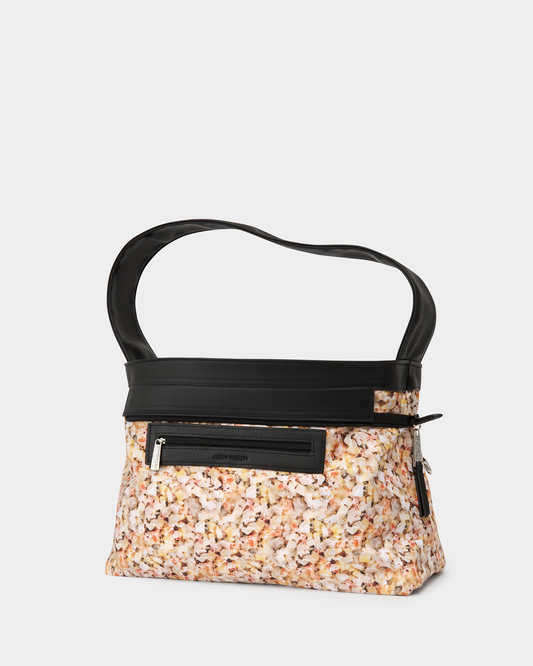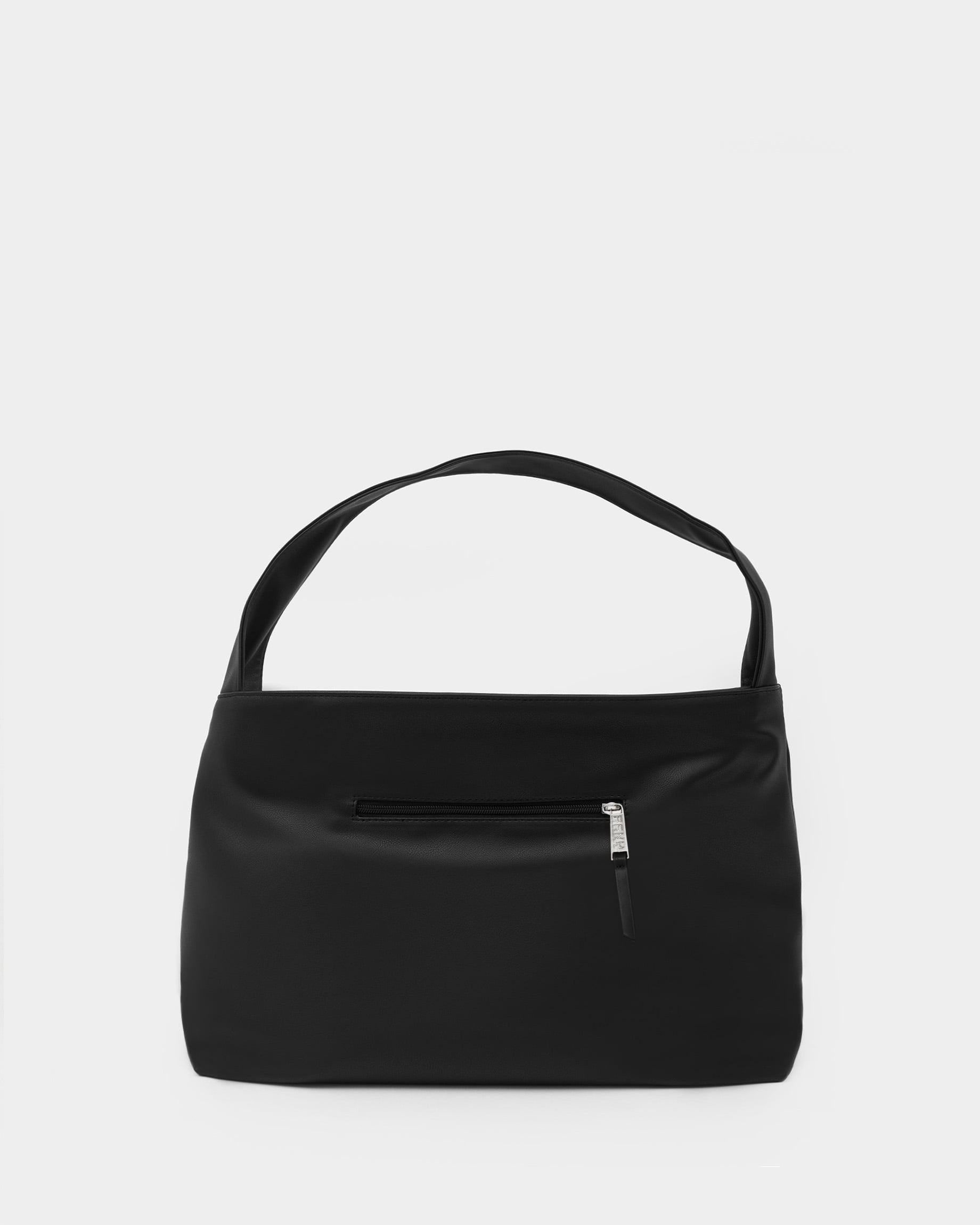 Вместительная прямоугольная женская сумка-мешок черного цвета с цветным подкладом