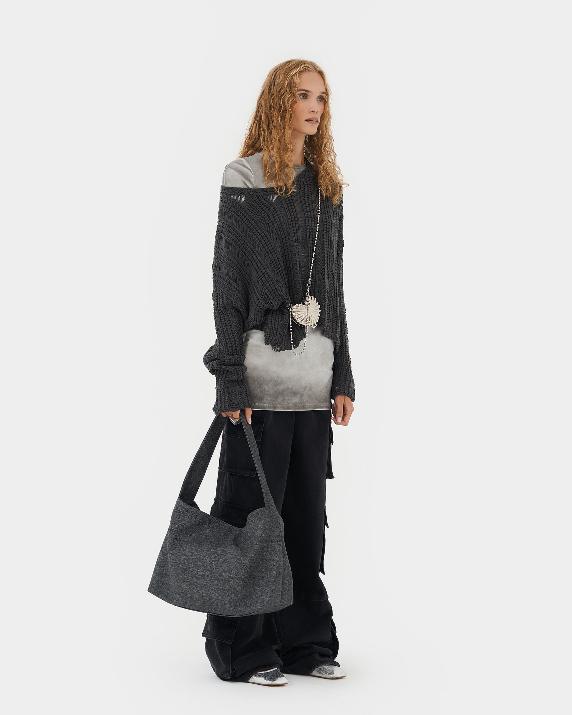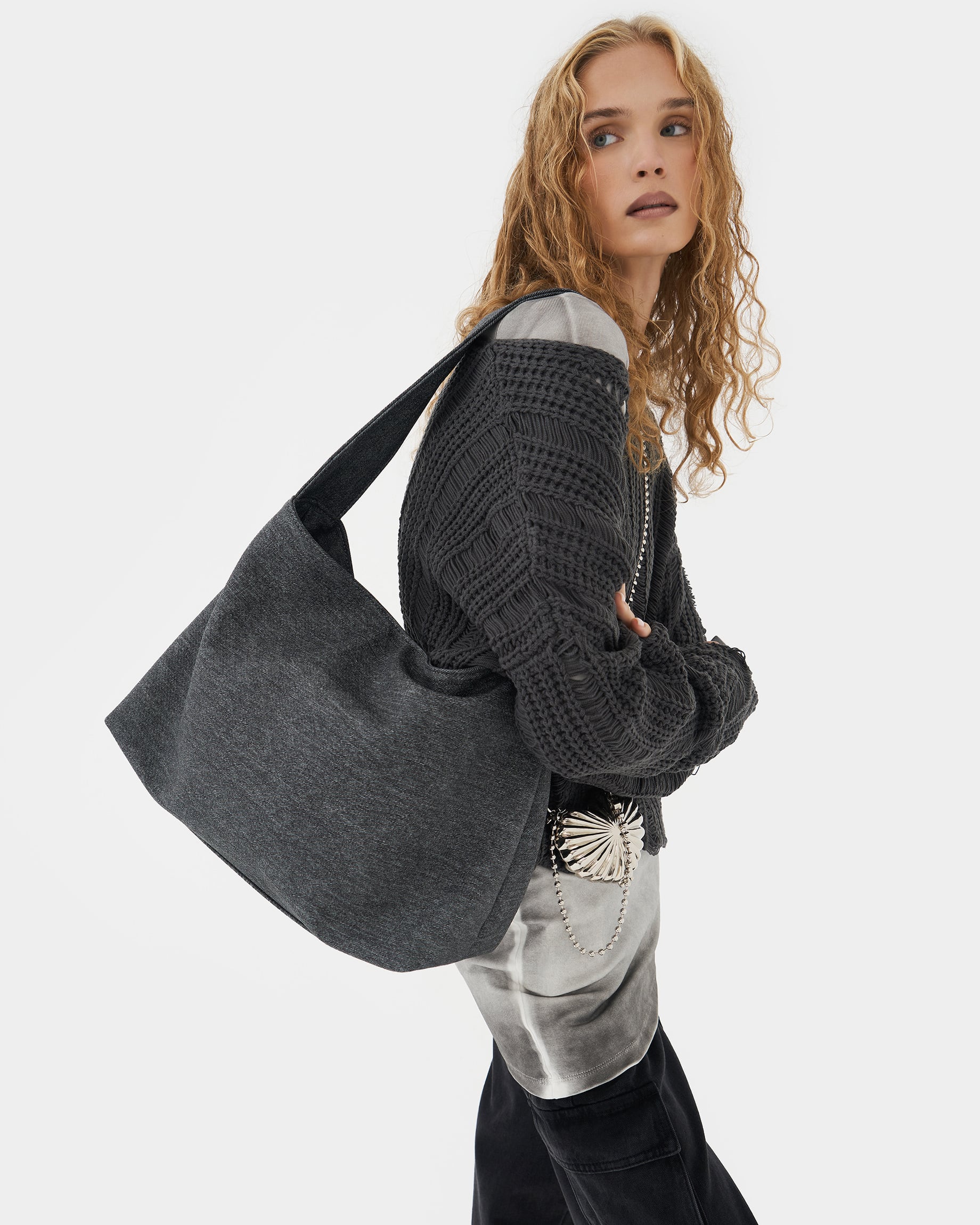 Вместительная прямоугольная женская сумка-мешок цвета деним графит Move S