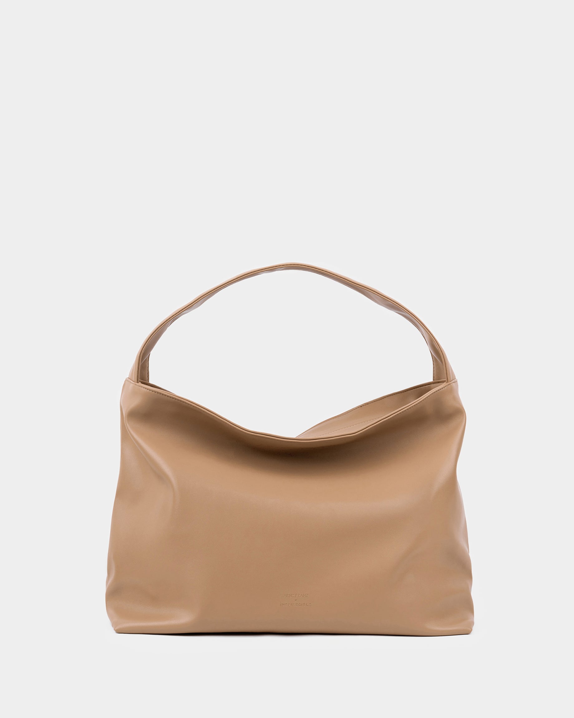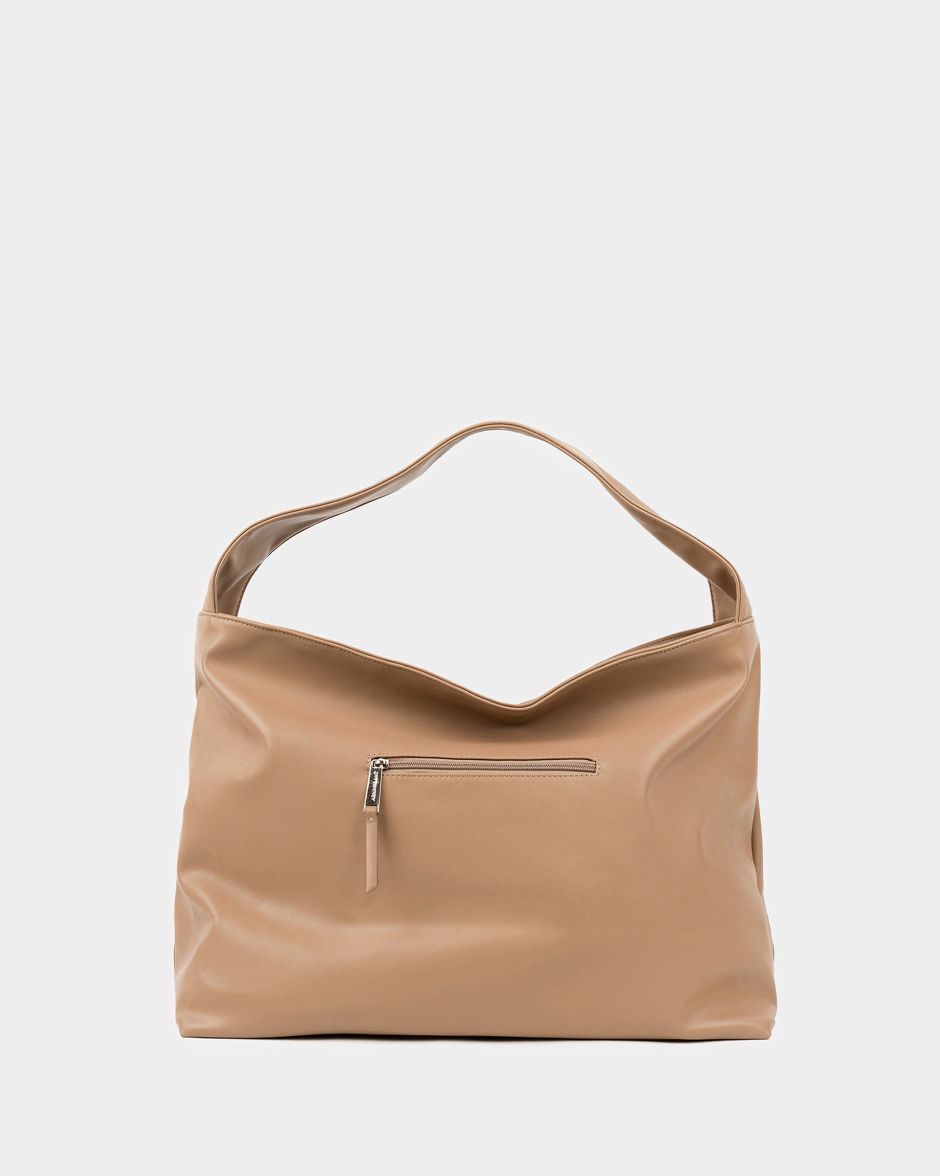 Вместительная прямоугольная женская сумка-мешок в цвете капучино