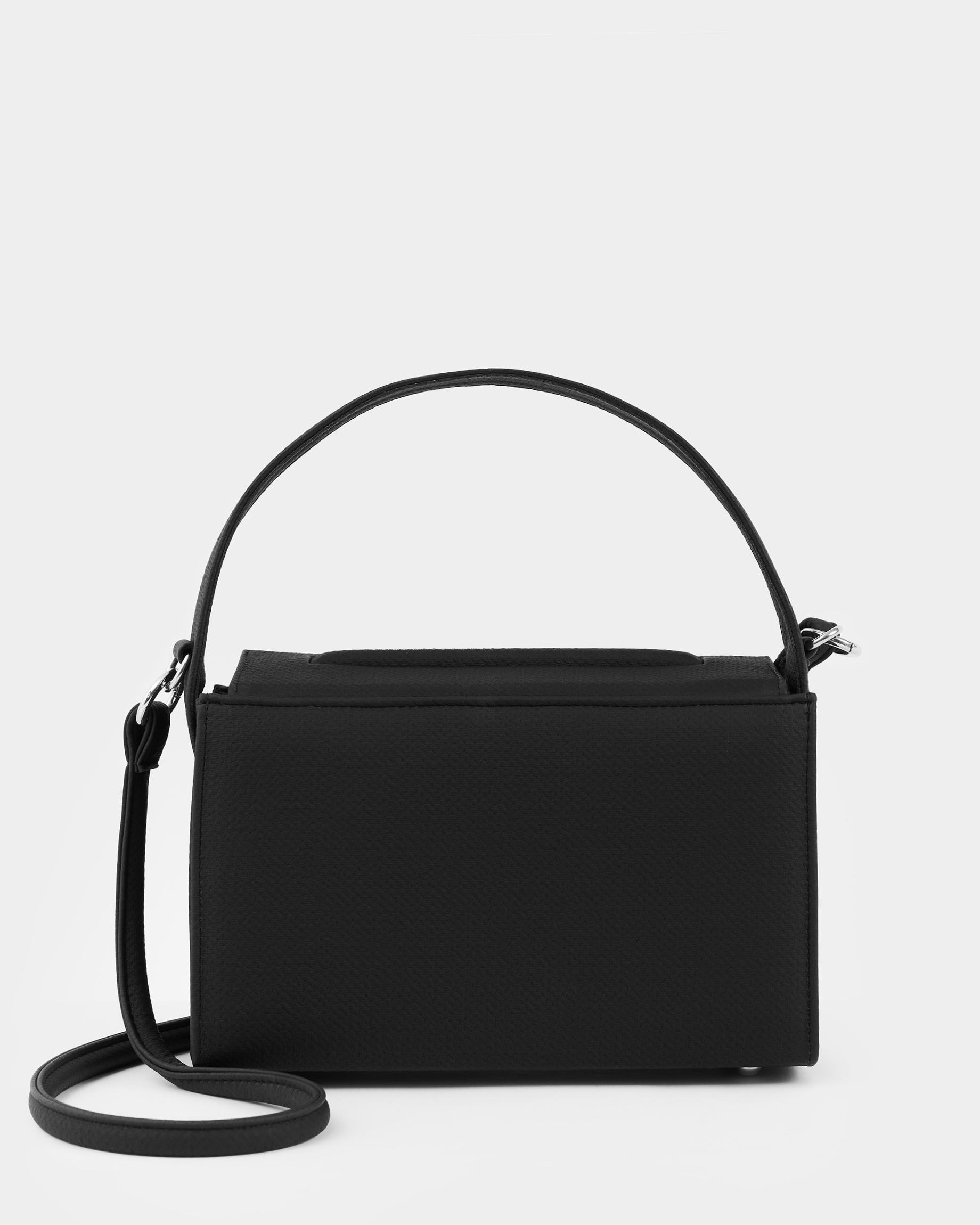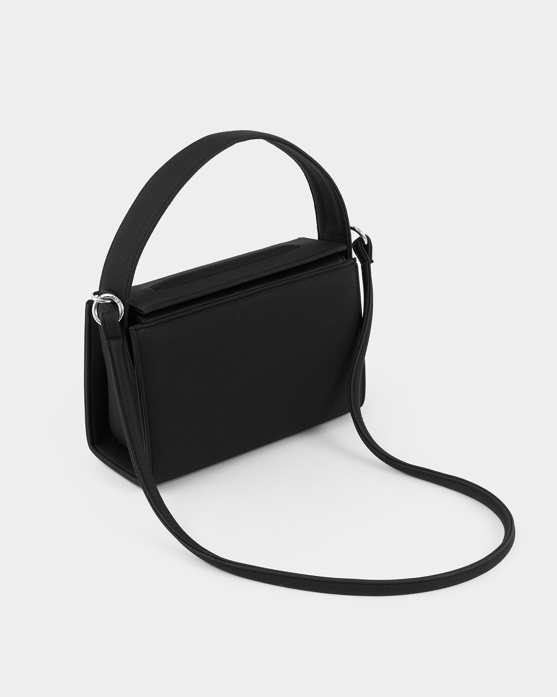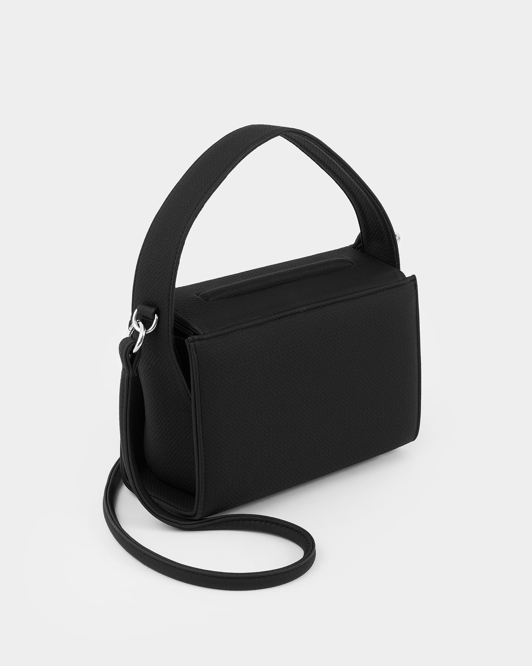 Женская прямоугольная каркасная сумка с рельефом на клапане в цвете черный твид