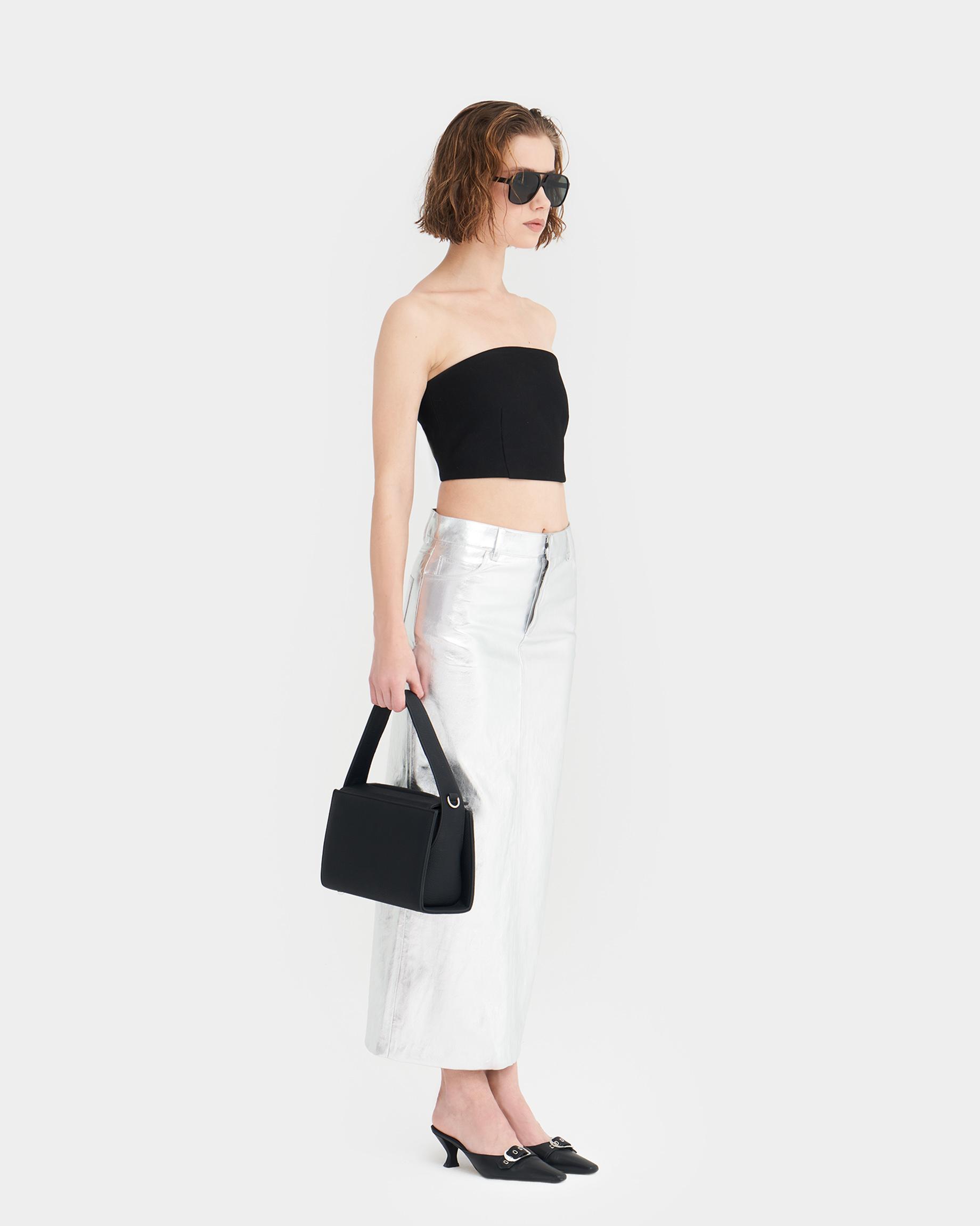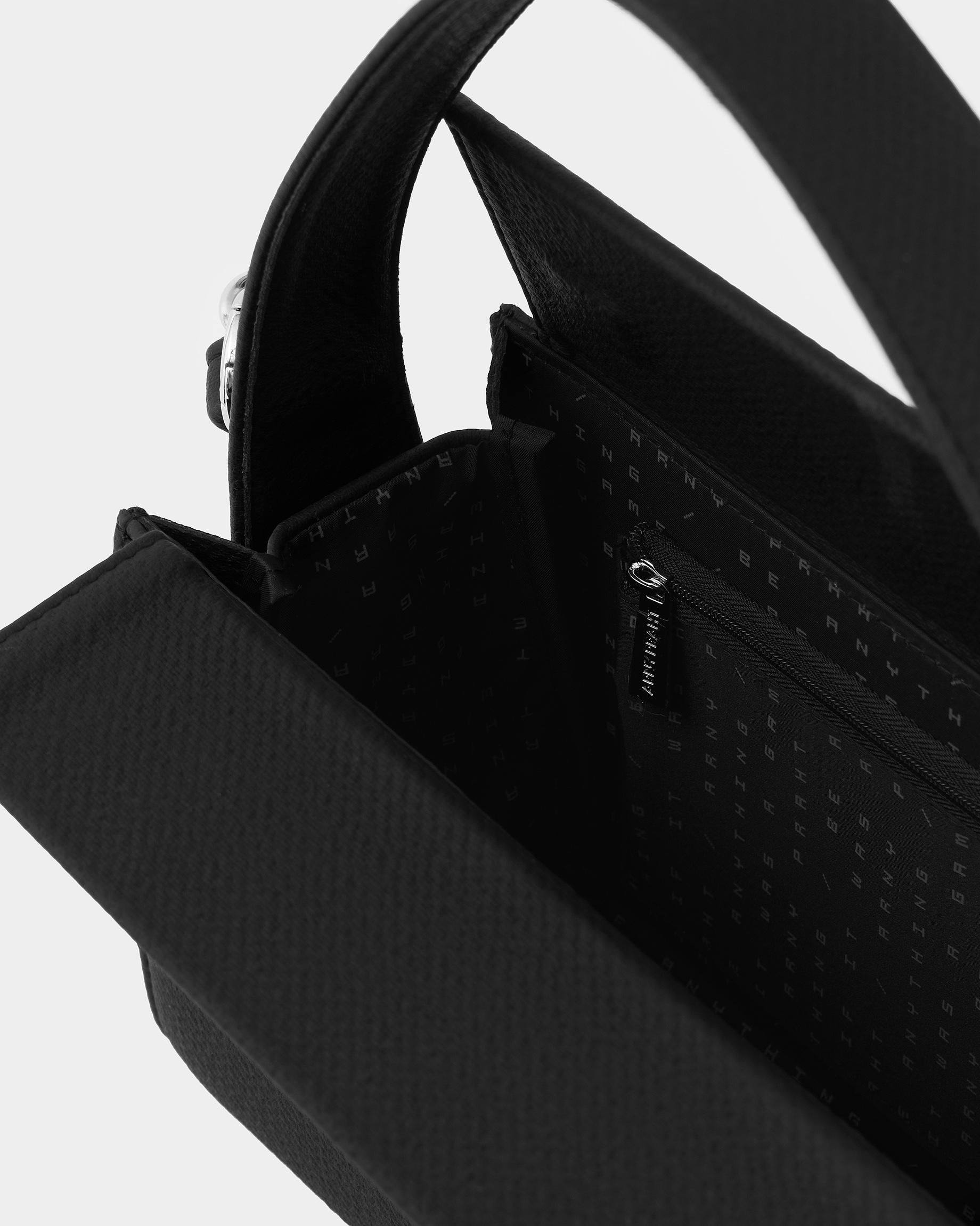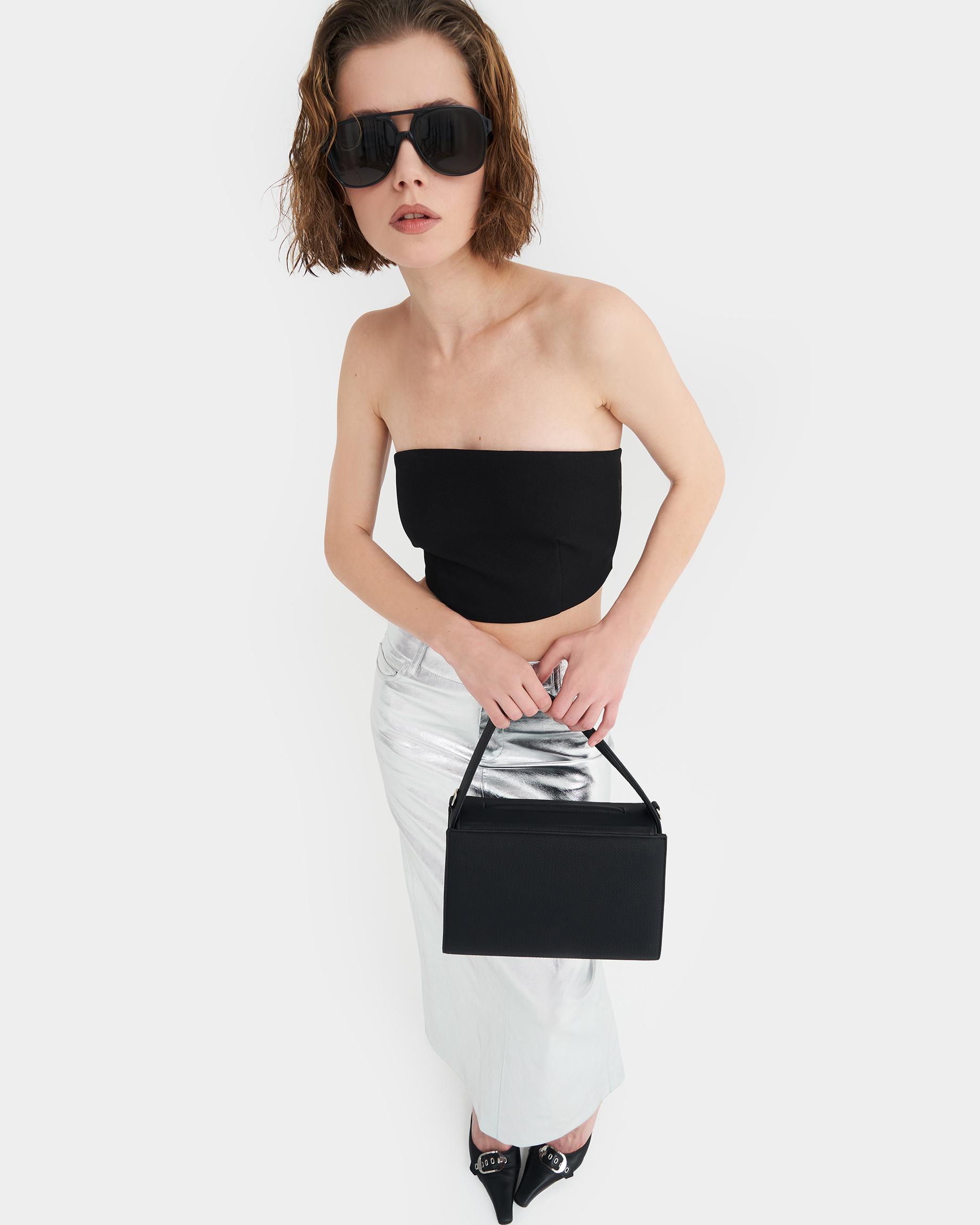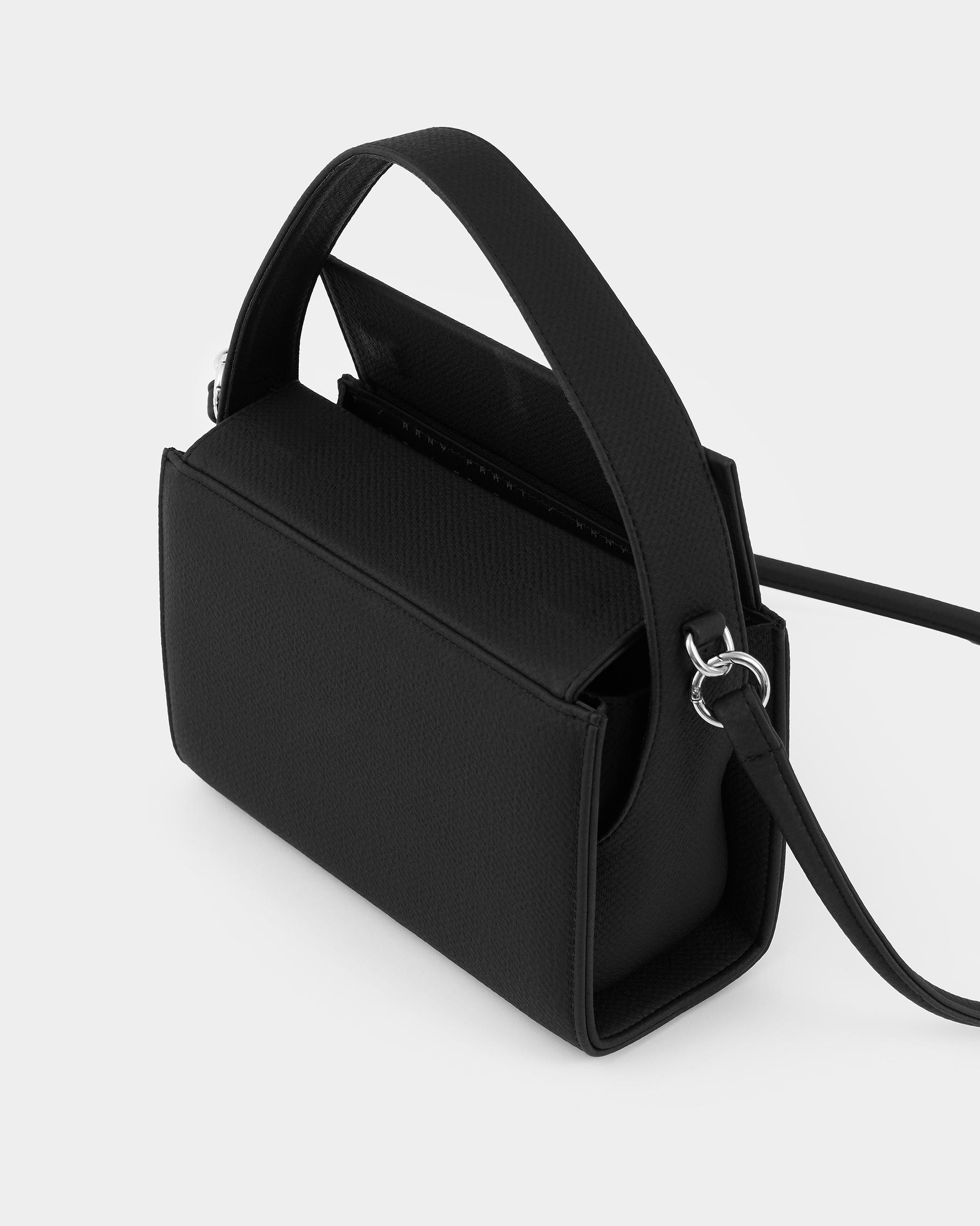 Женская прямоугольная каркасная сумка с рельефом на клапане в цвете черный твид