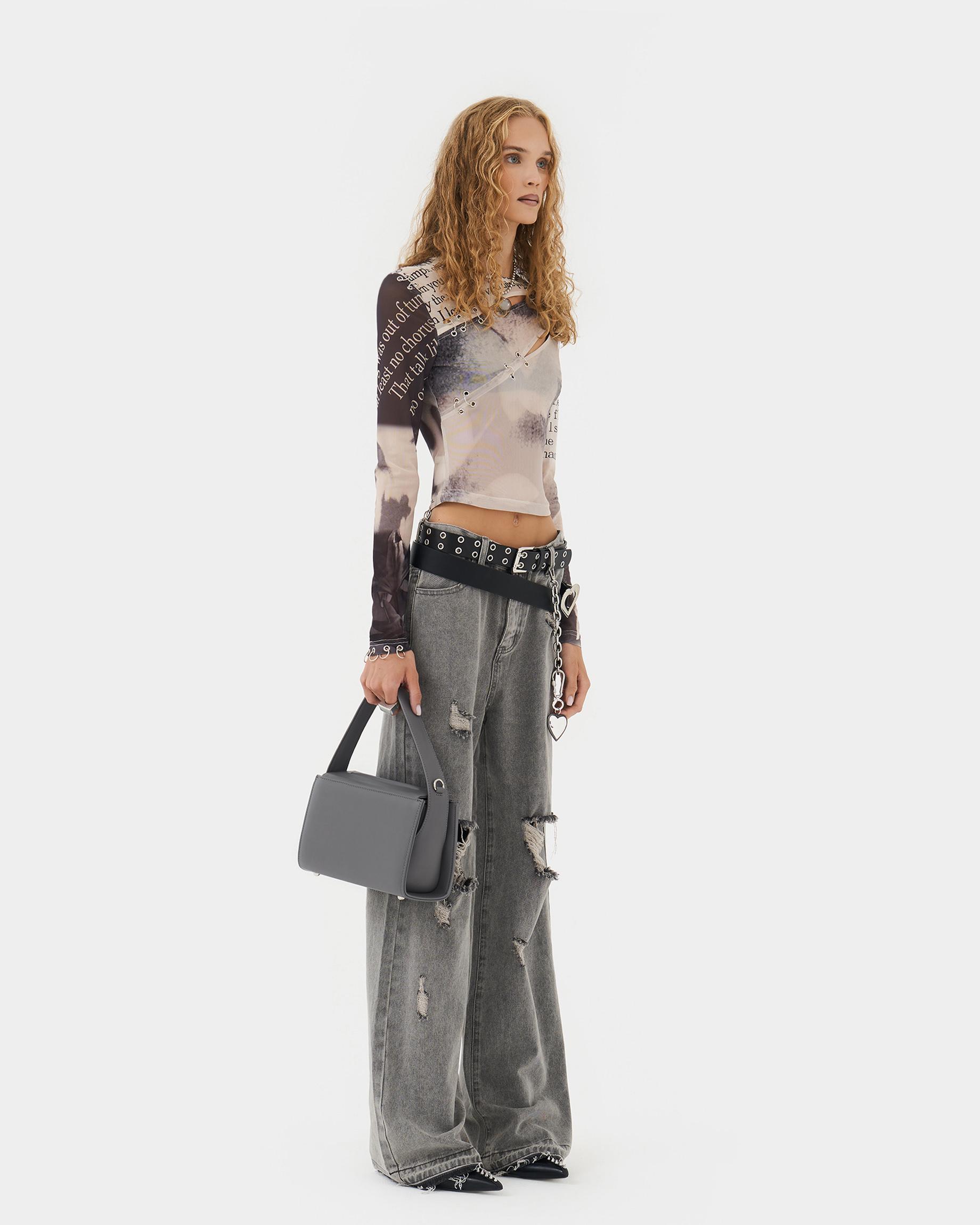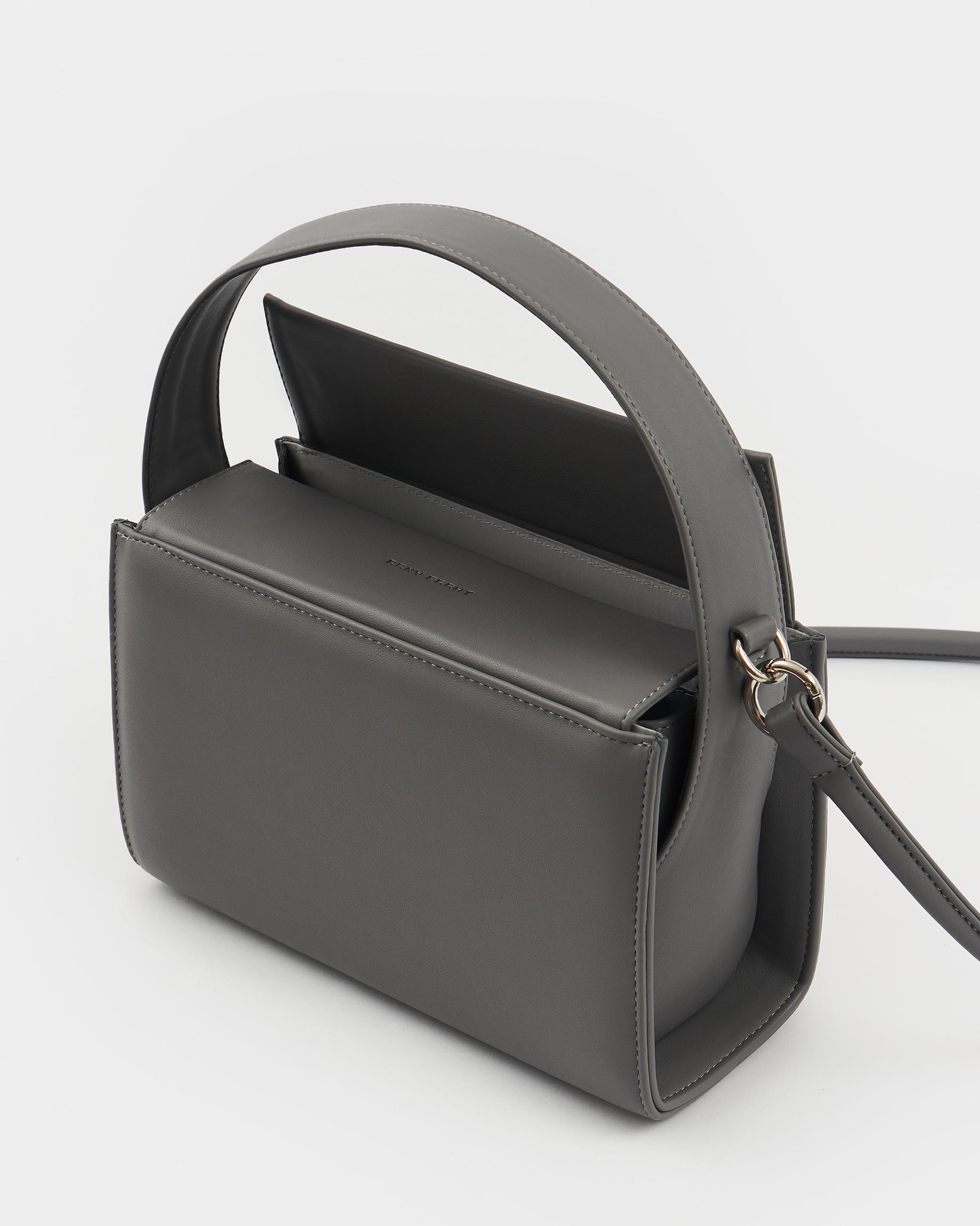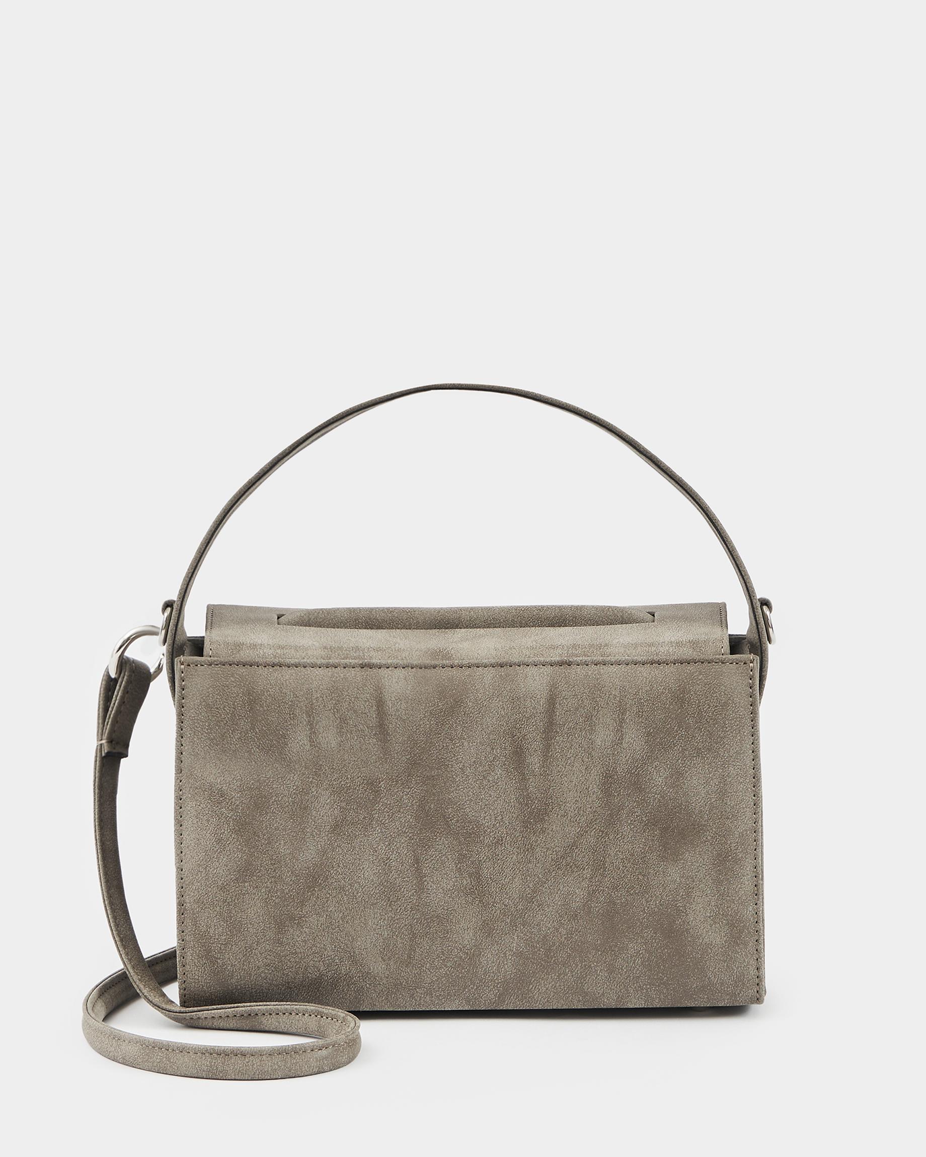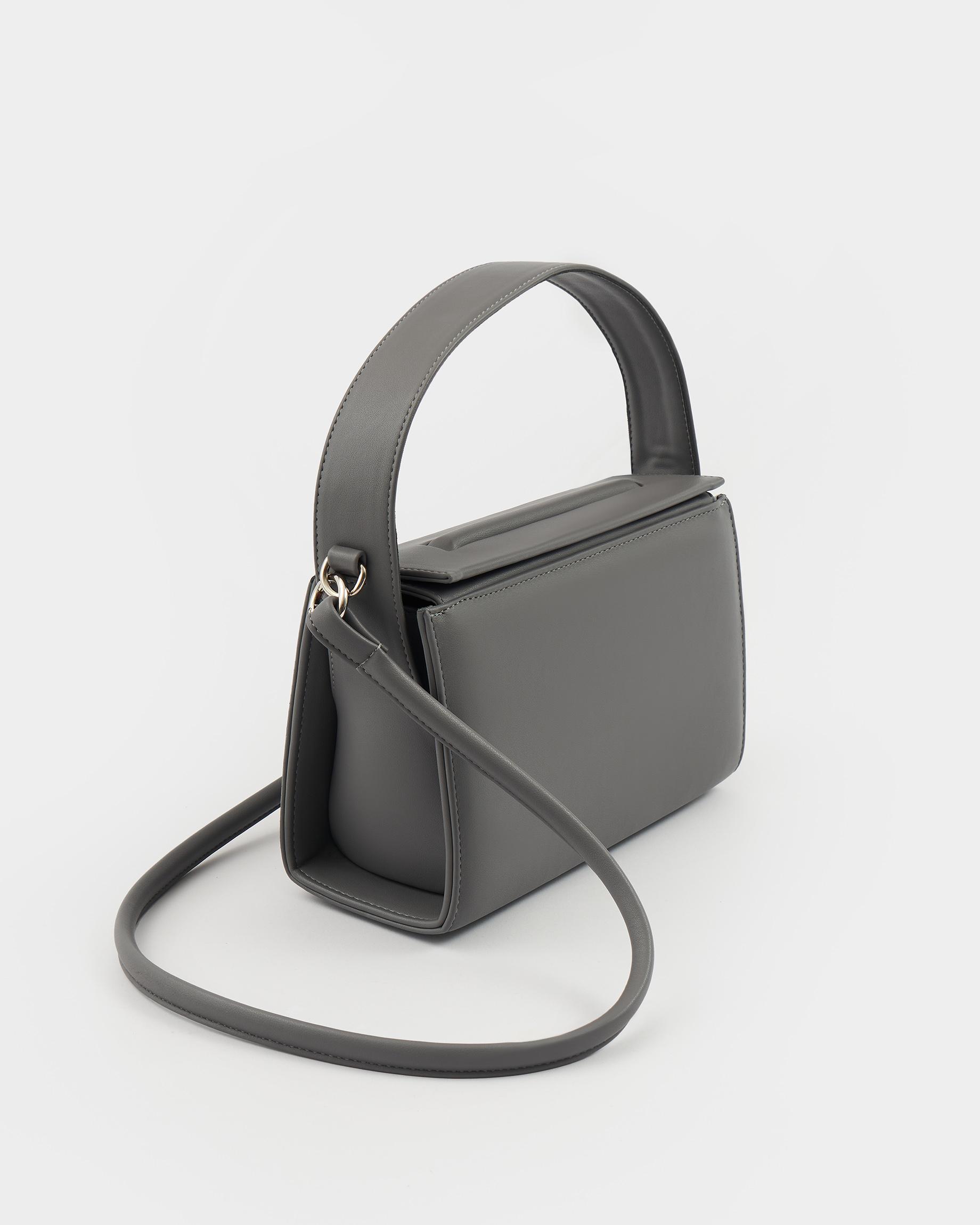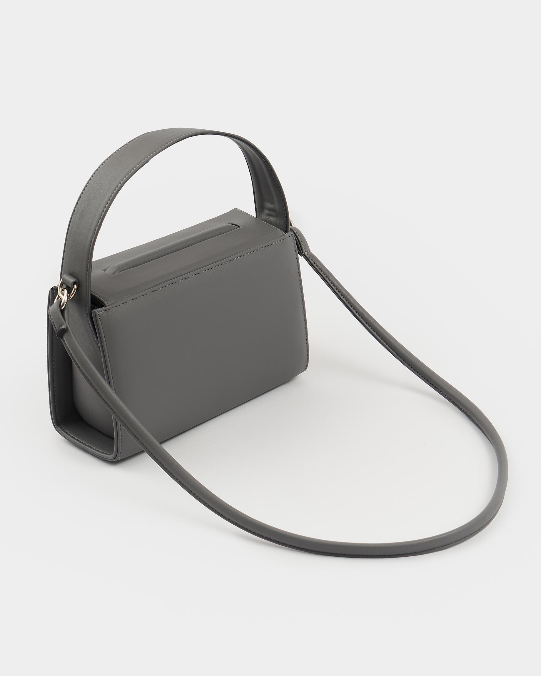 Женская прямоугольная каркасная сумка с рельефом на клапане в цвете шедоу