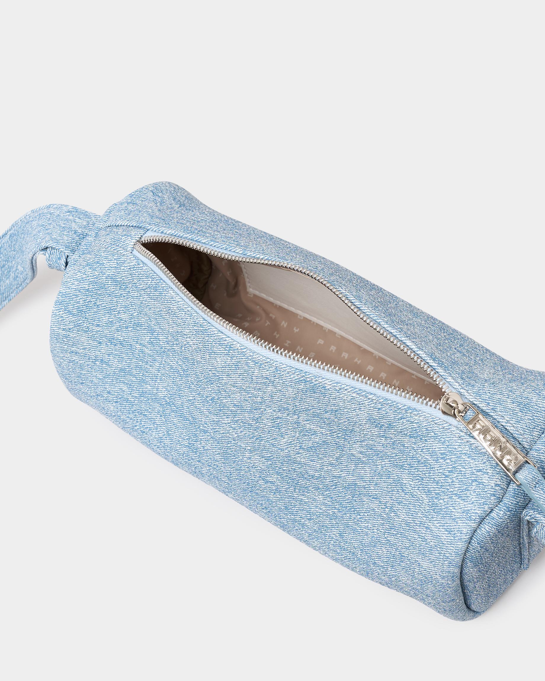 Небольшая мягкая прямоугольная сумка из экокожи в цвете голубой деним