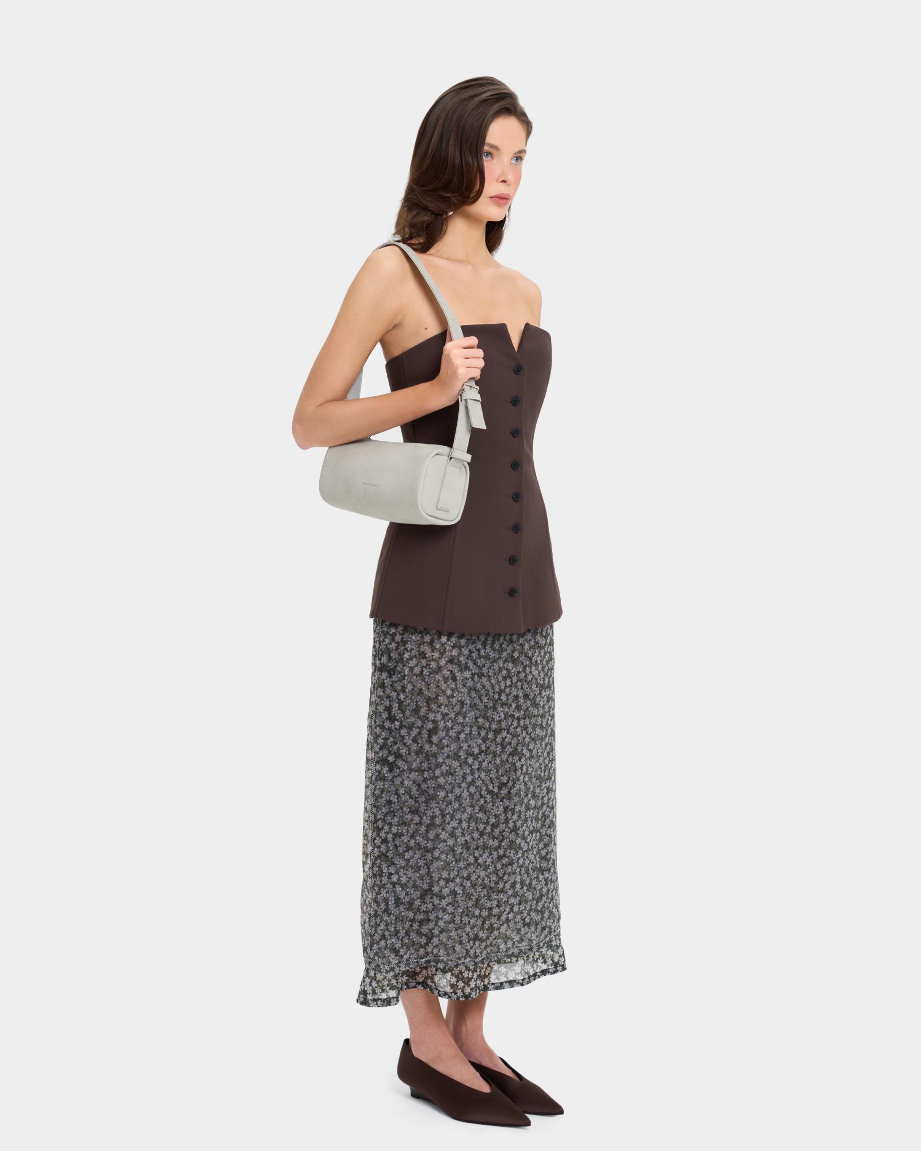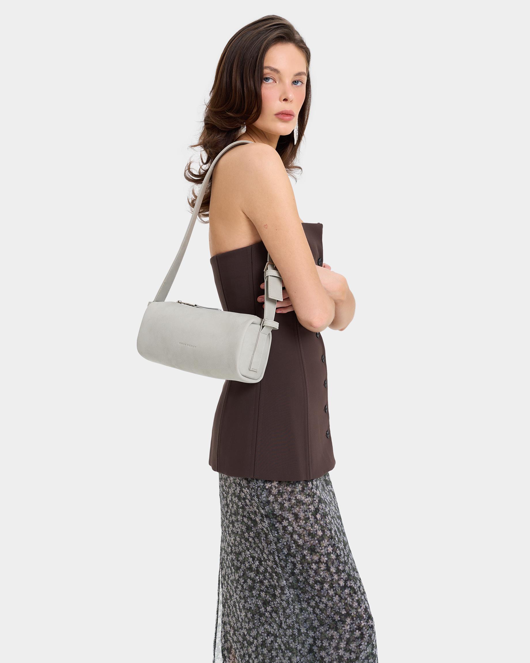 Небольшая мягкая прямоугольная сумка из экокожи в цвете жемчужный серый