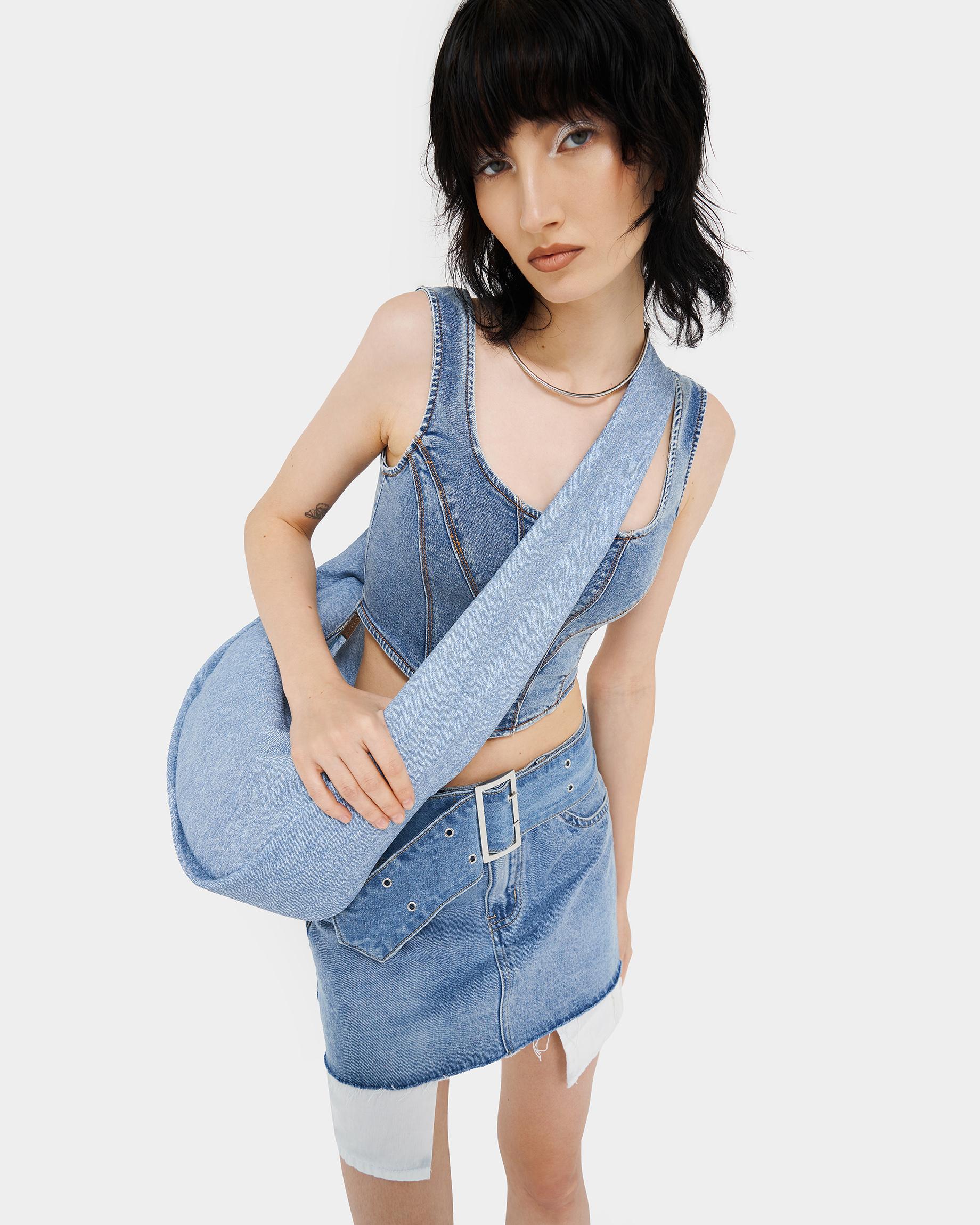 Мягкая сумка-шоппер среднего размера с широким ремнем