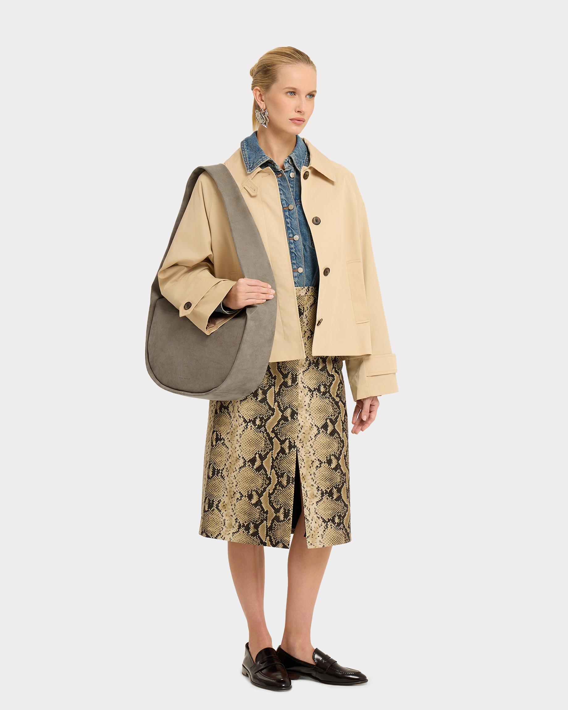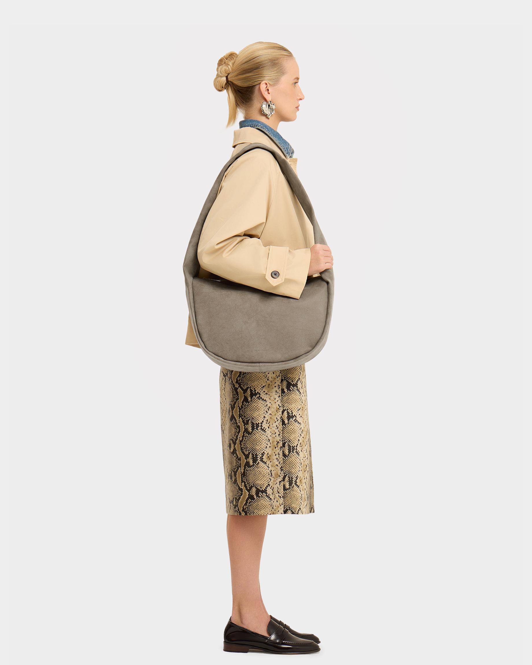 Мягкая сумка-шоппер среднего размера из замшевой экокожи с широким ремнем