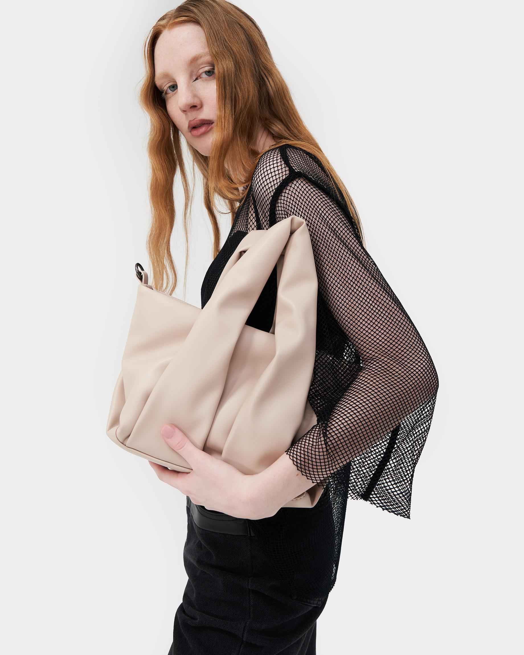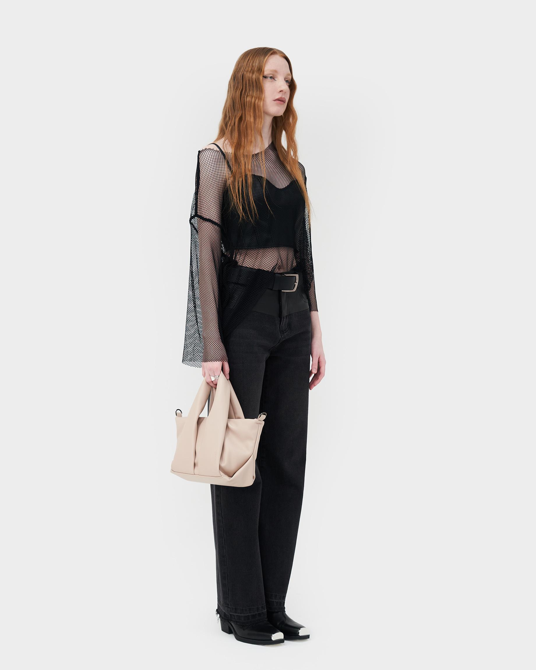 Универсальная повседневная женская сумка с тонким ремнем в цвете нюд