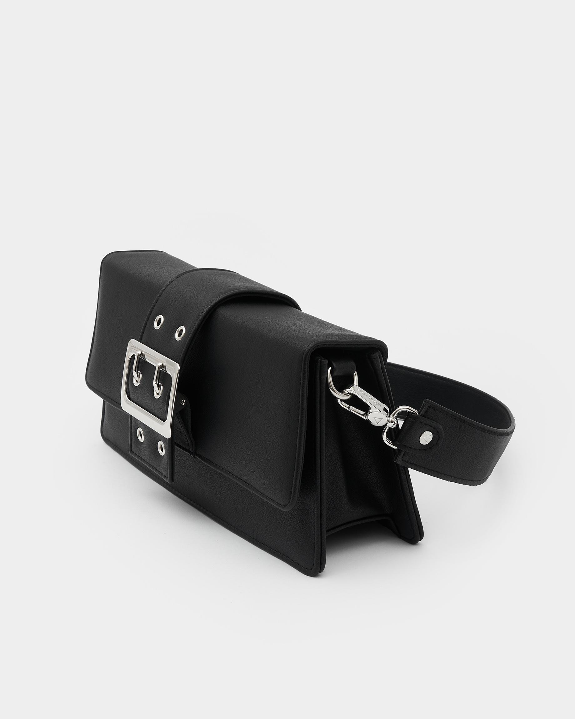 Сумка-клатч черная с широким ремнем