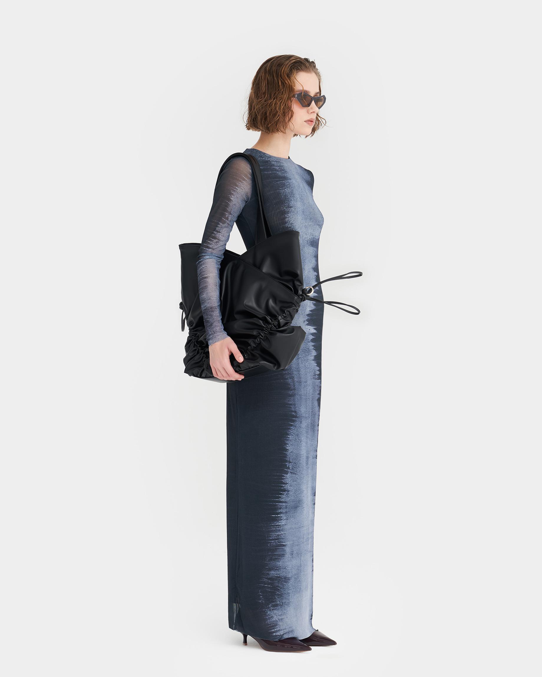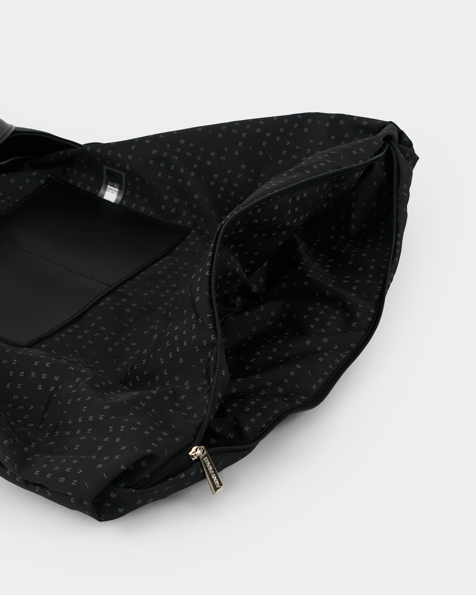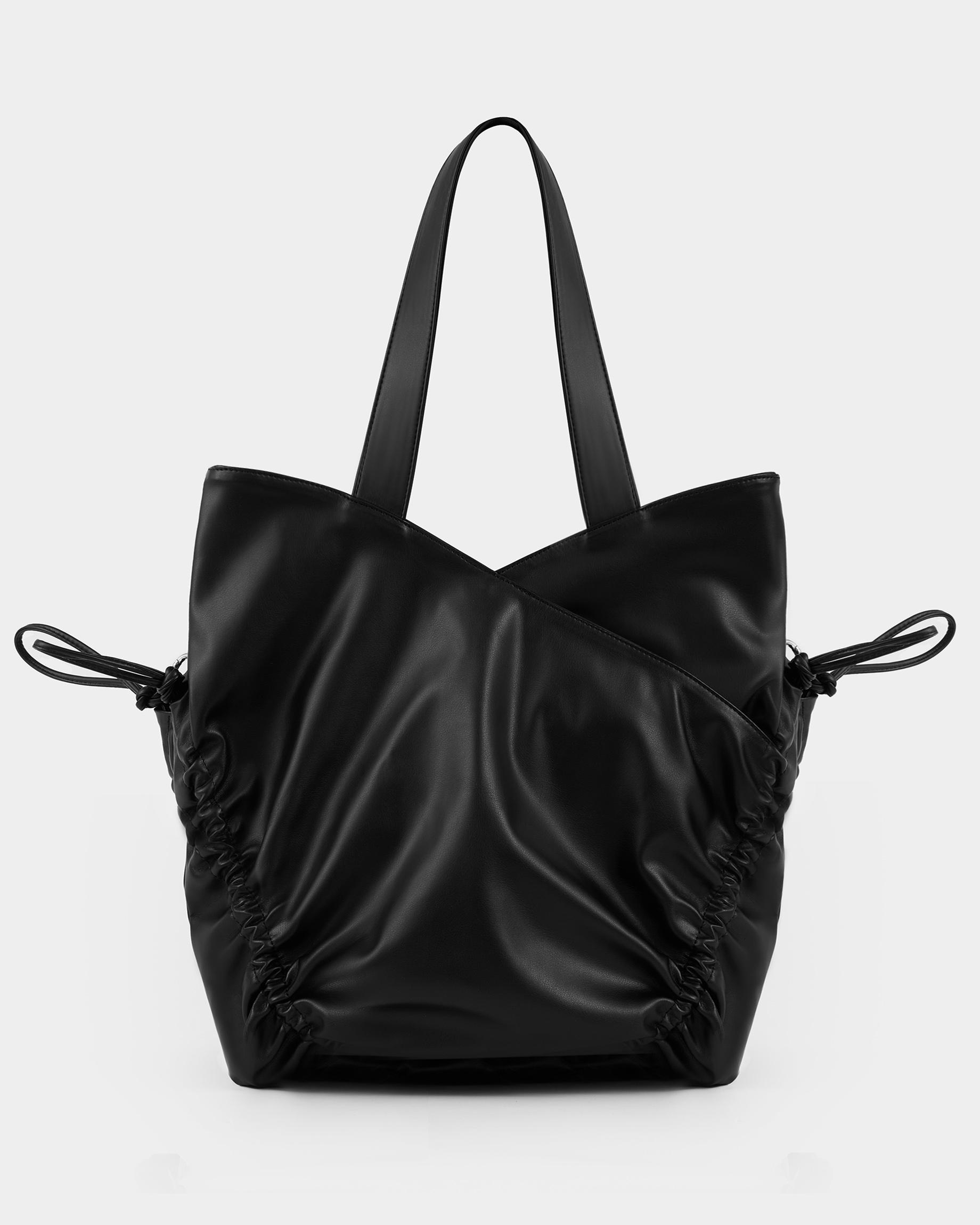 Объёмная сумка-трансформер мягкой формы со сборками в черном цвете
