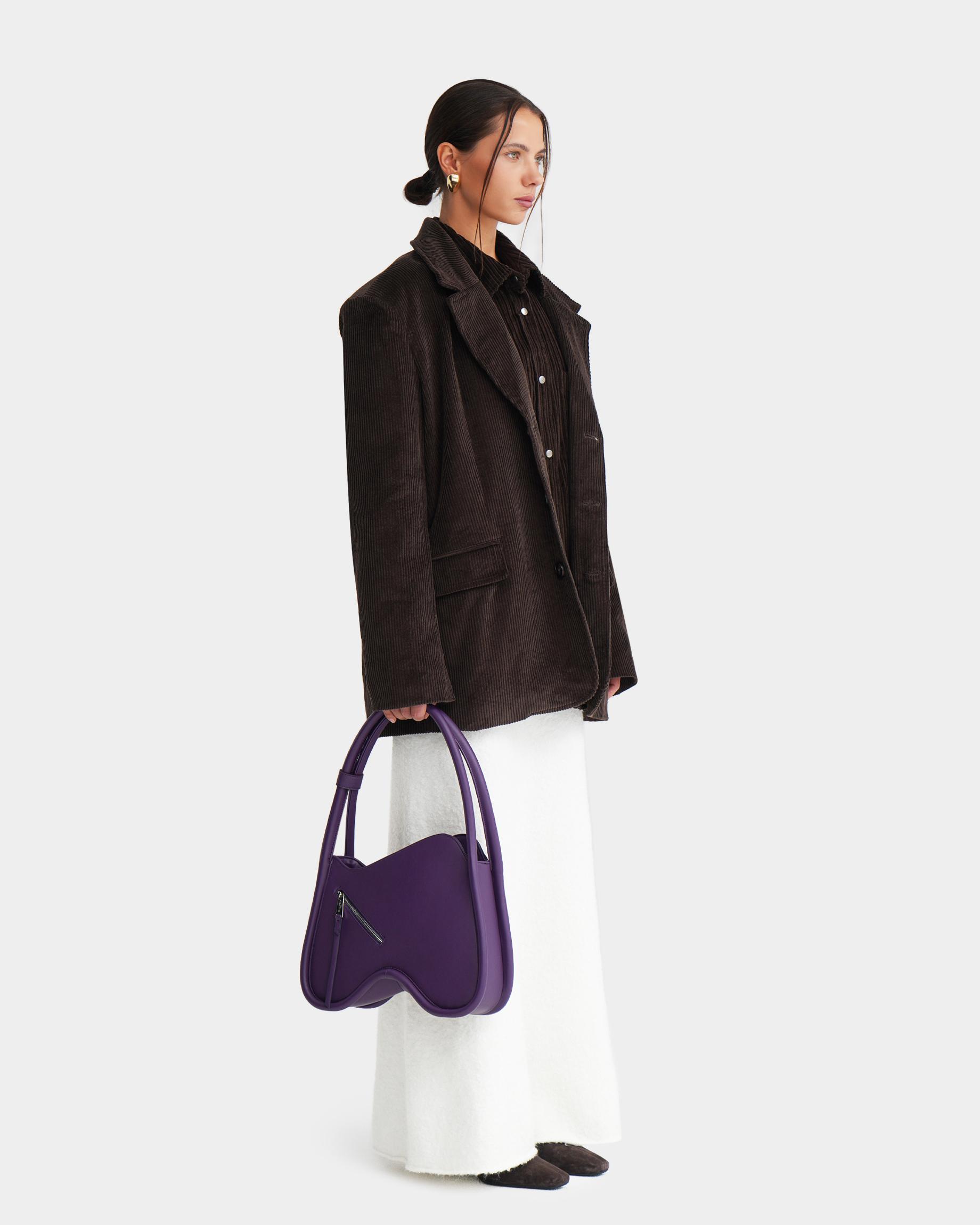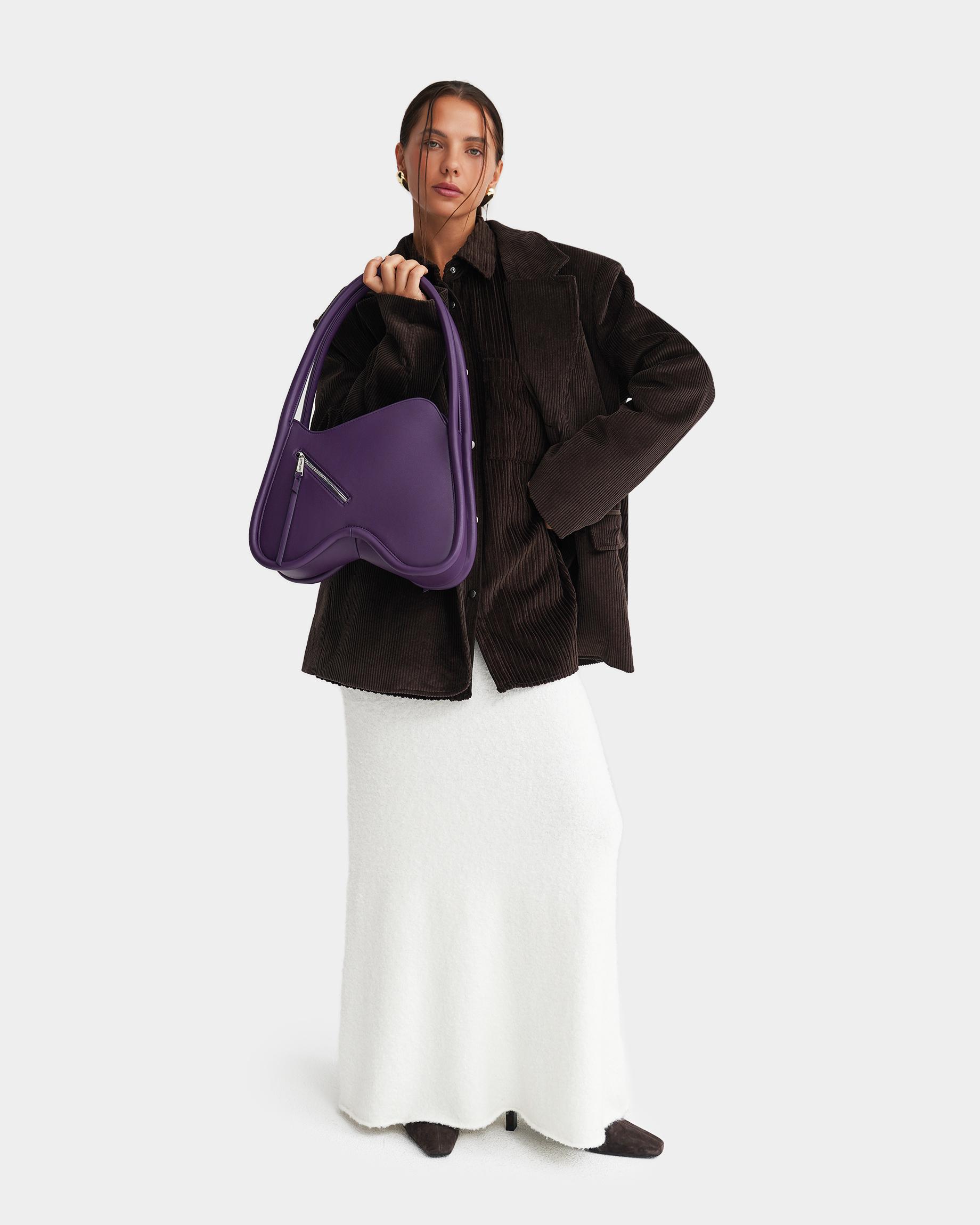 Каркасная сумка в форме перевернутого сердца с объемным кантом в цвете мальбек