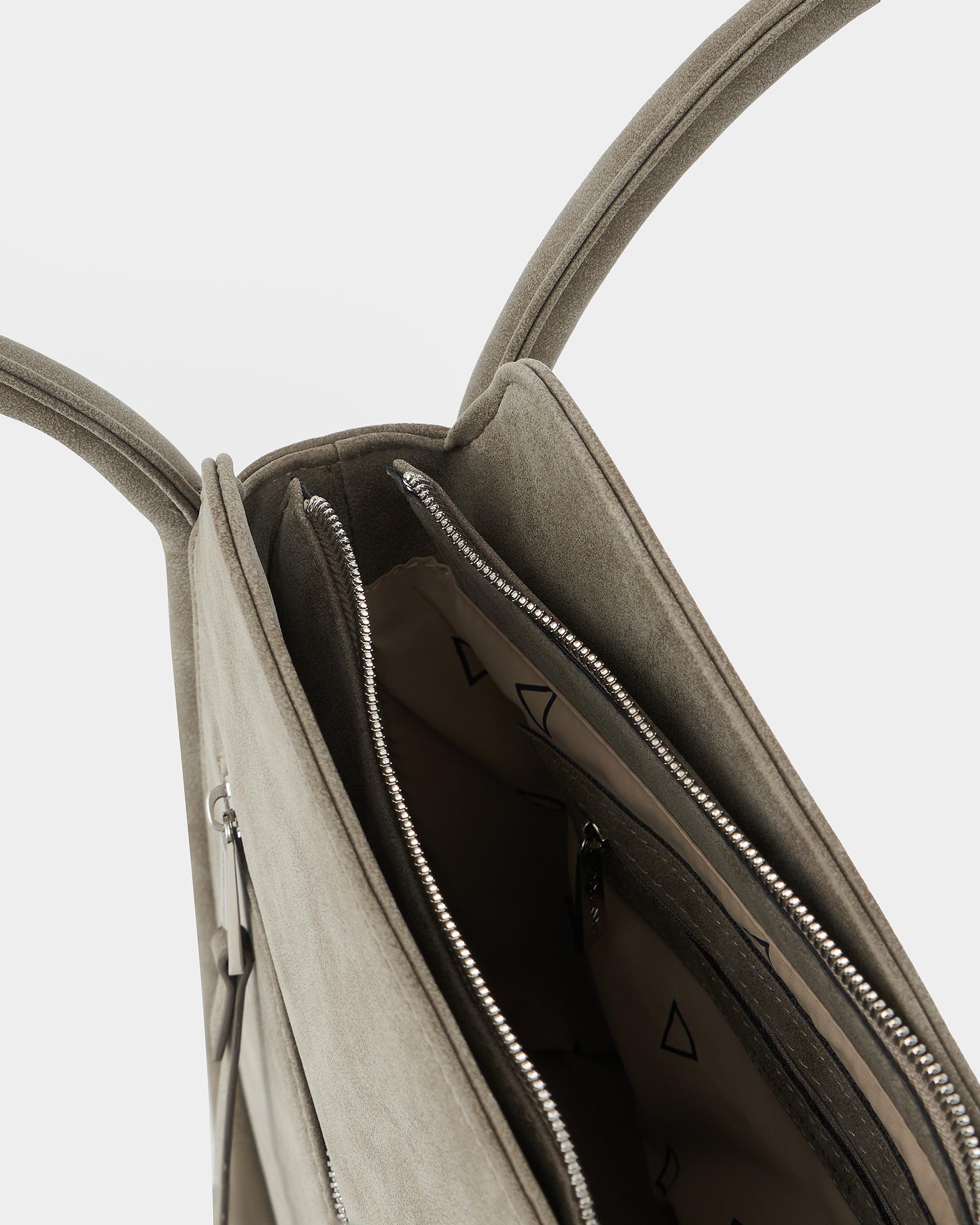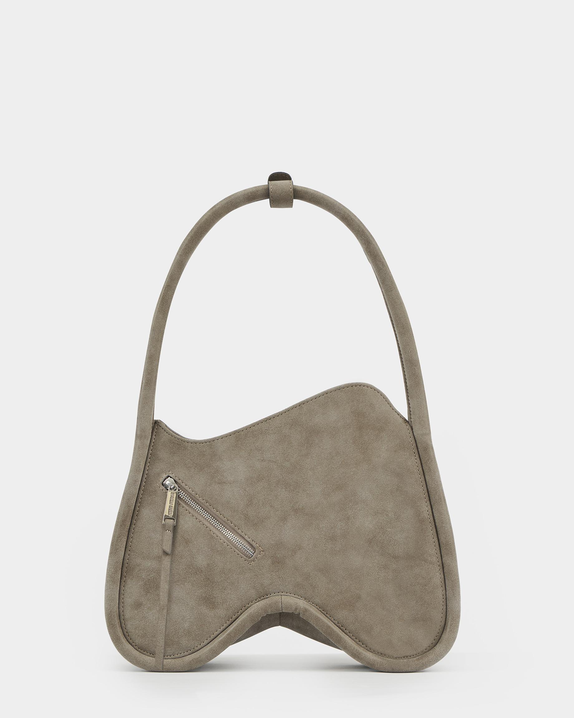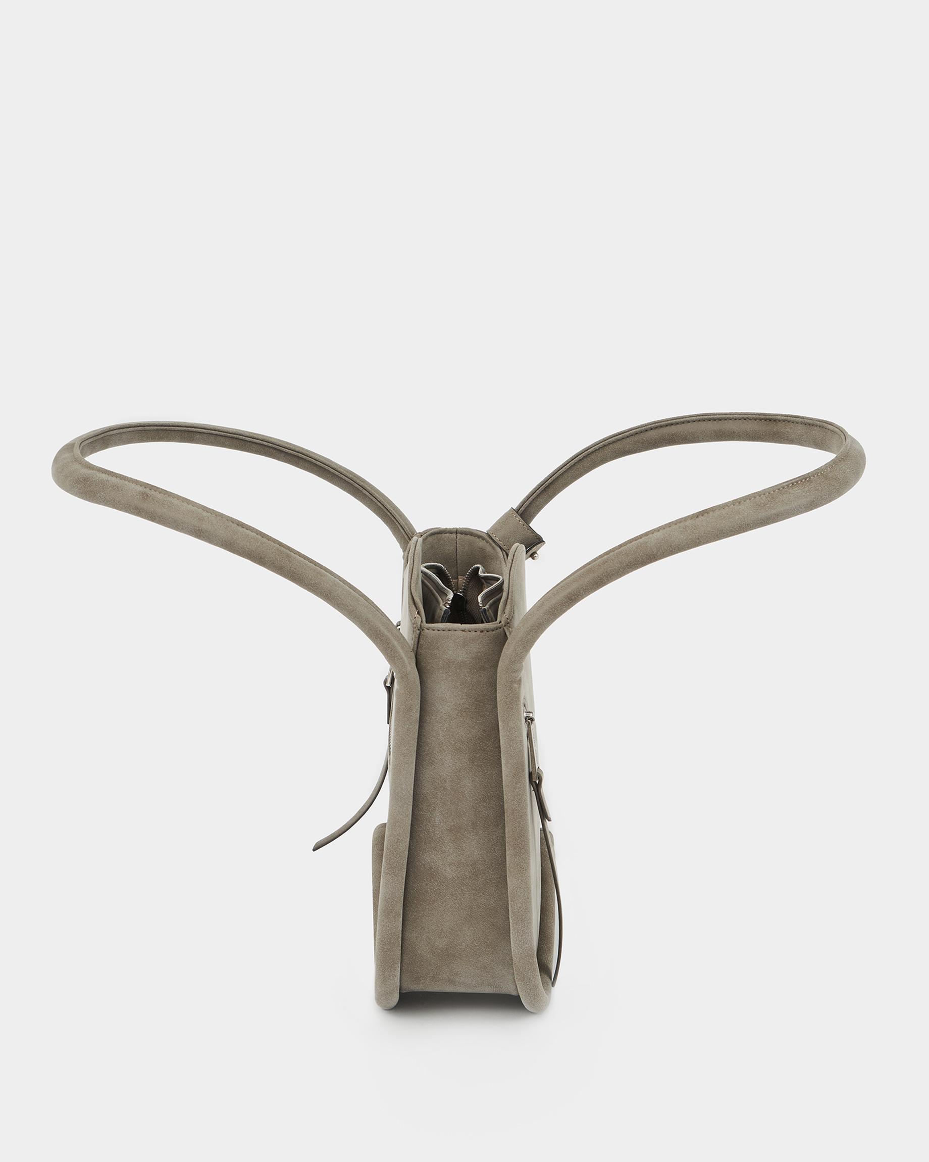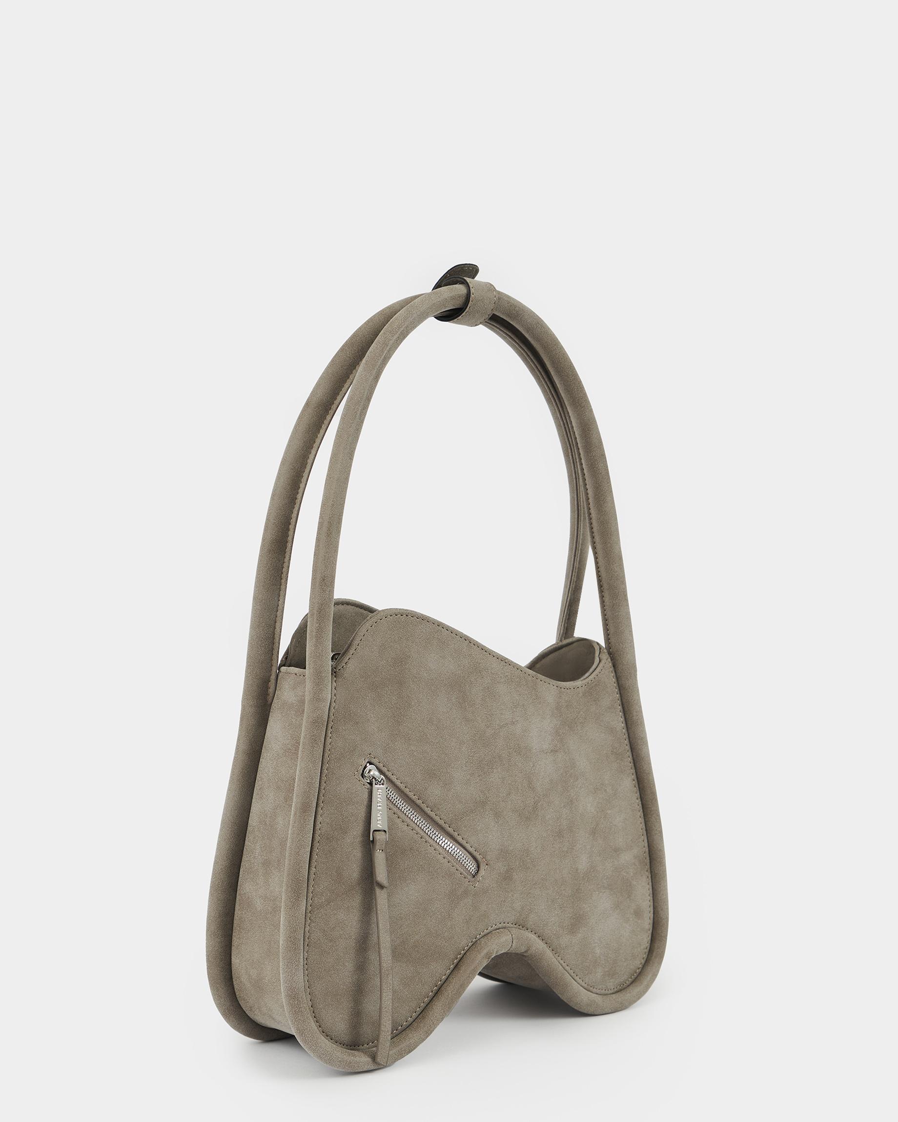 Каркасная сумка в форме перевернутого сердца с объемным кантом в цвете песочный
