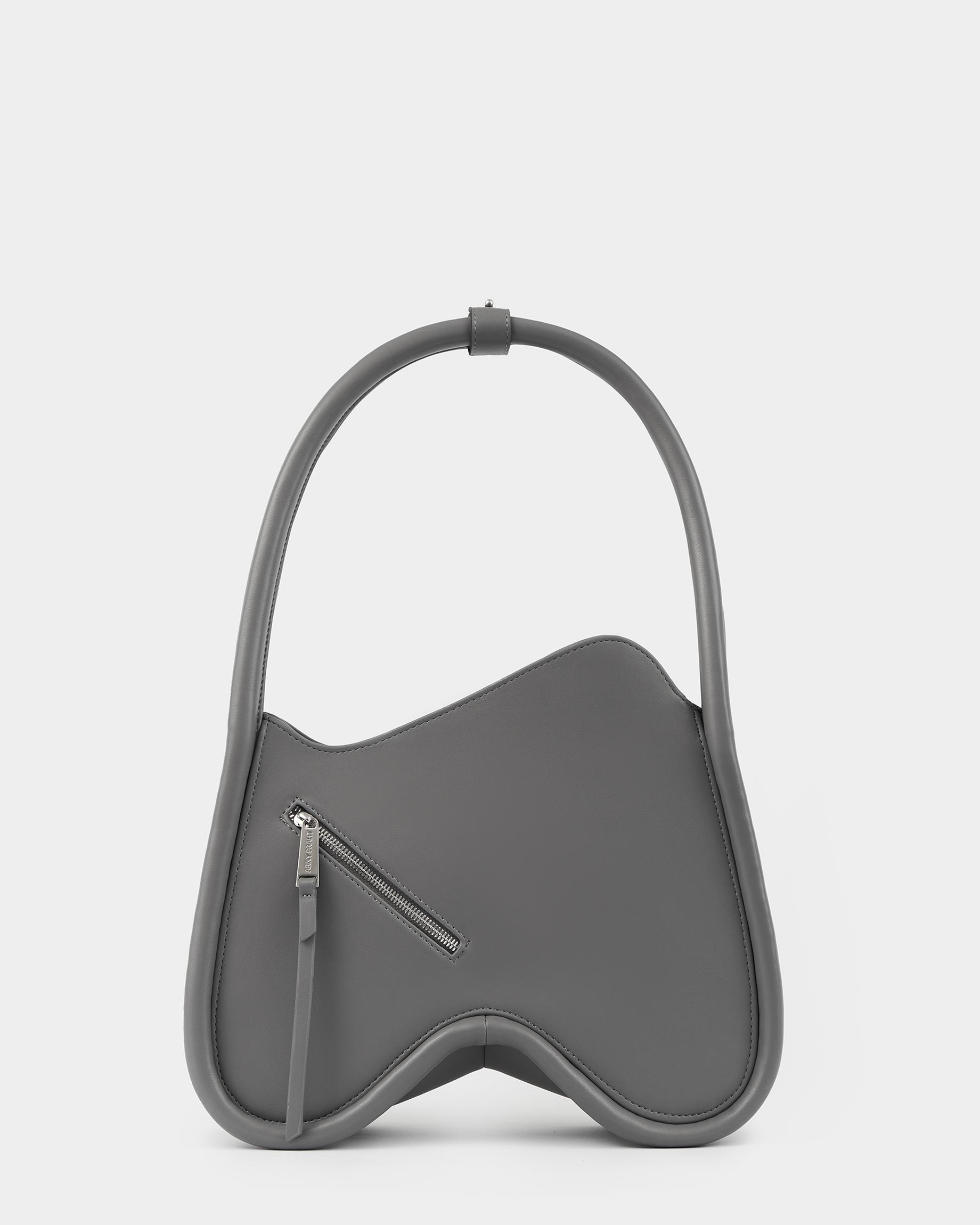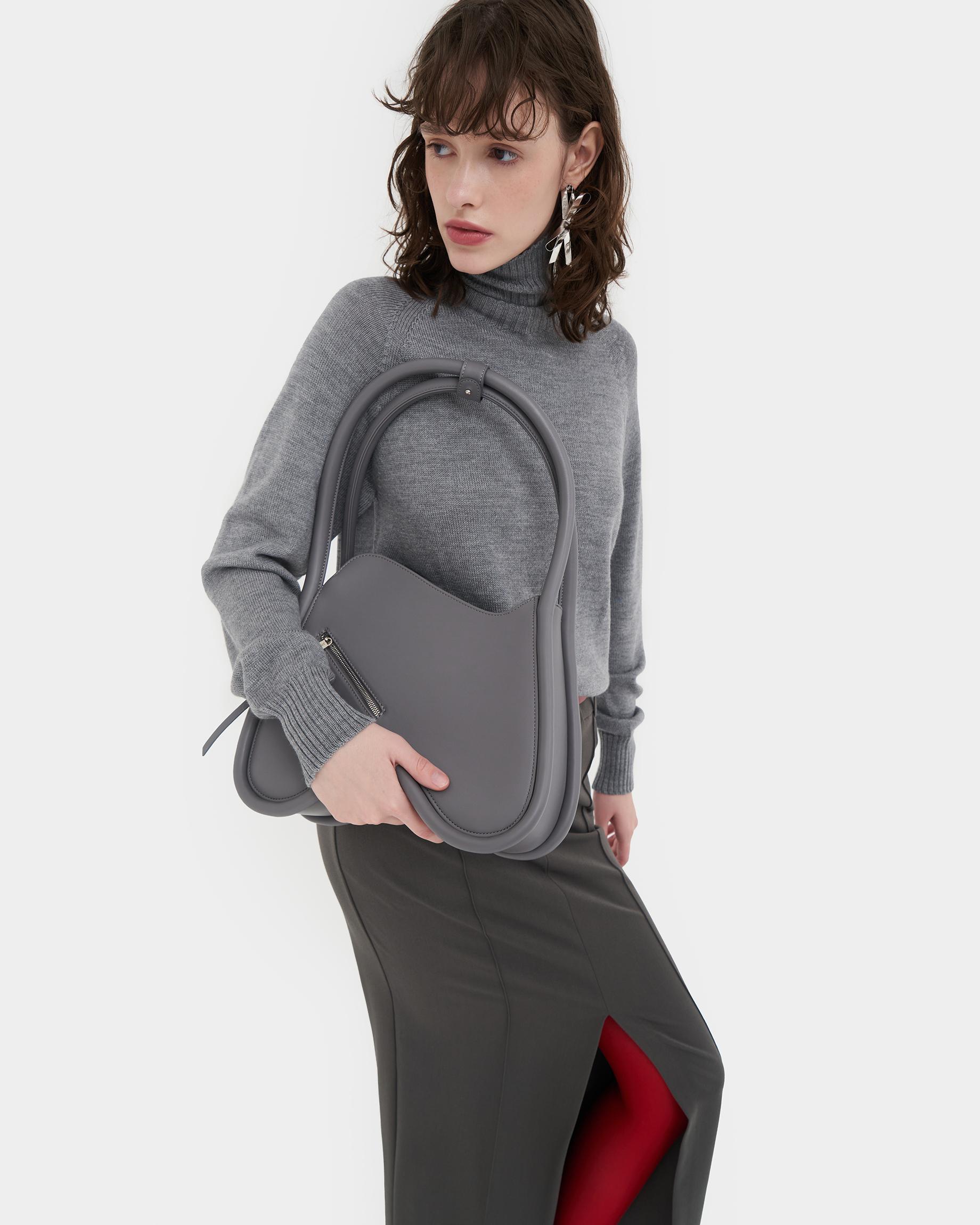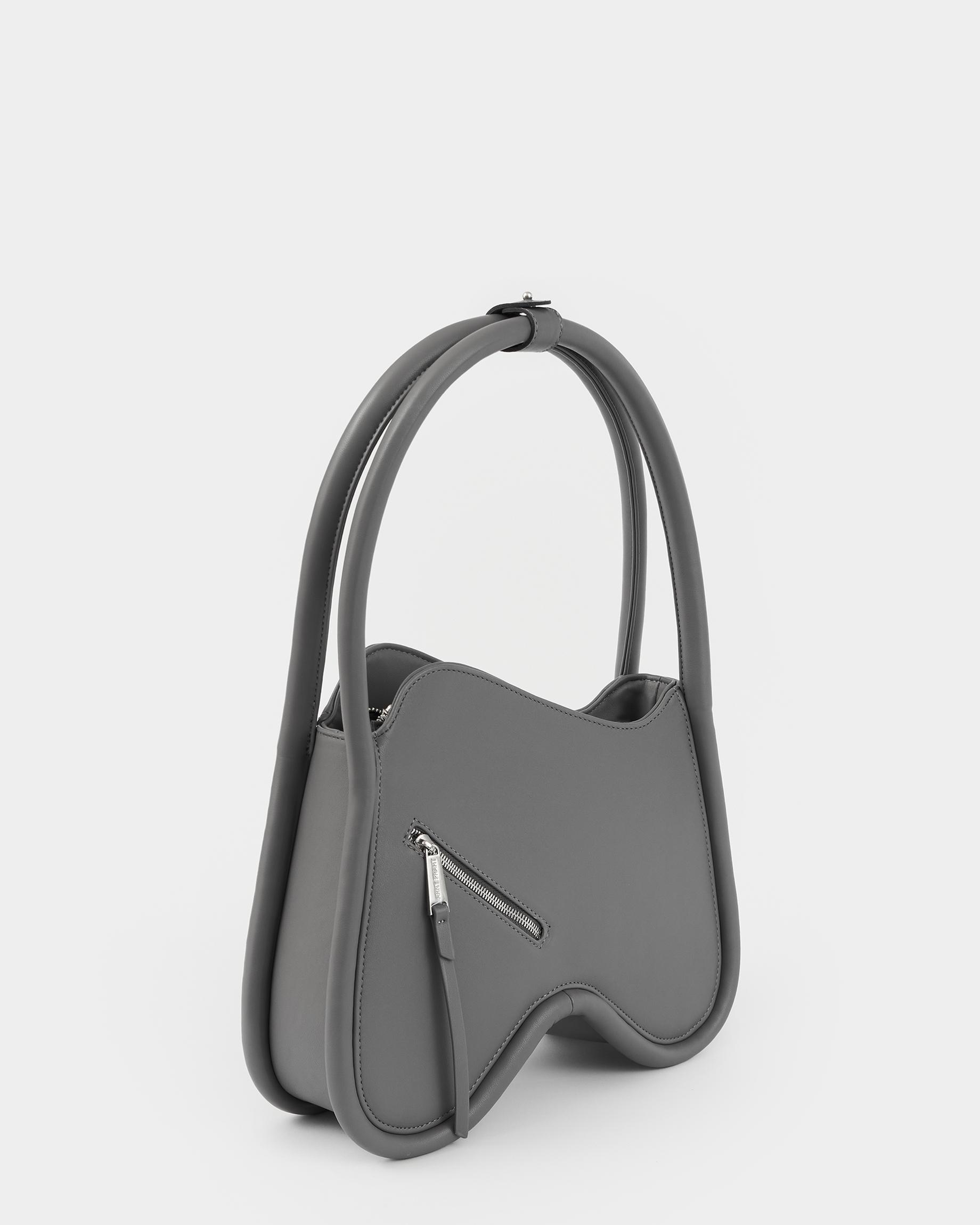Каркасная сумка в форме перевернутого сердца с объемным кантом в цвете шедоу