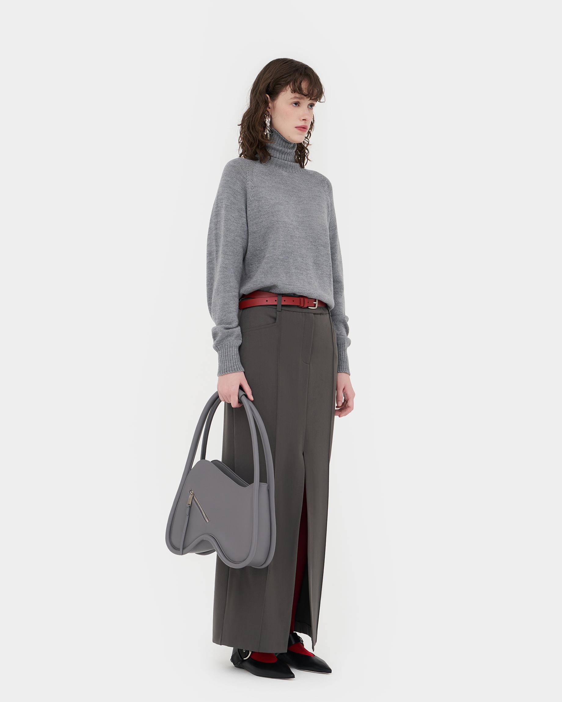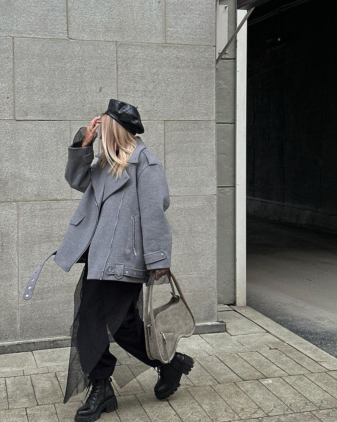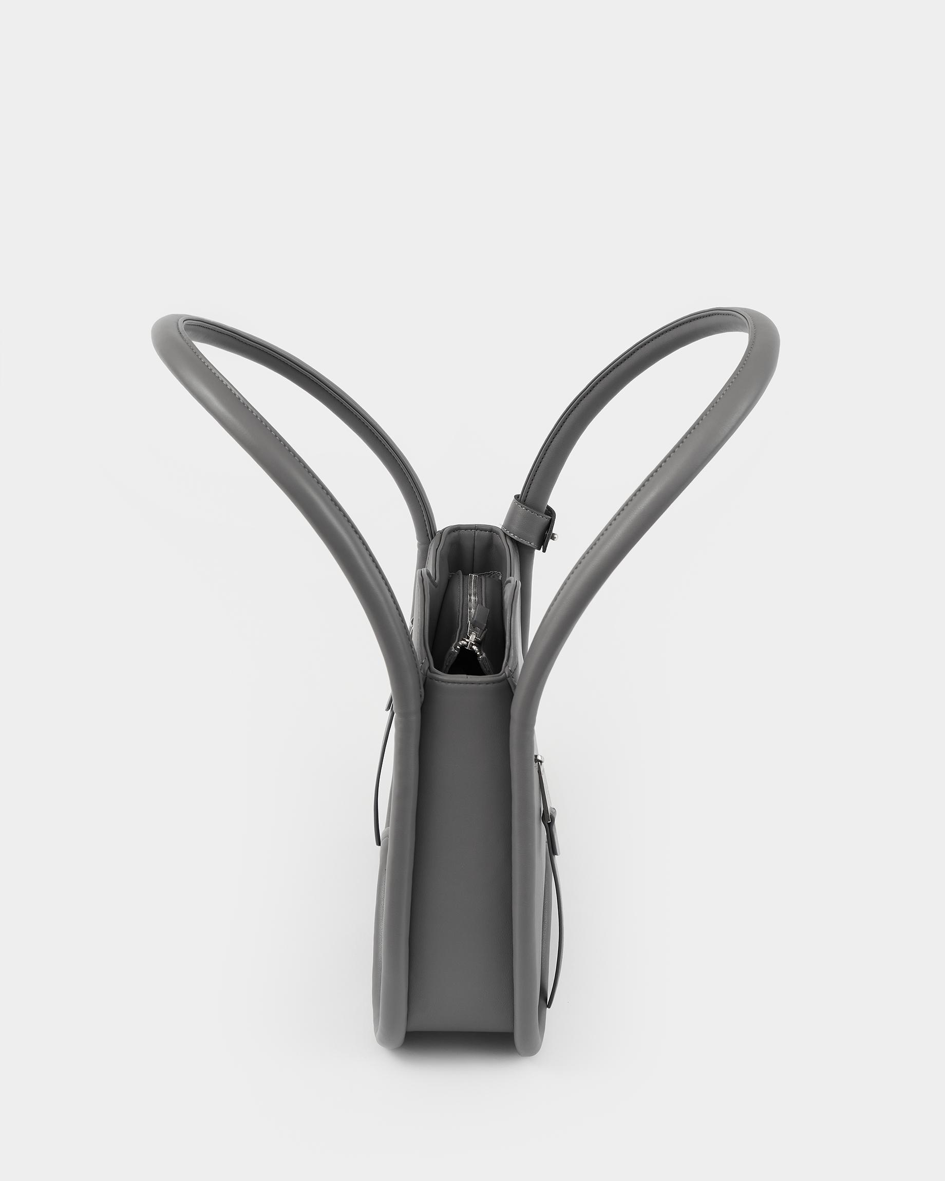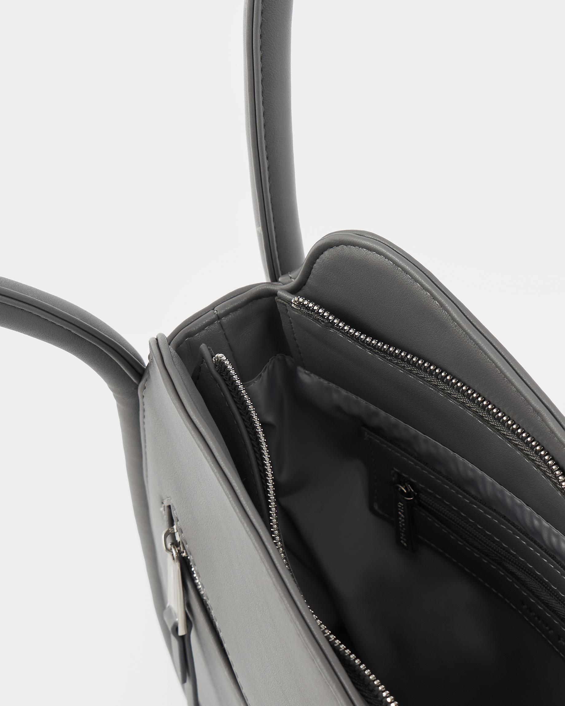 Каркасная сумка в форме перевернутого сердца с объемным кантом в цвете шедоу