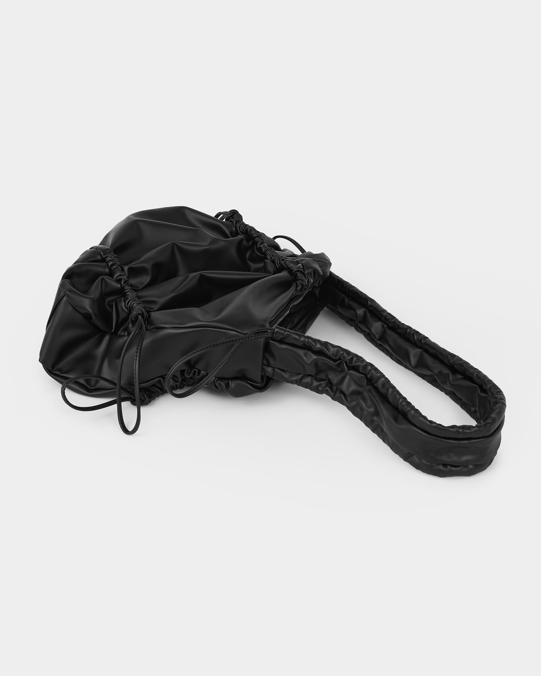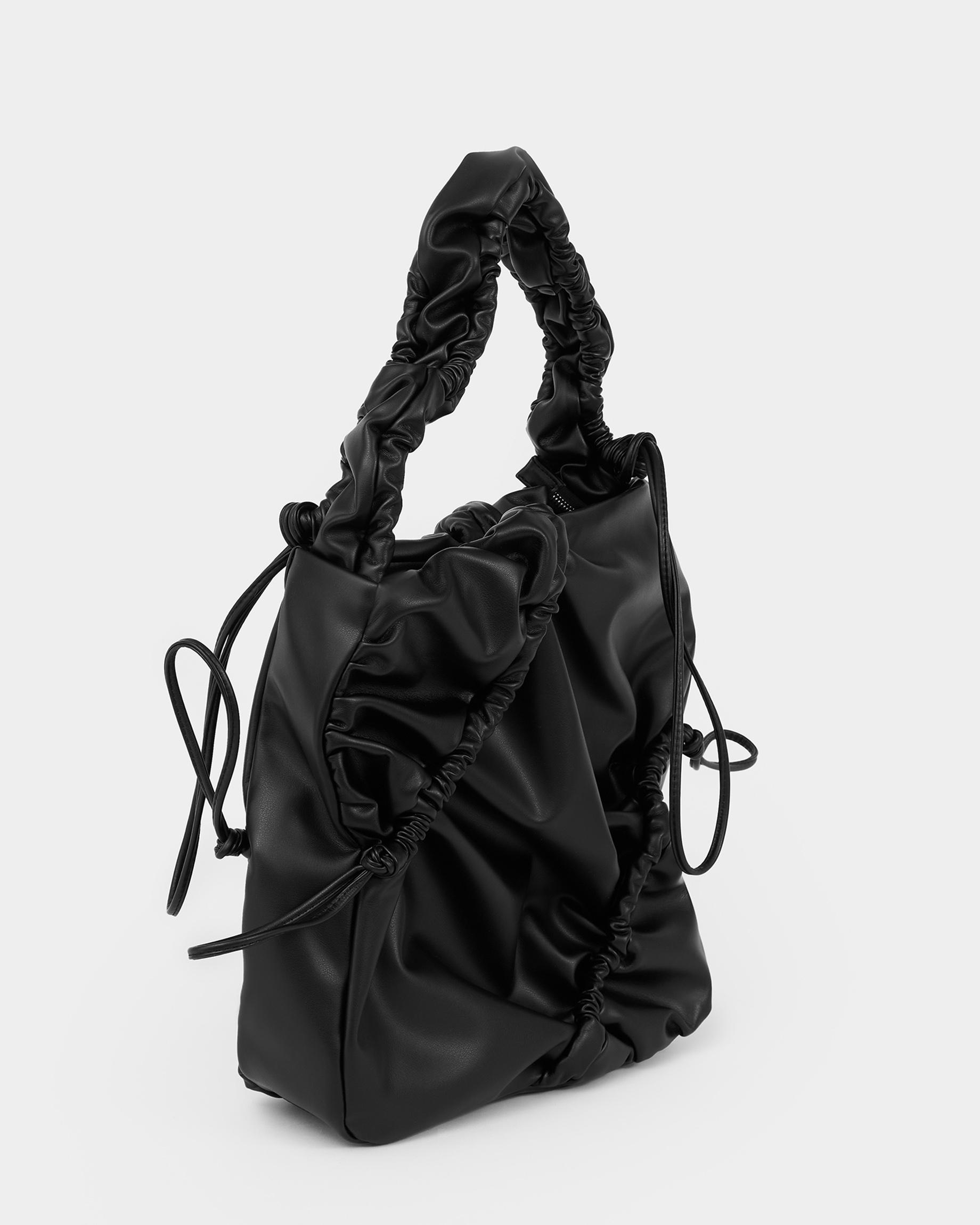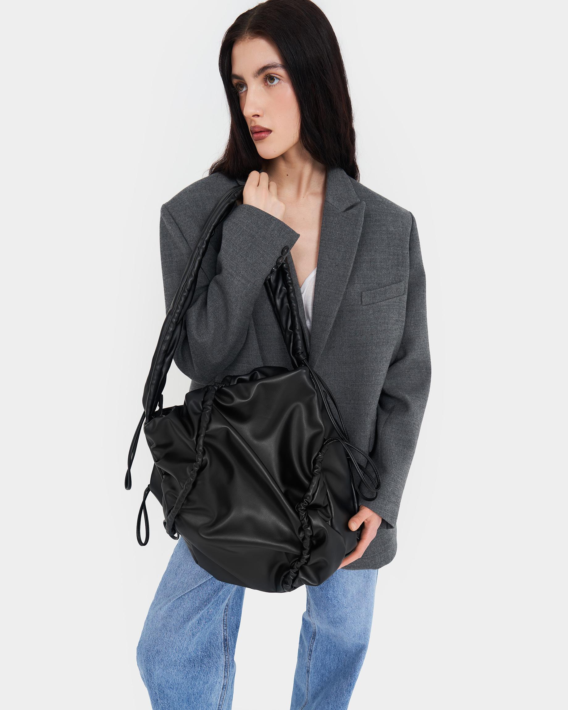 Мягкая сумка-шоппер со сборками в черном цвете